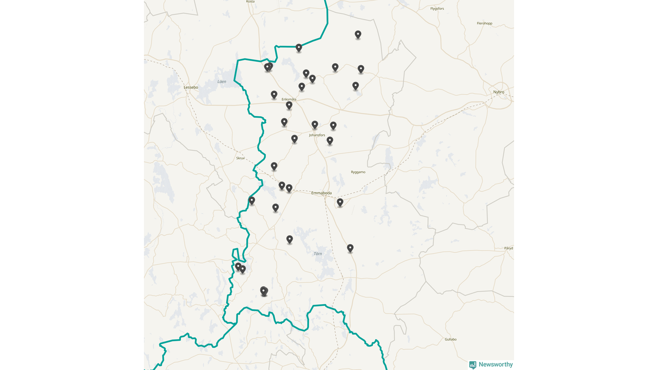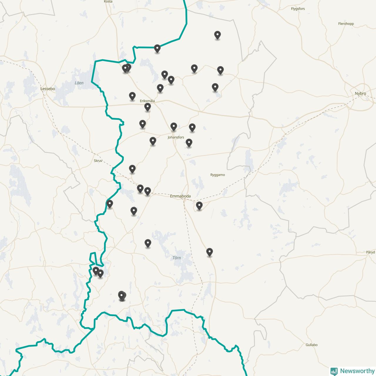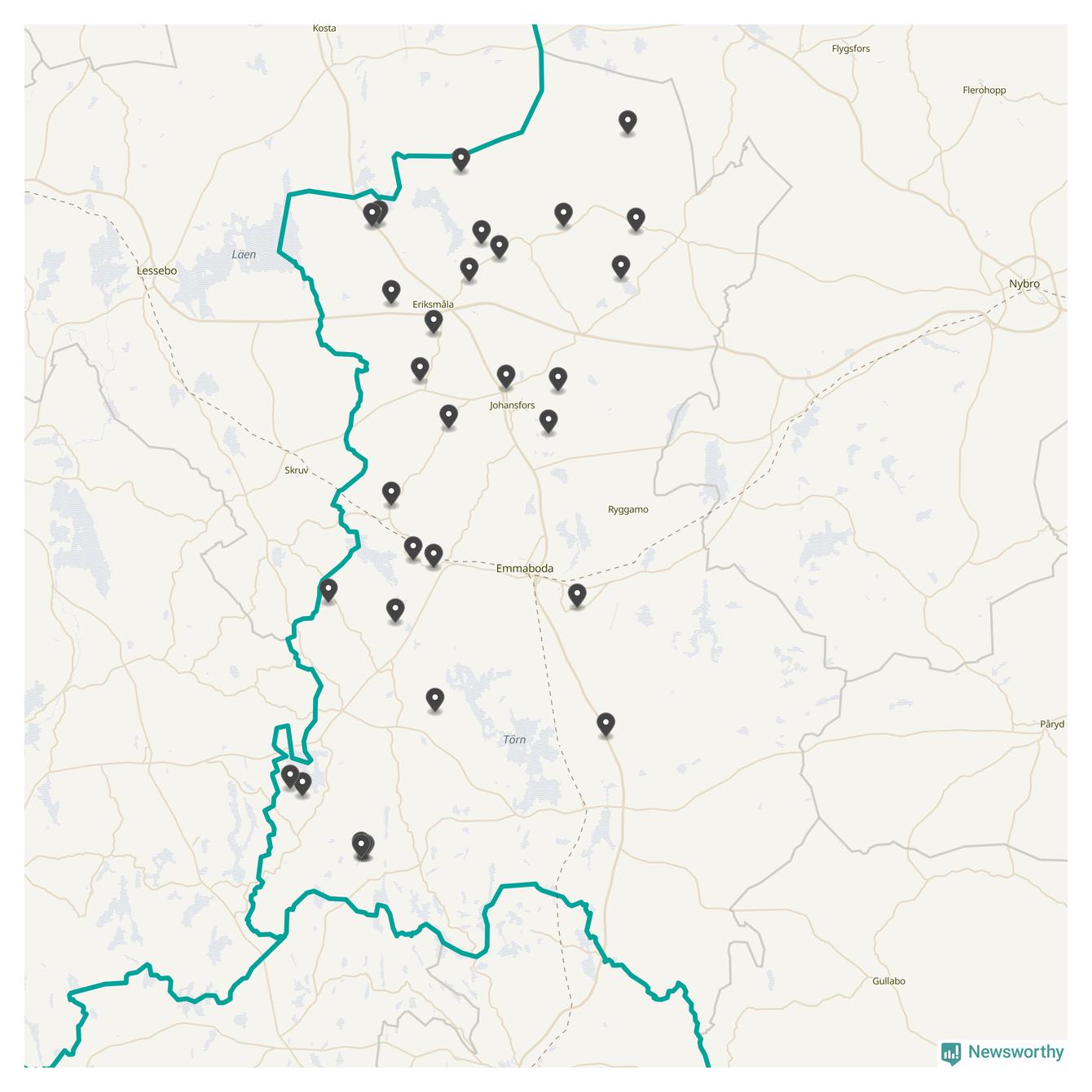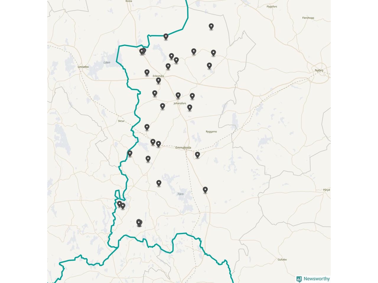 Flest registrerade öde begravningsplatser i hela landet finns i Kristianstads kommun, hela 35 stycken. Flest i Kalmar län, 31 stycken, finns i Emmaboda kommun. Det ska dock poängteras att det kan finnas fler på andra platser. Databasen bygger på vad som rapporterats in, och det är inte alltid som invånarna rapporterar även om platsen är vida känd, menar Ny Björn Gustafsson.