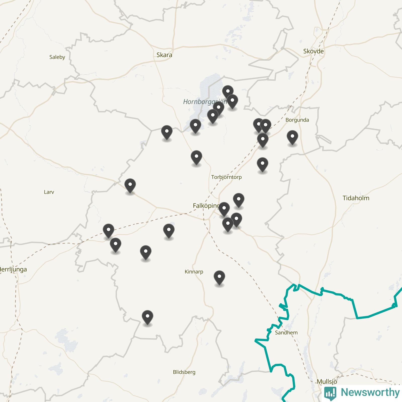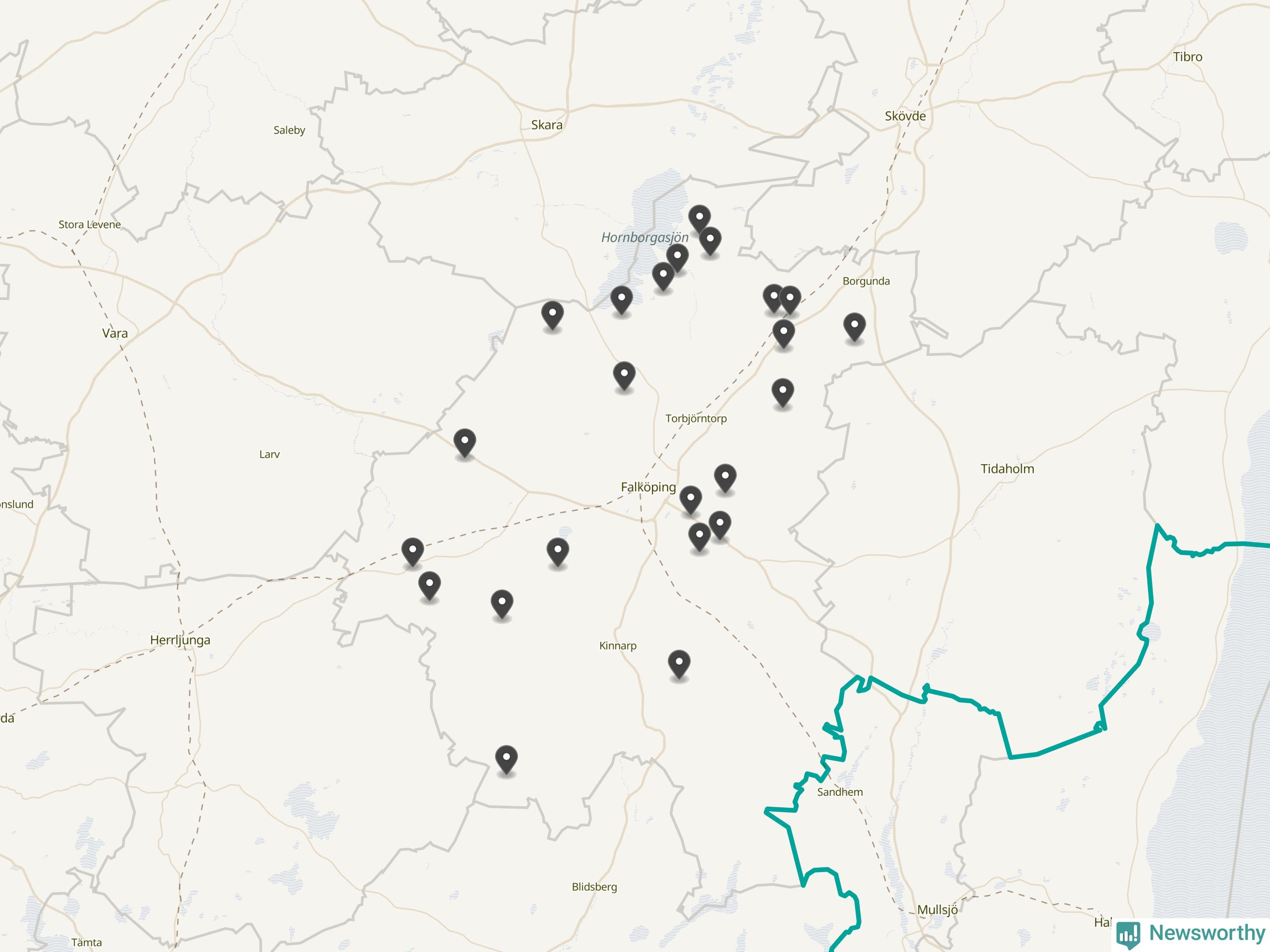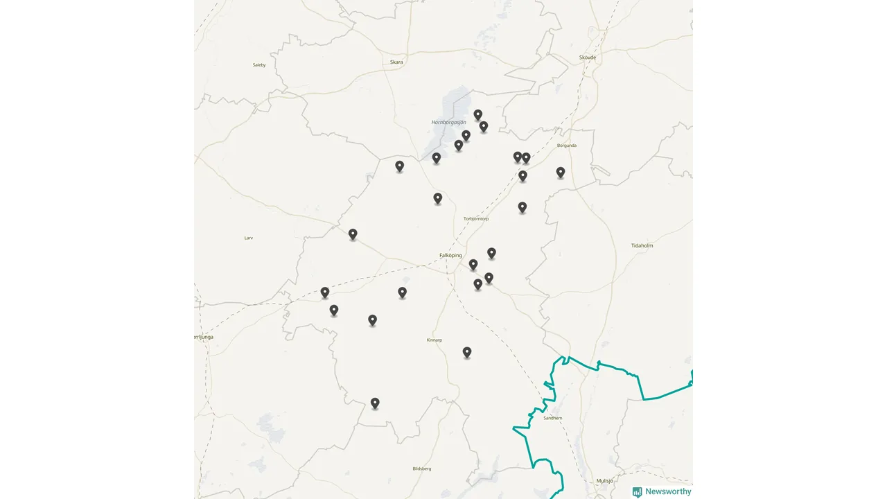 | Tidaholm | 10 | Ödekyrkogård | 41 |