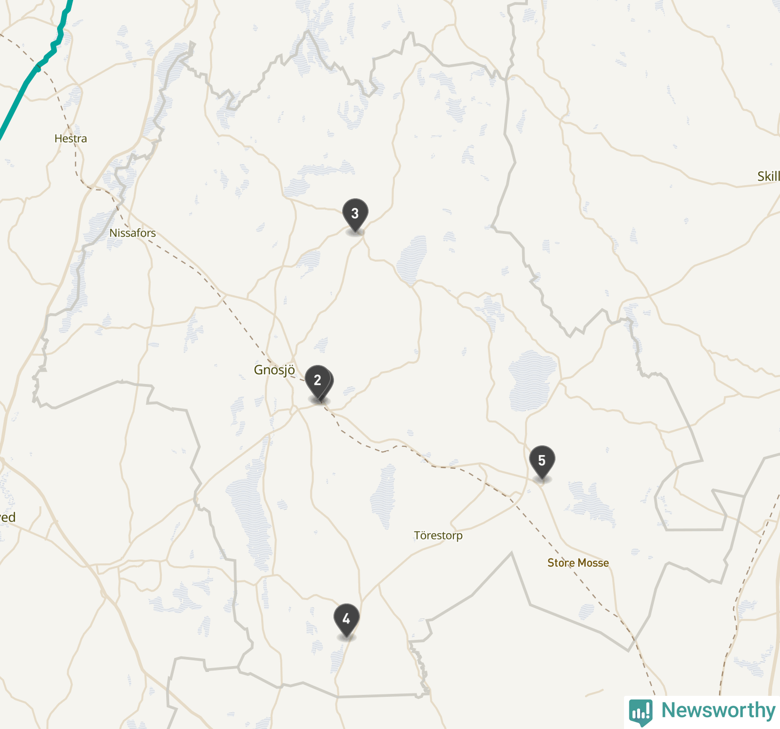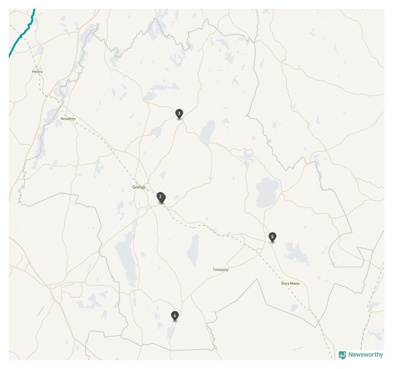 | Gnosjö | 5 | Ödekyrkogård | 8 |