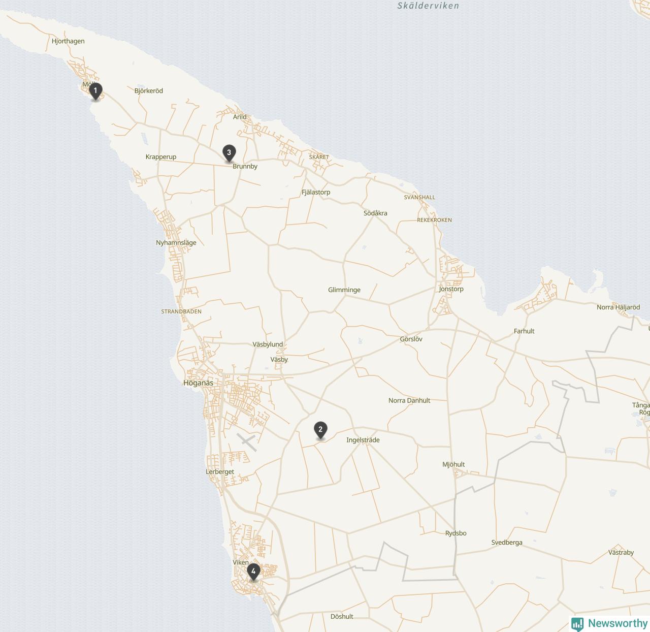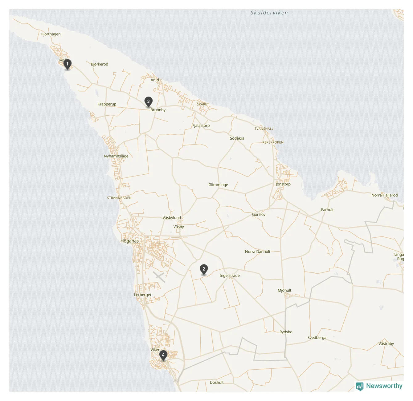 | Höganäs | 4 | Pest-/kolerakyrkogård | 3 |