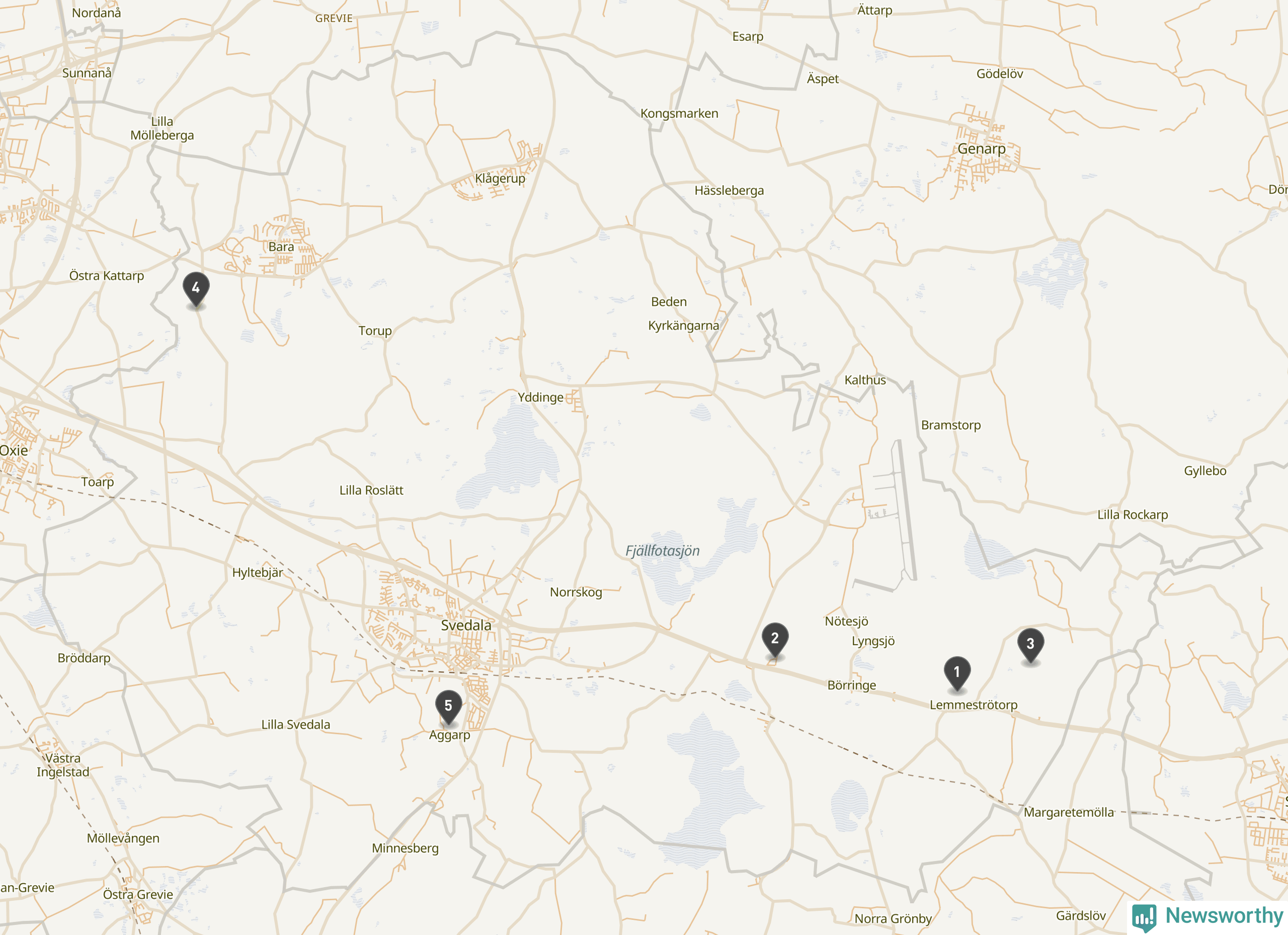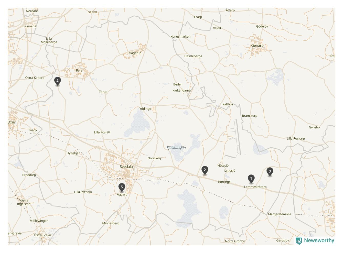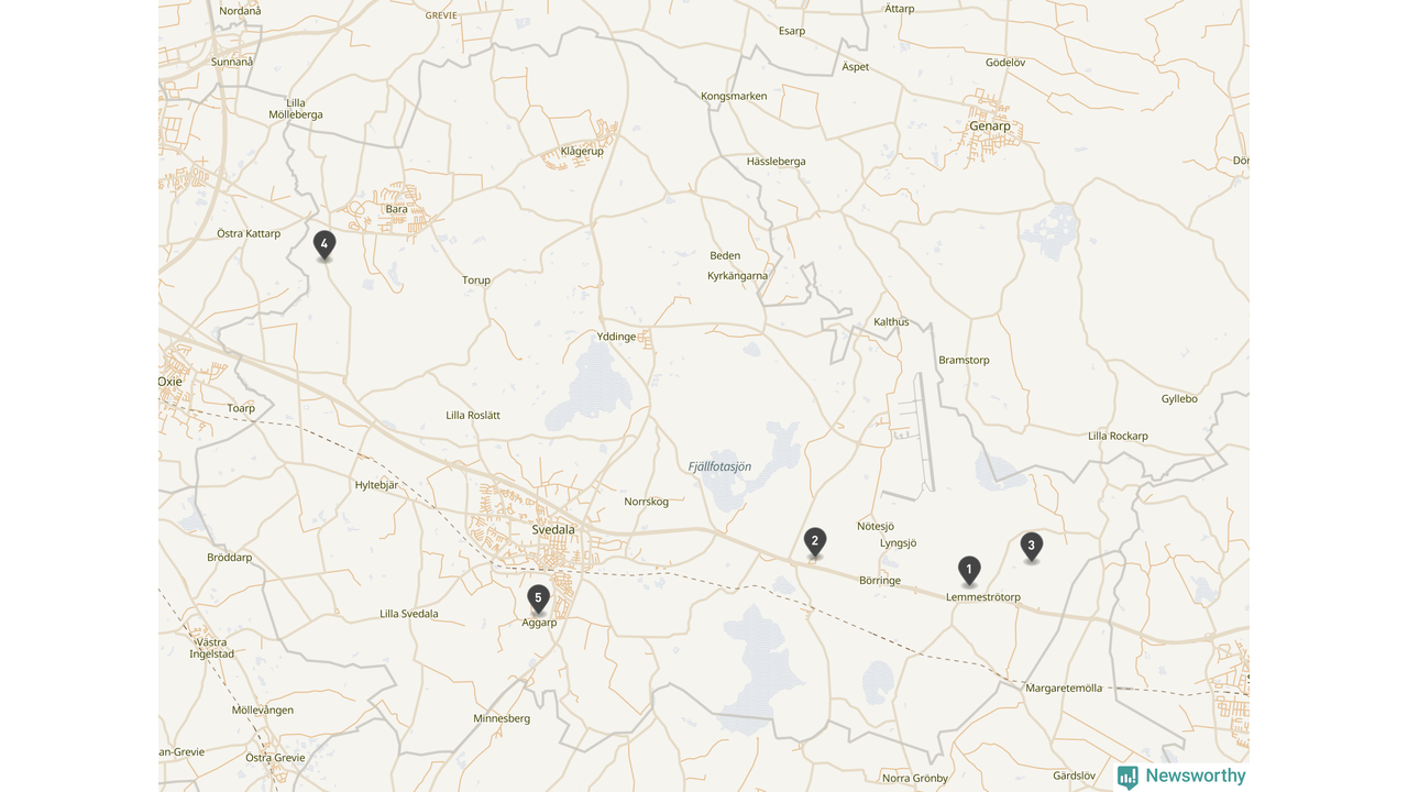 | Staffanstorp | 3 | Ödekyrkogård | 2 |