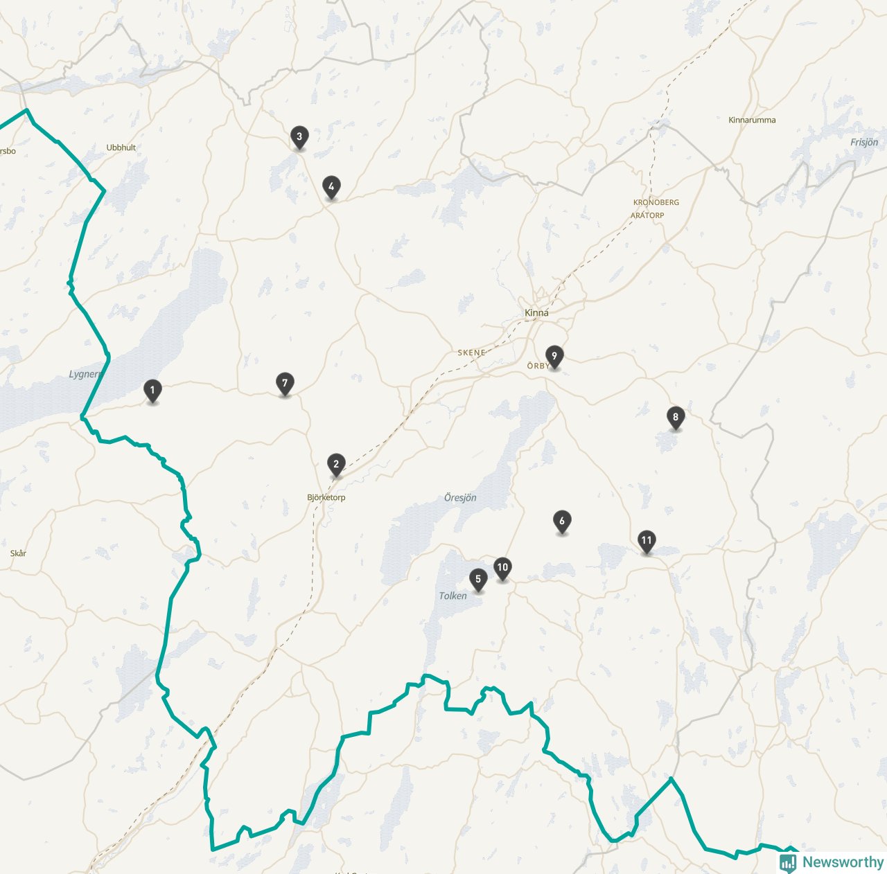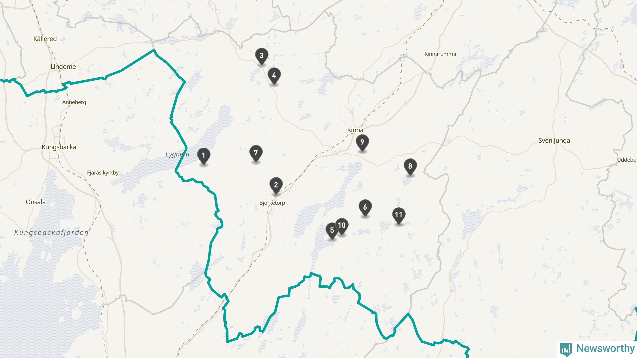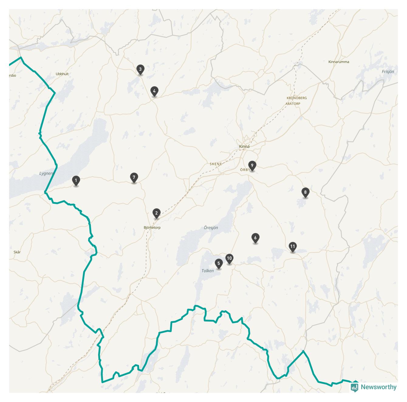 | Nummer på kartan | Socken | Typ | Synlig? | Eventuellt namn | Kartlänk |