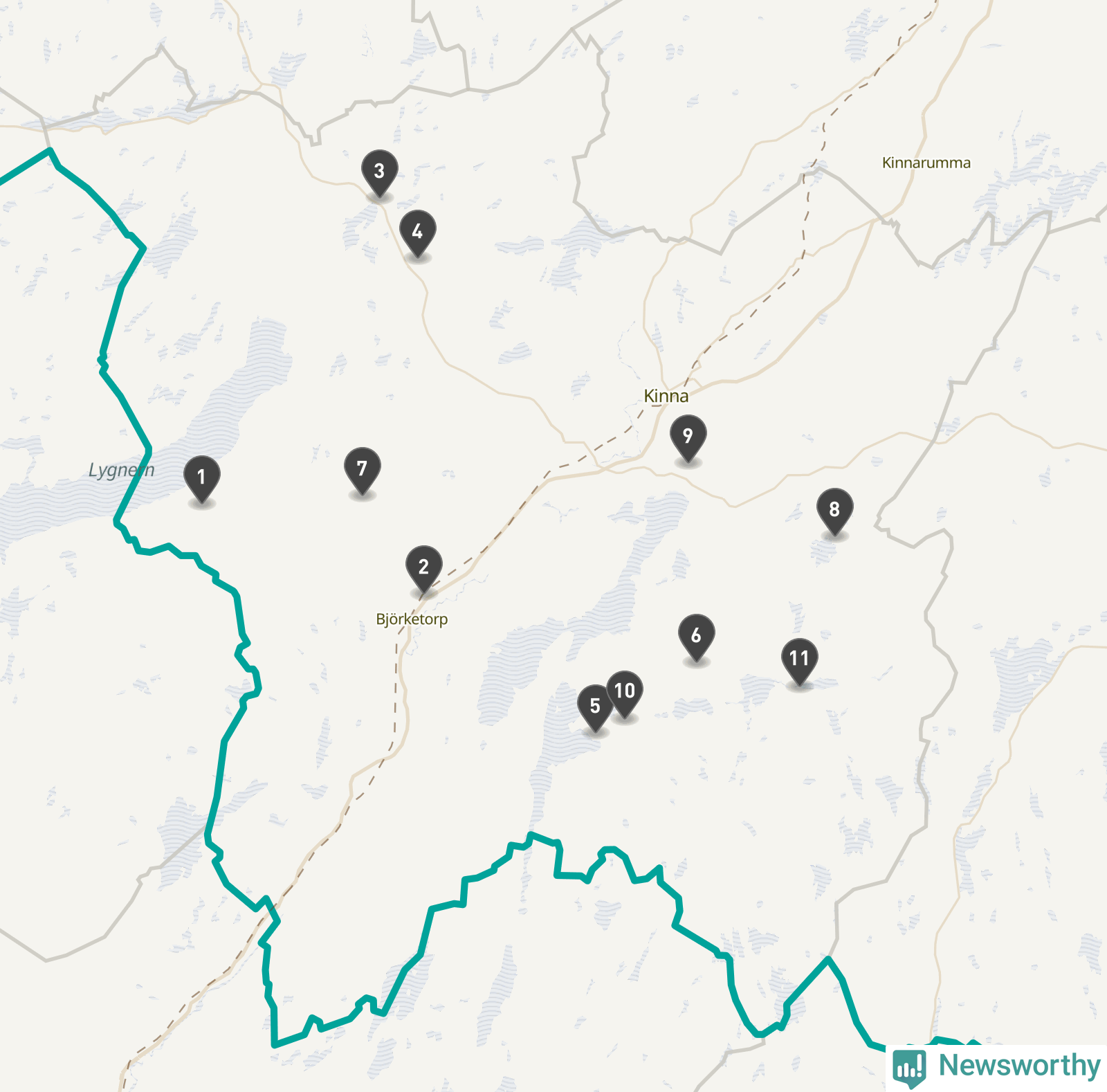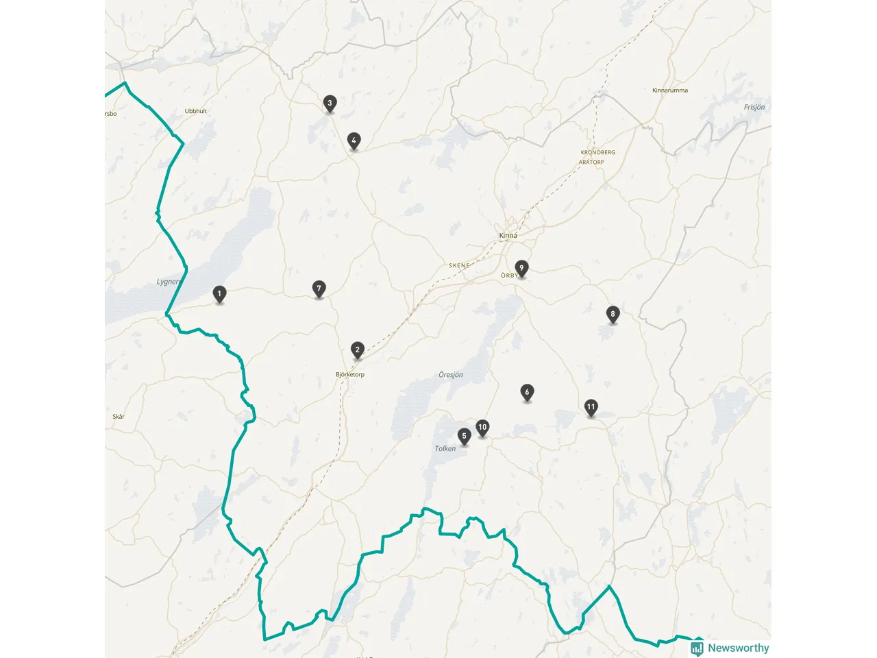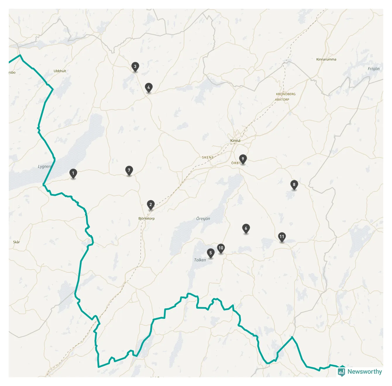 | Nummer på kartan | Socken | Typ | Synlig? | Eventuellt namn | Kartlänk |