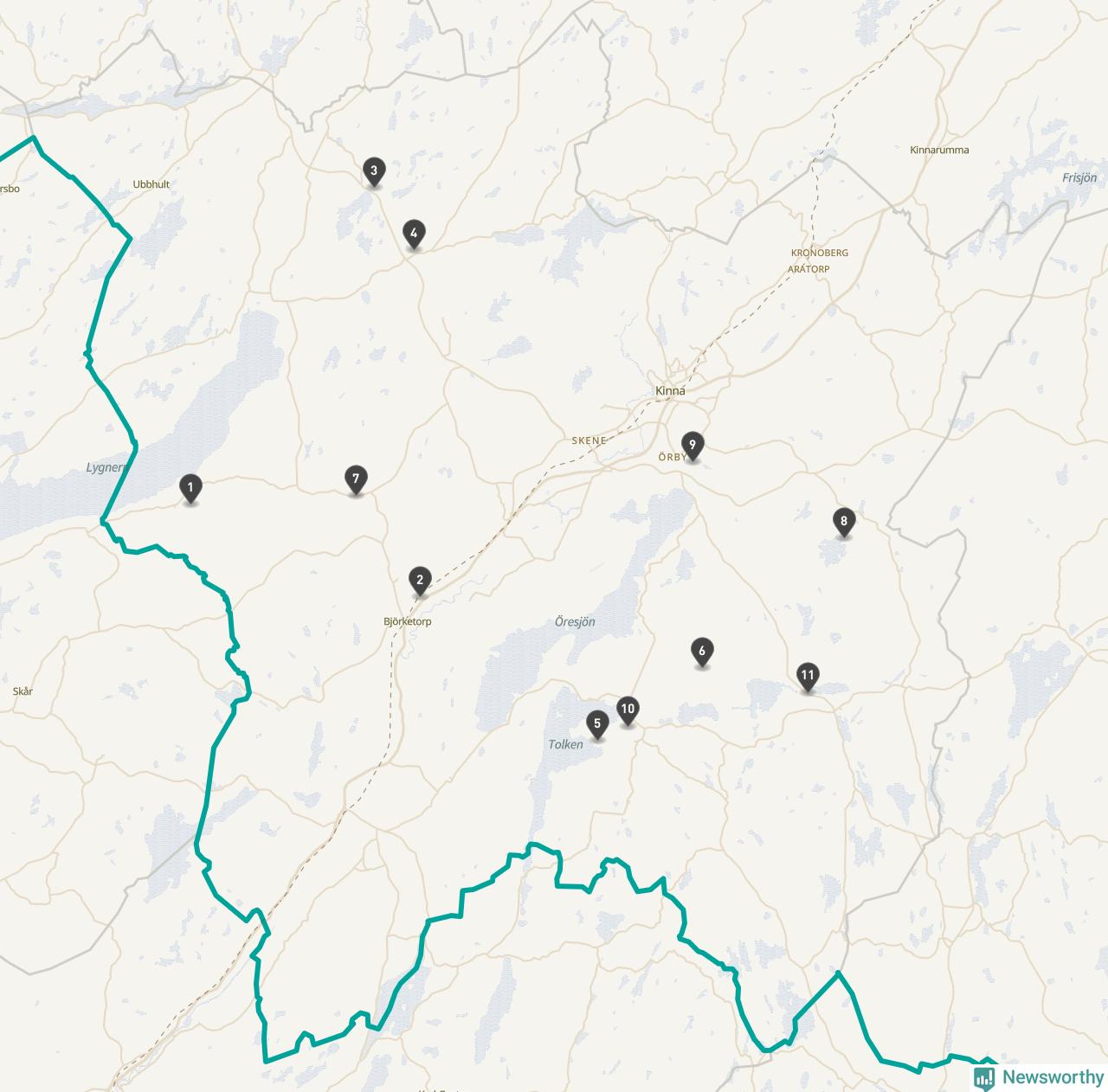 | Tranemo | 4 | Ödekyrkogård | 62 |