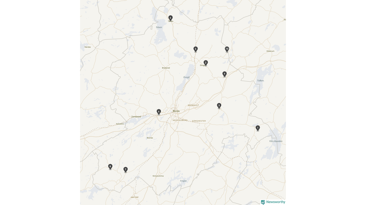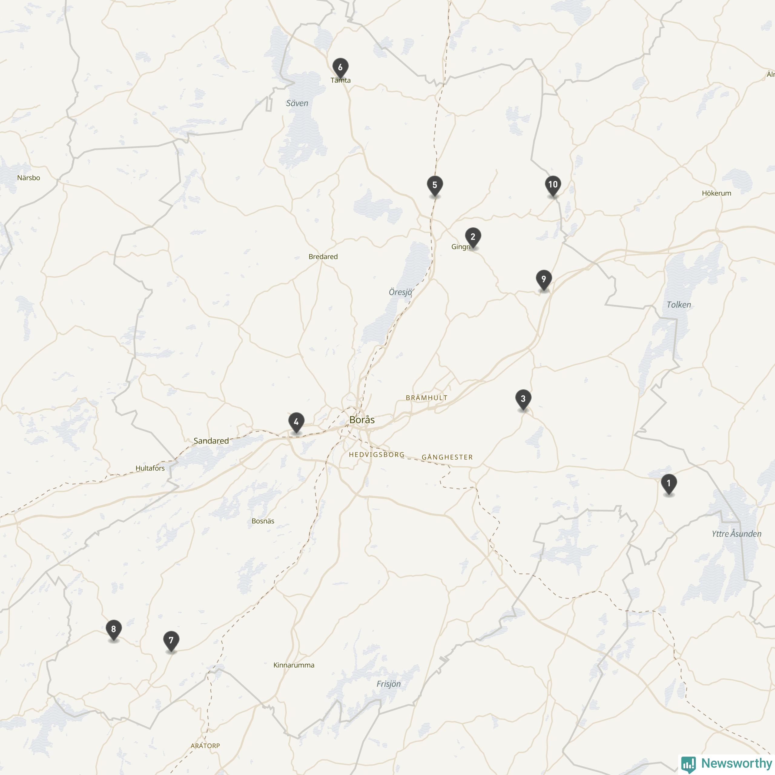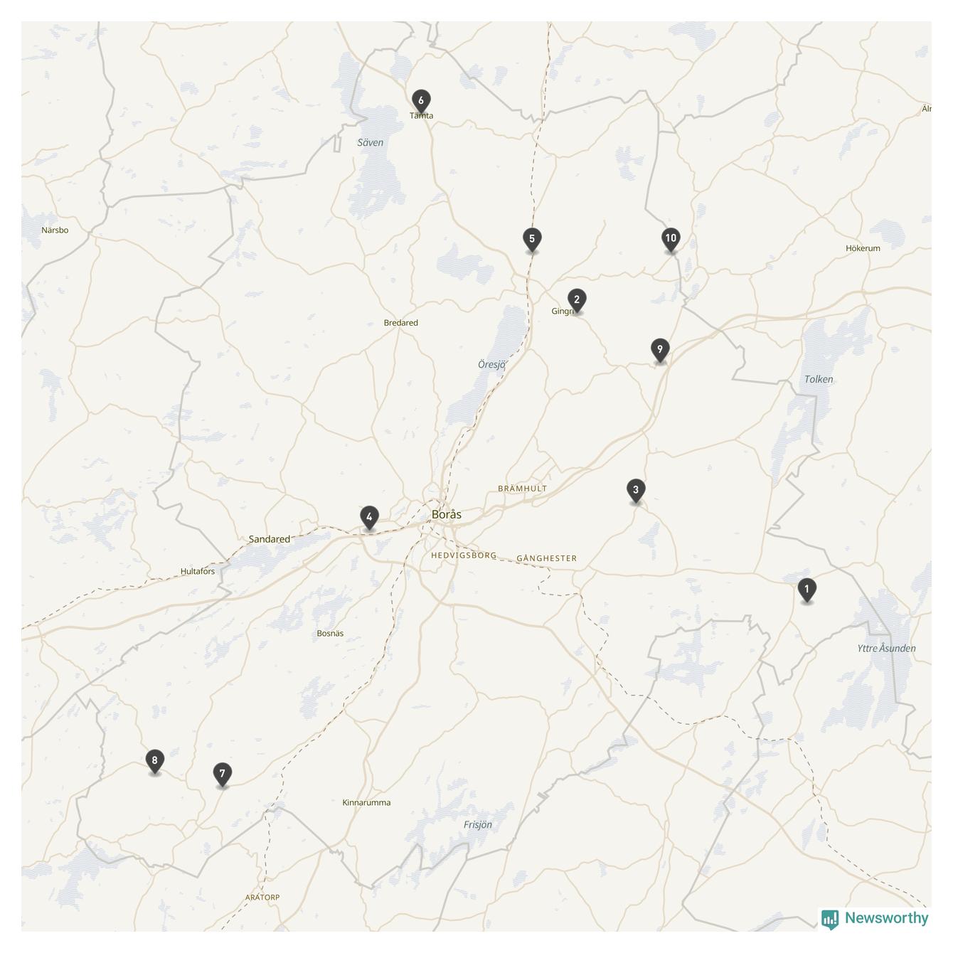 | Tidaholm | 10 | Ödekyrkogård | 41 |