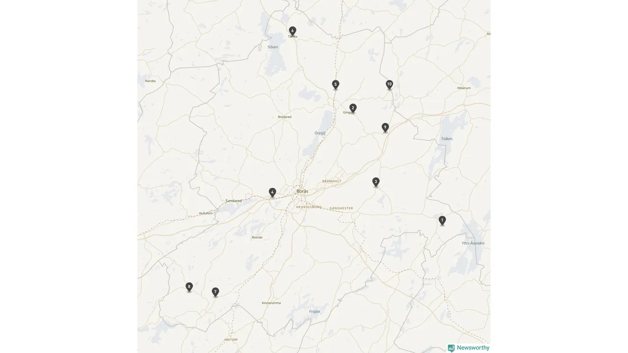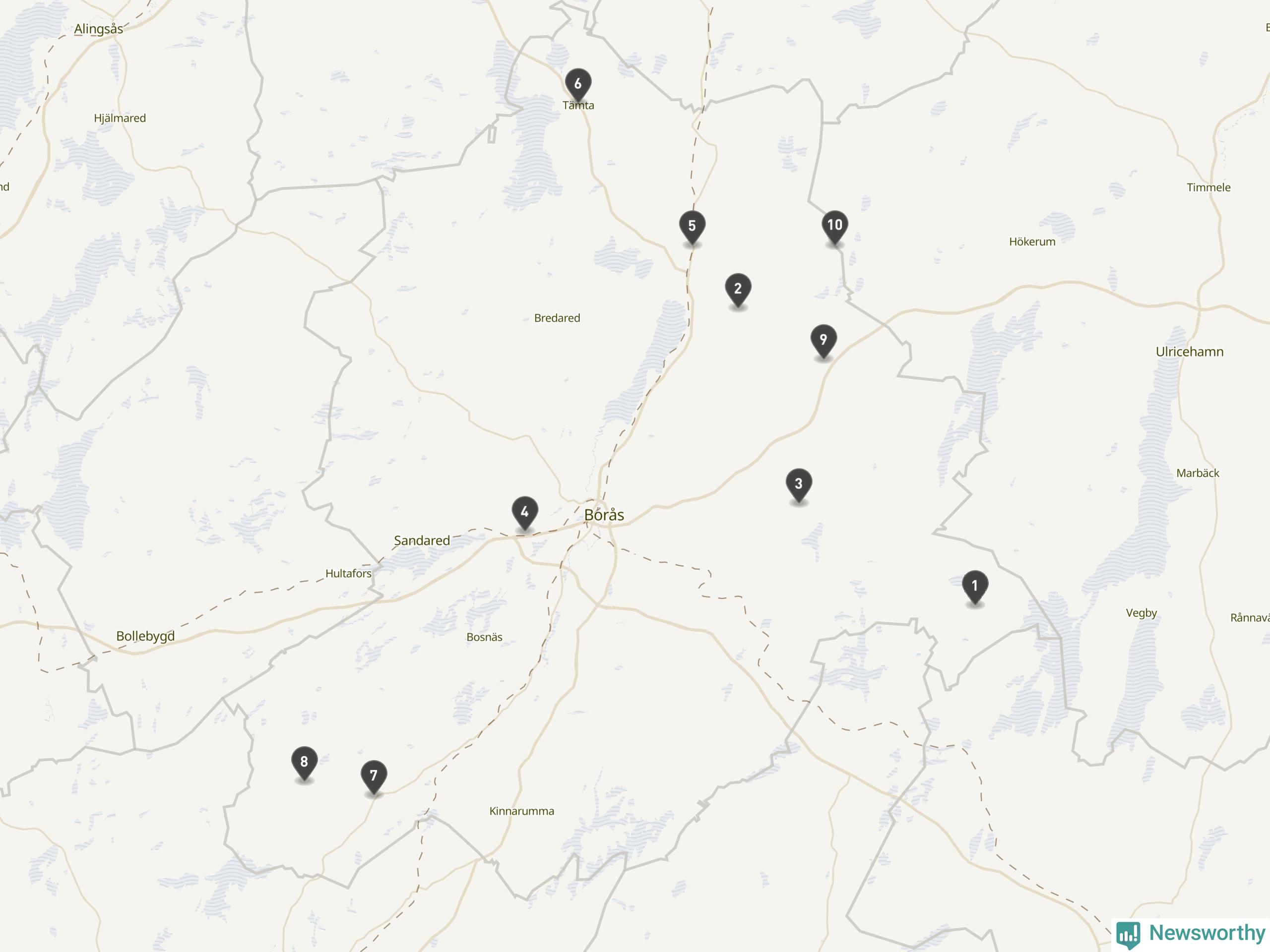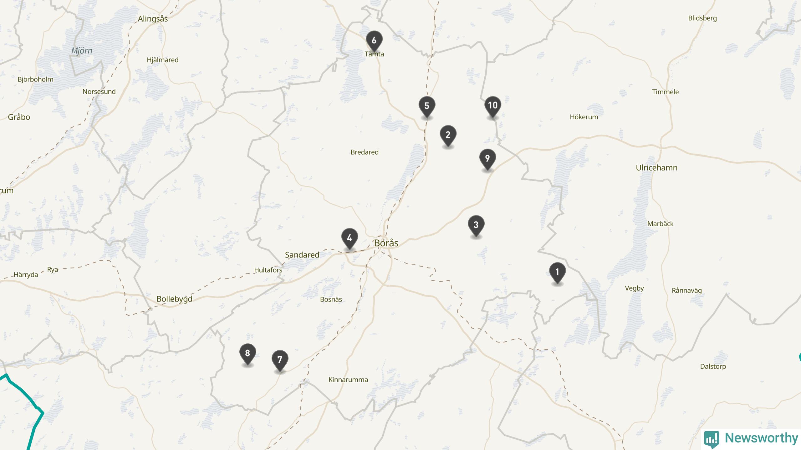 | Tidaholm | 10 | Ödekyrkogård | 41 |