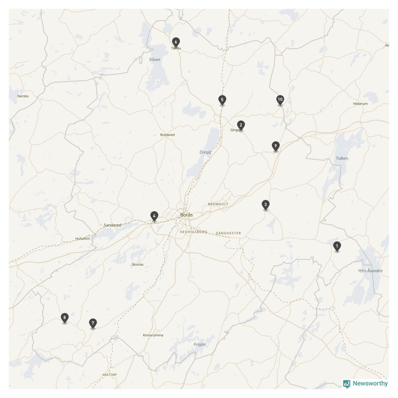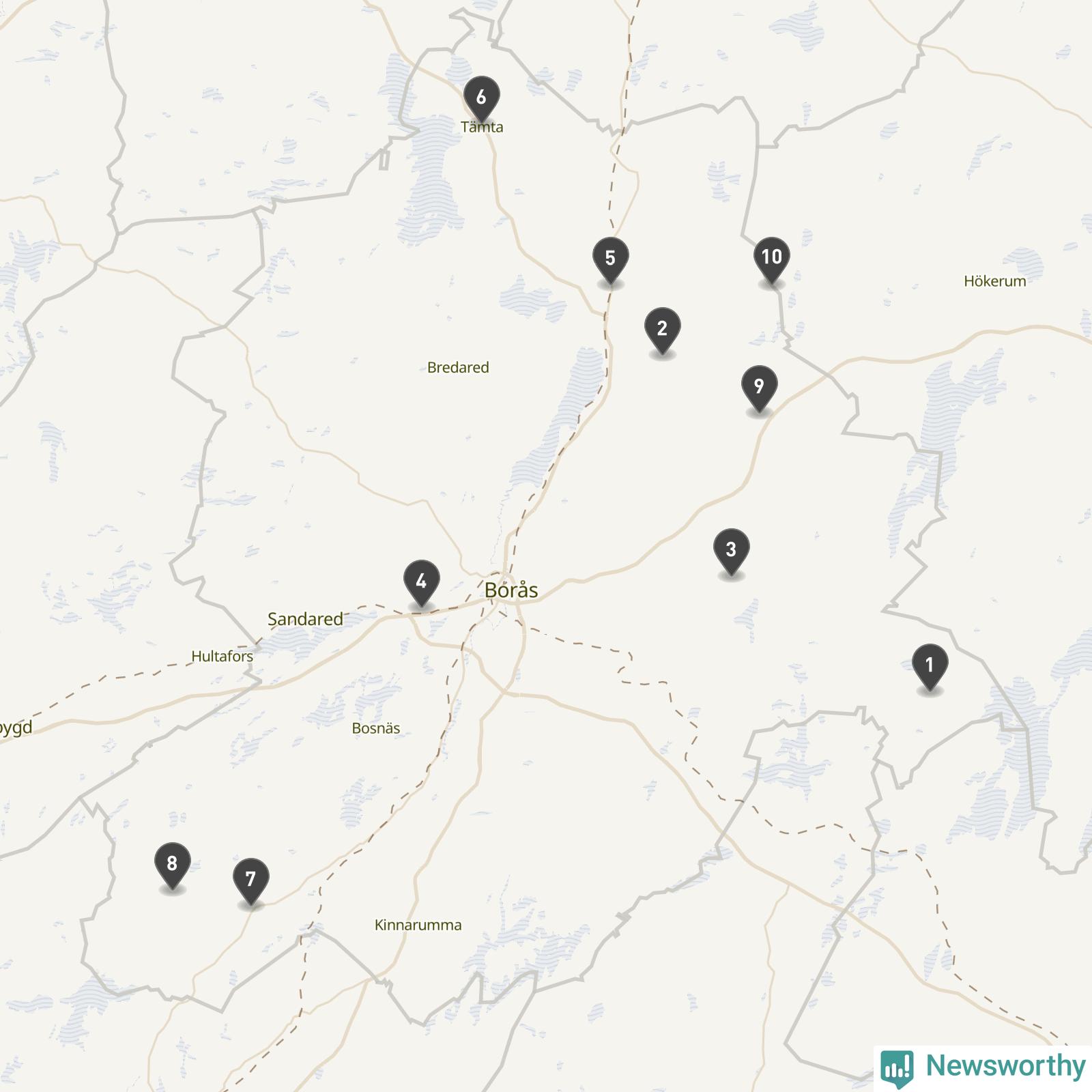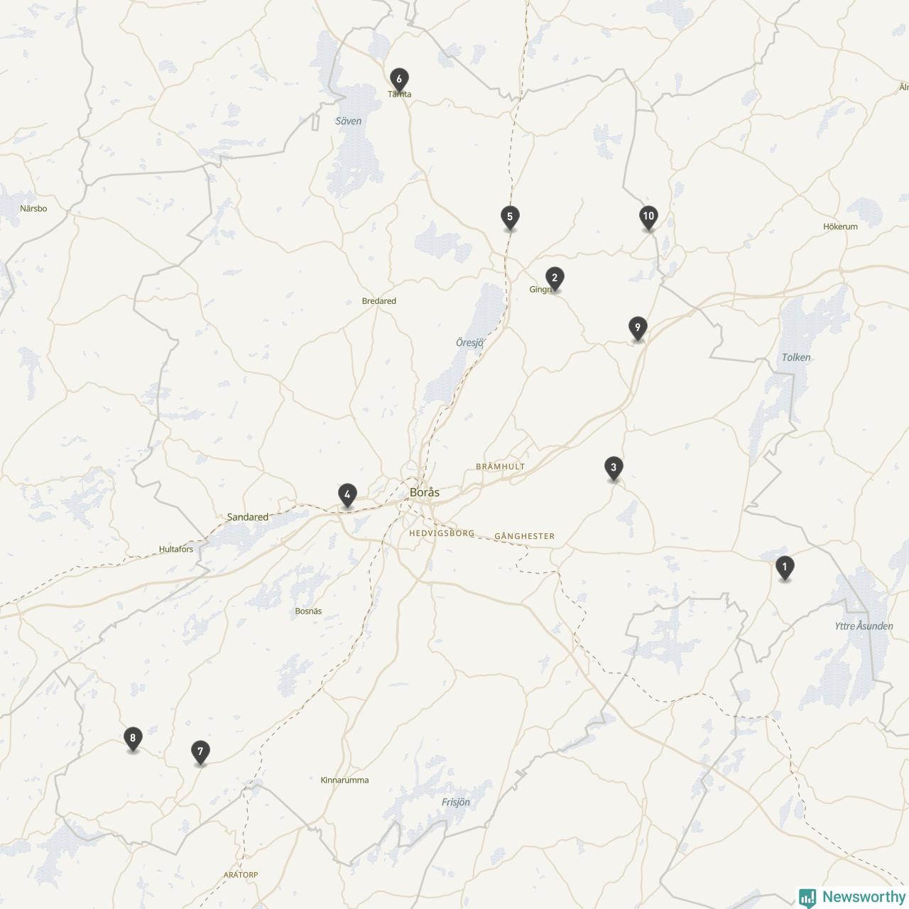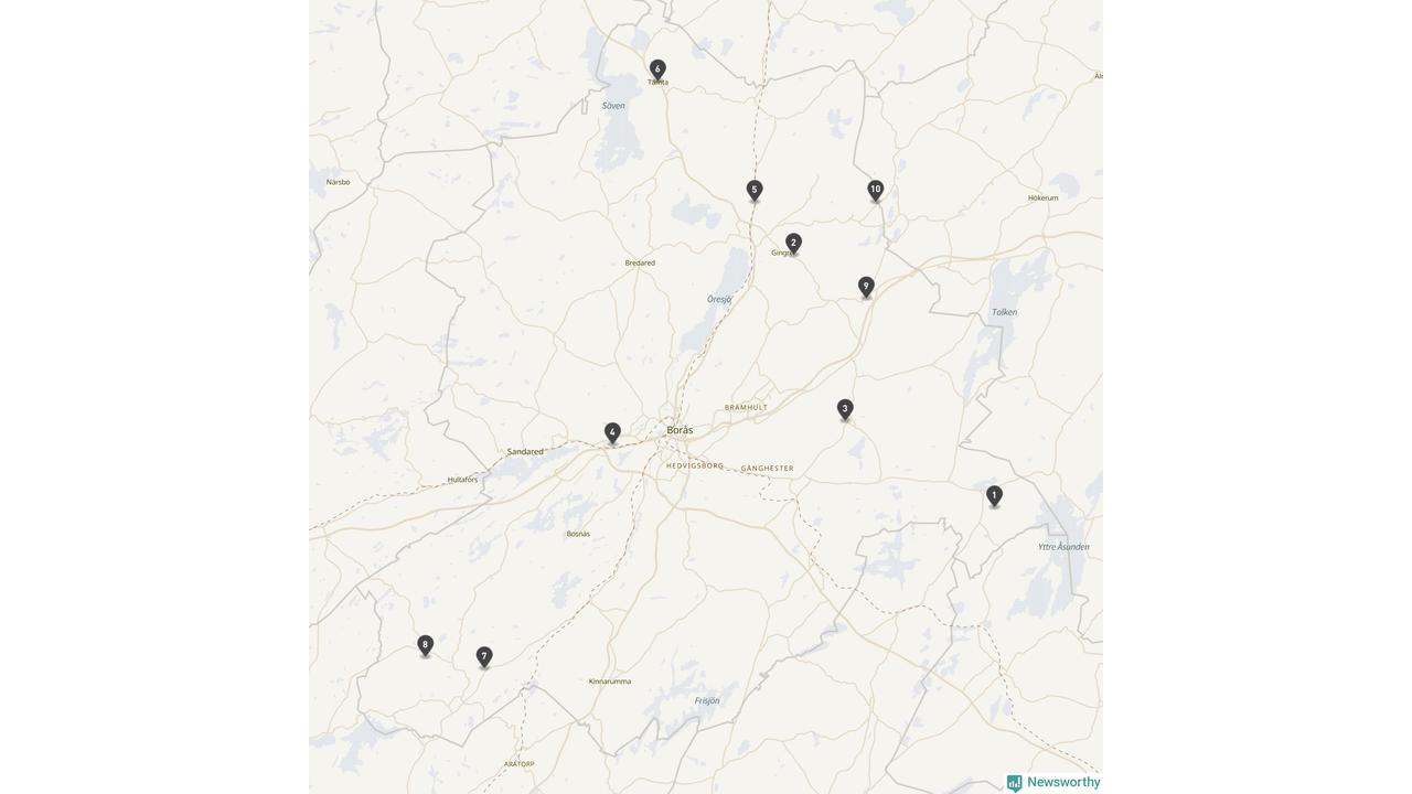 | Skövde | 10 | Ödekyrkogård | 58 |