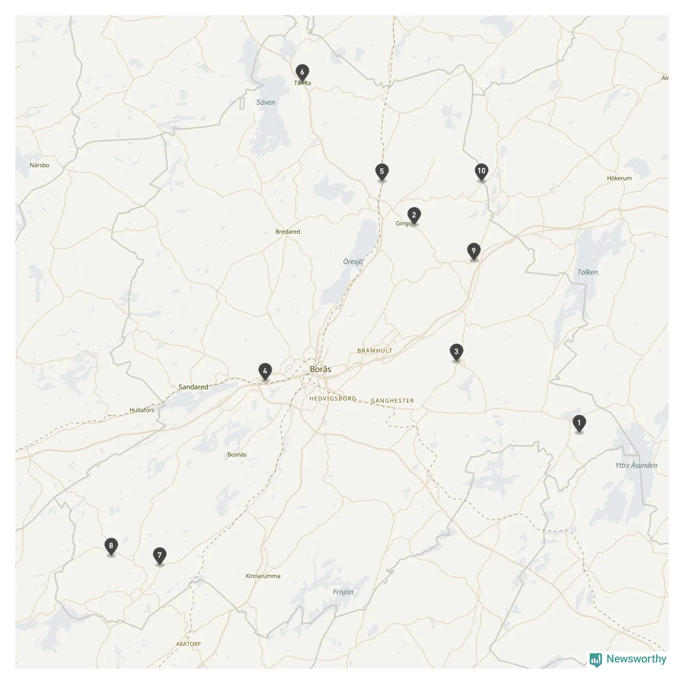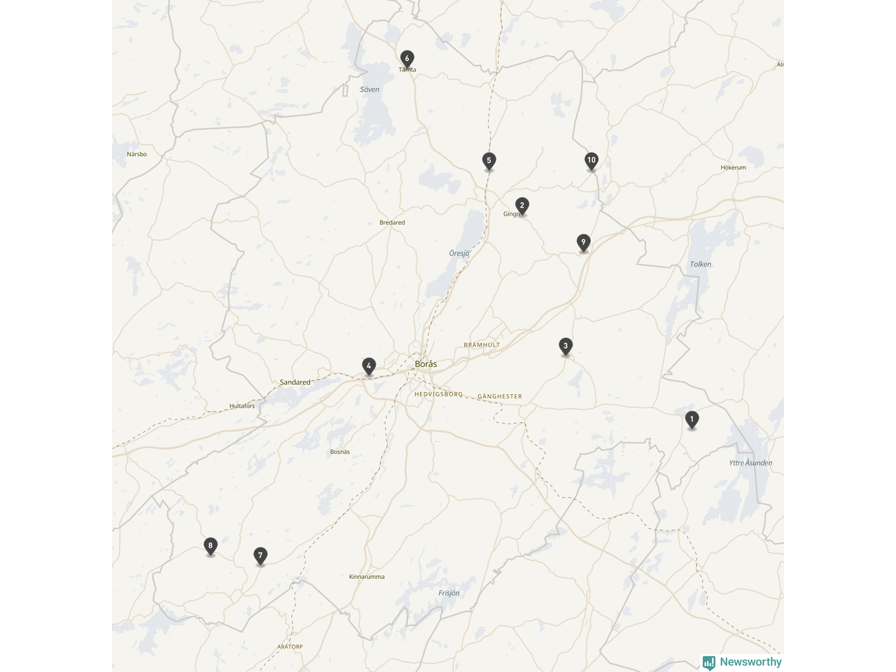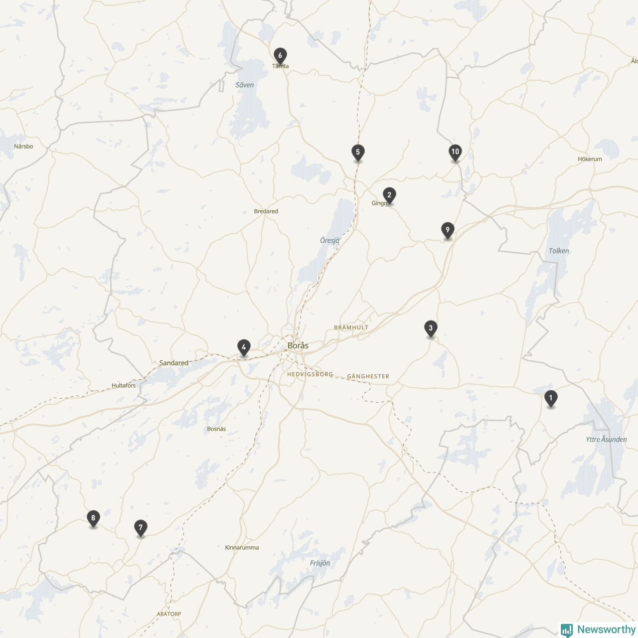 | Skövde | 10 | Ödekyrkogård | 58 |