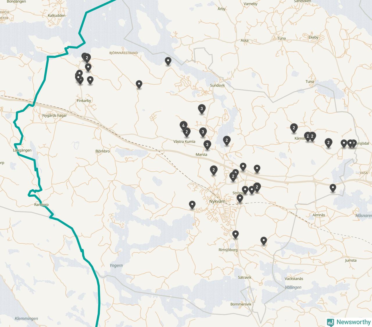 Flest registrerade öde begravningsplatser i hela landet finns i Kristianstads kommun, hela 35 stycken. Flest i Stockholms län, tolv stycken, finns Haninge och Stockholms kommuner. Det ska dock poängteras att det kan finnas fler på andra platser. Databasen bygger på vad som rapporterats in, och det är inte alltid som invånarna rapporterar även om platsen är vida känd, menar Ny Björn Gustafsson.