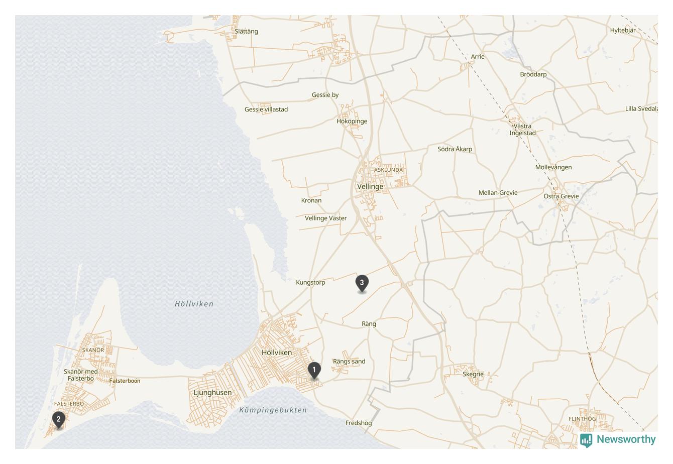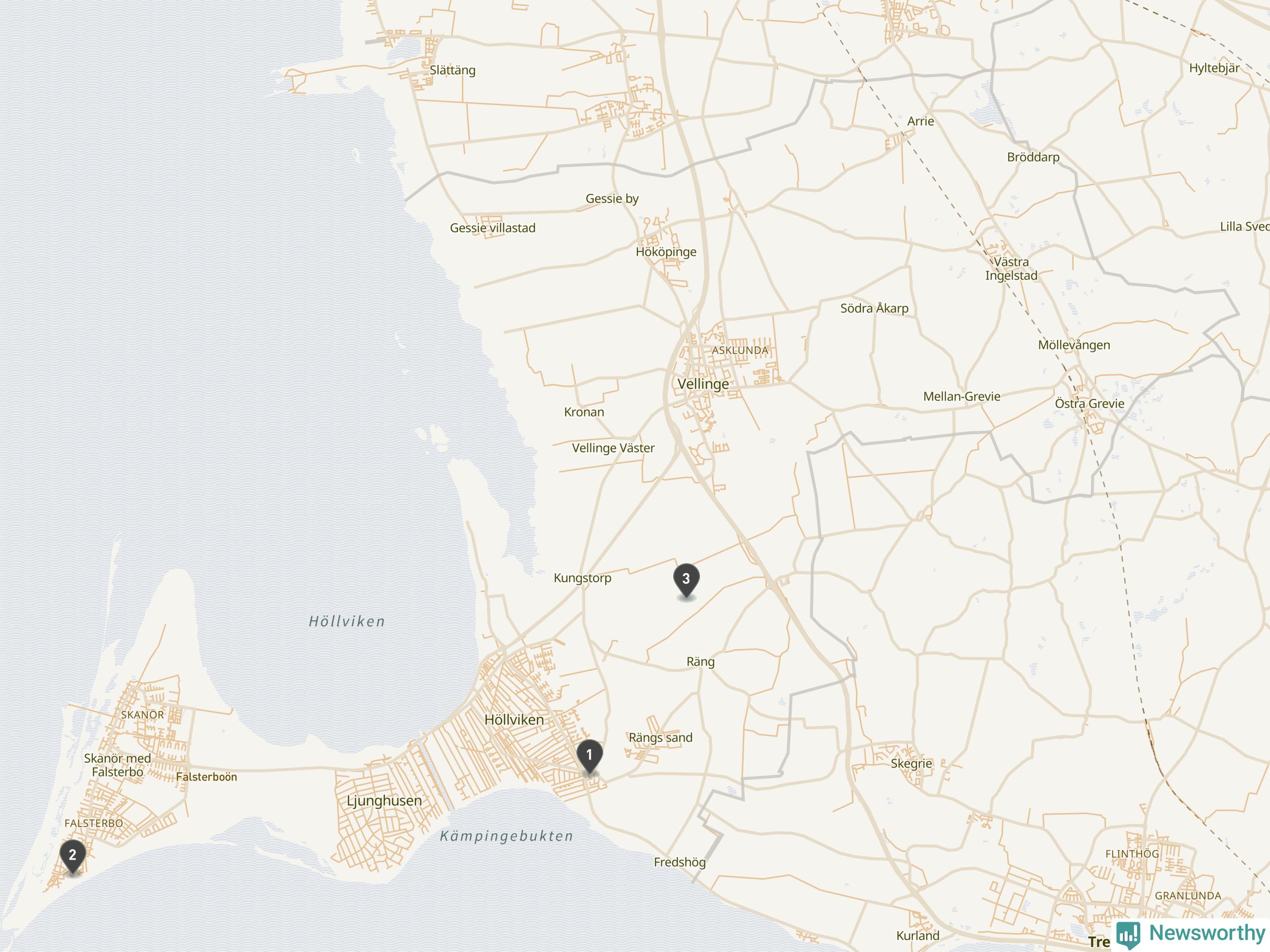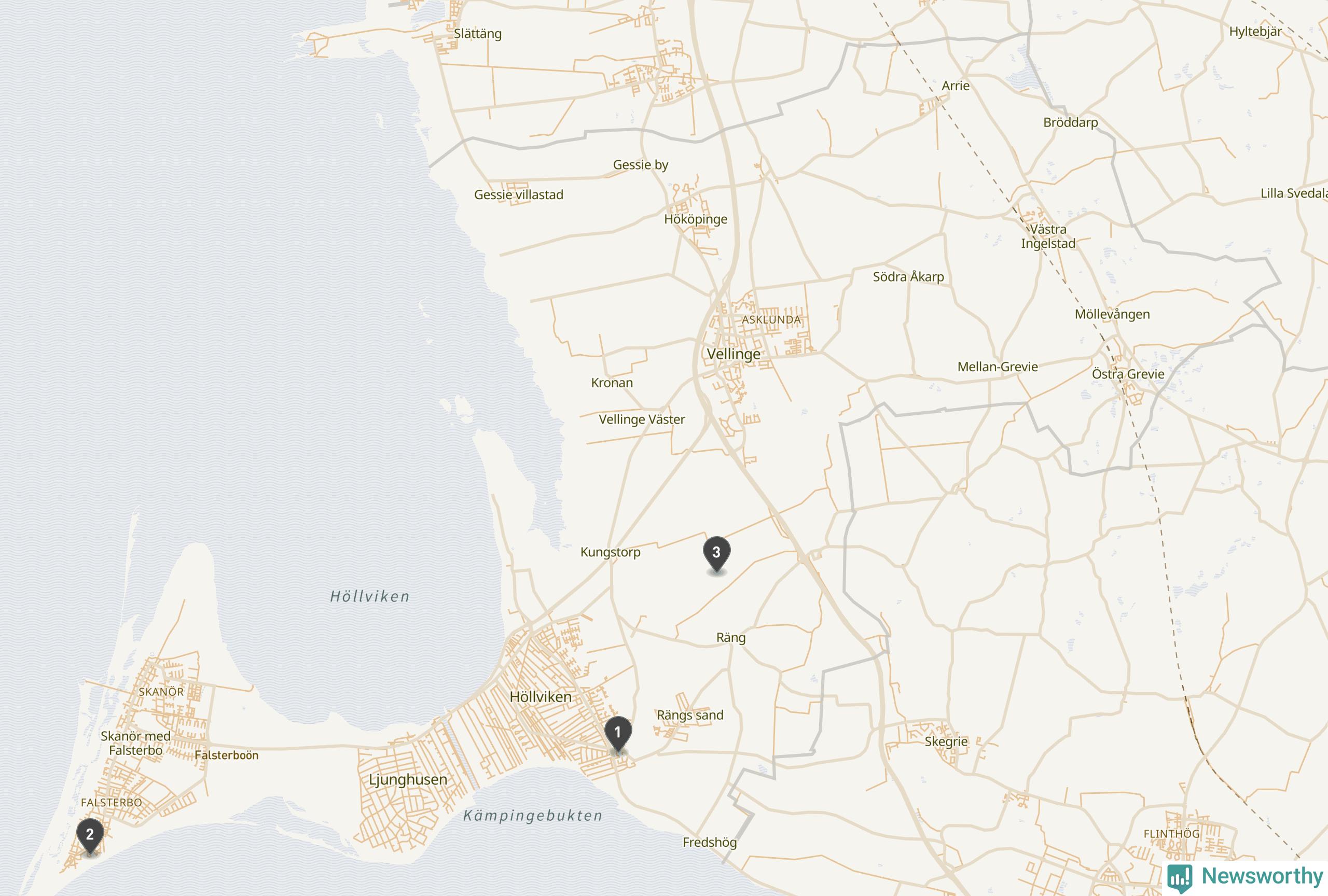 | Vellinge | 3 | Ödekyrkogård | 8 |