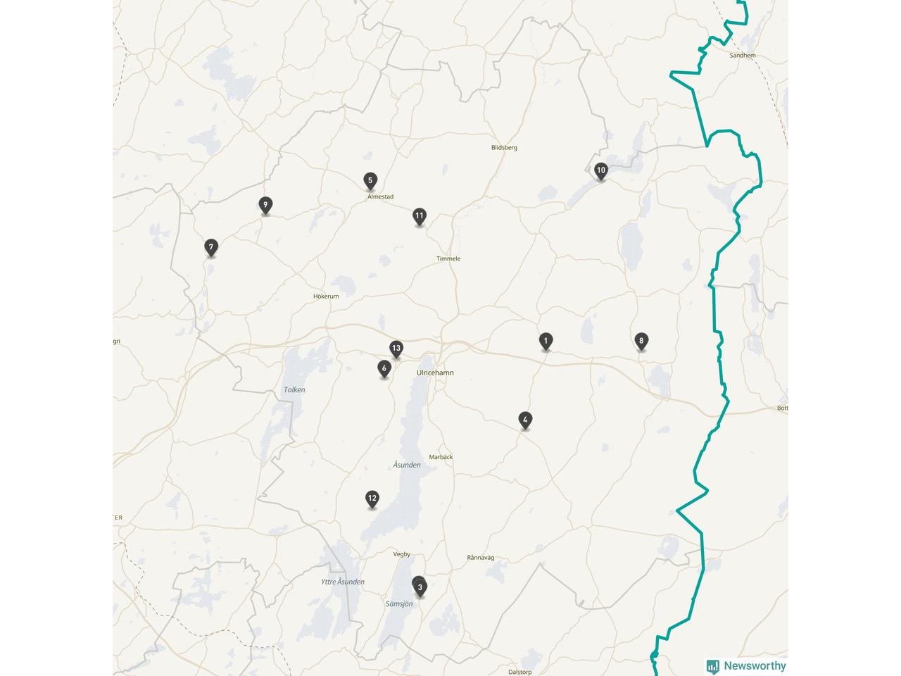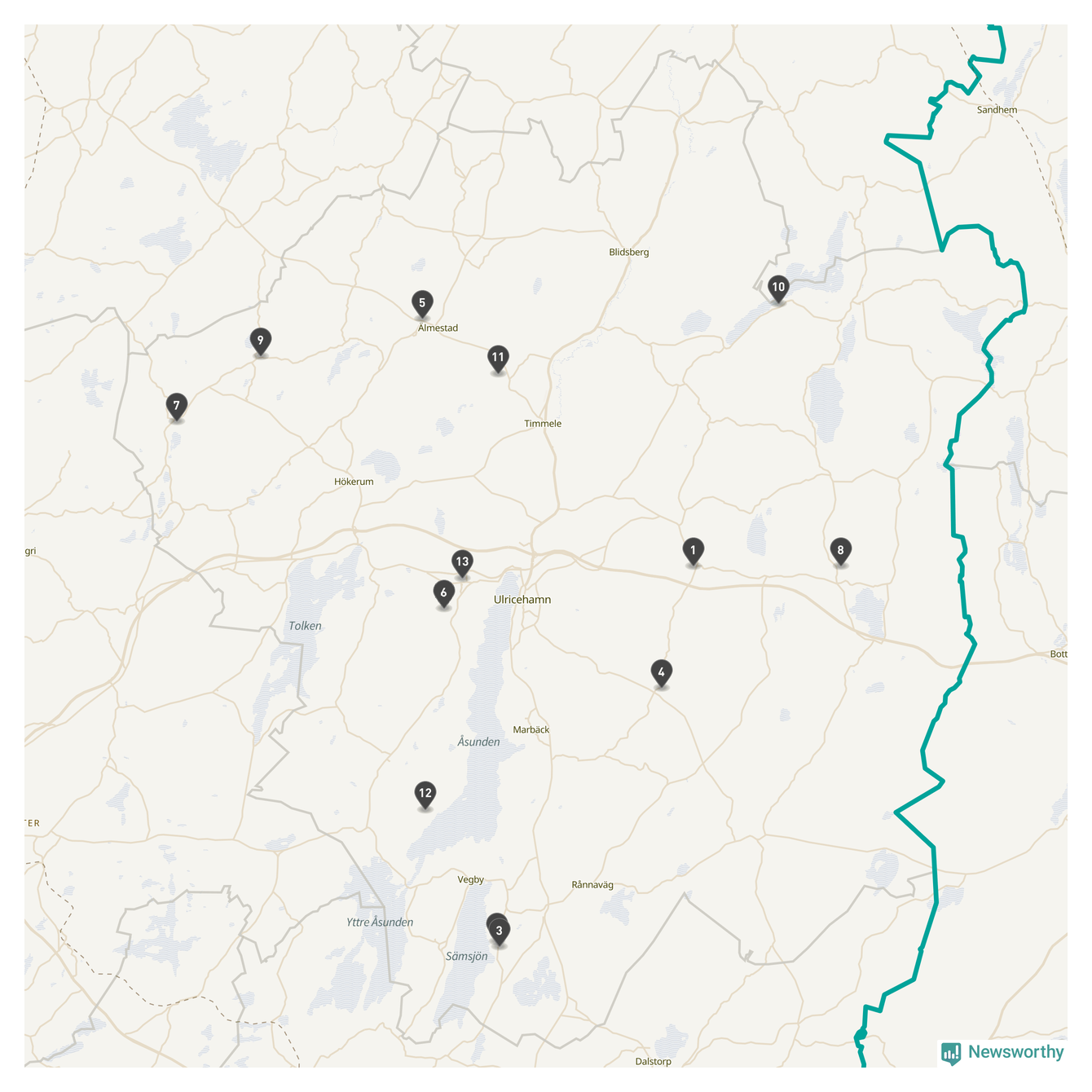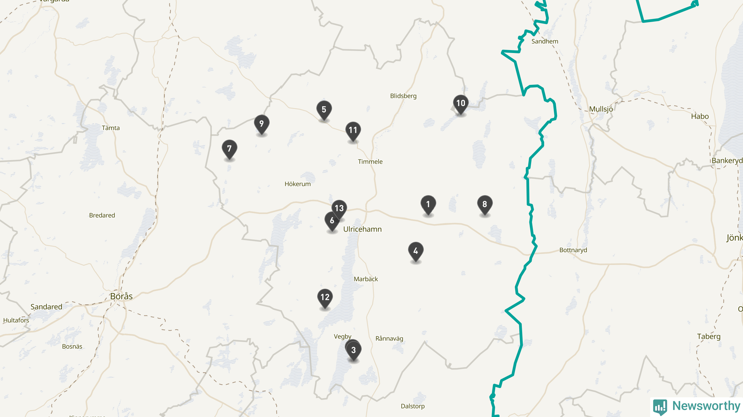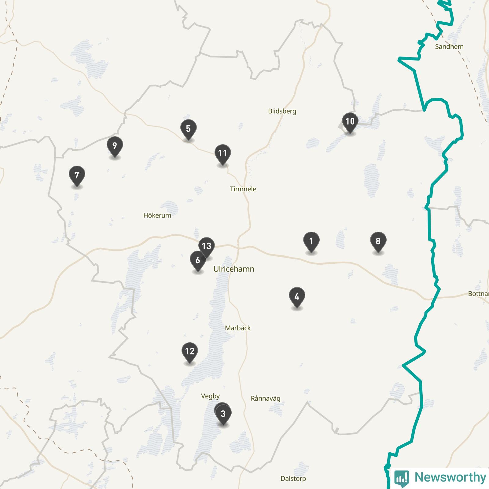| Ulricehamn | 13 | Ödekyrkogård | 115 |