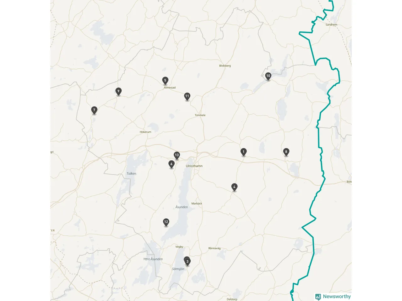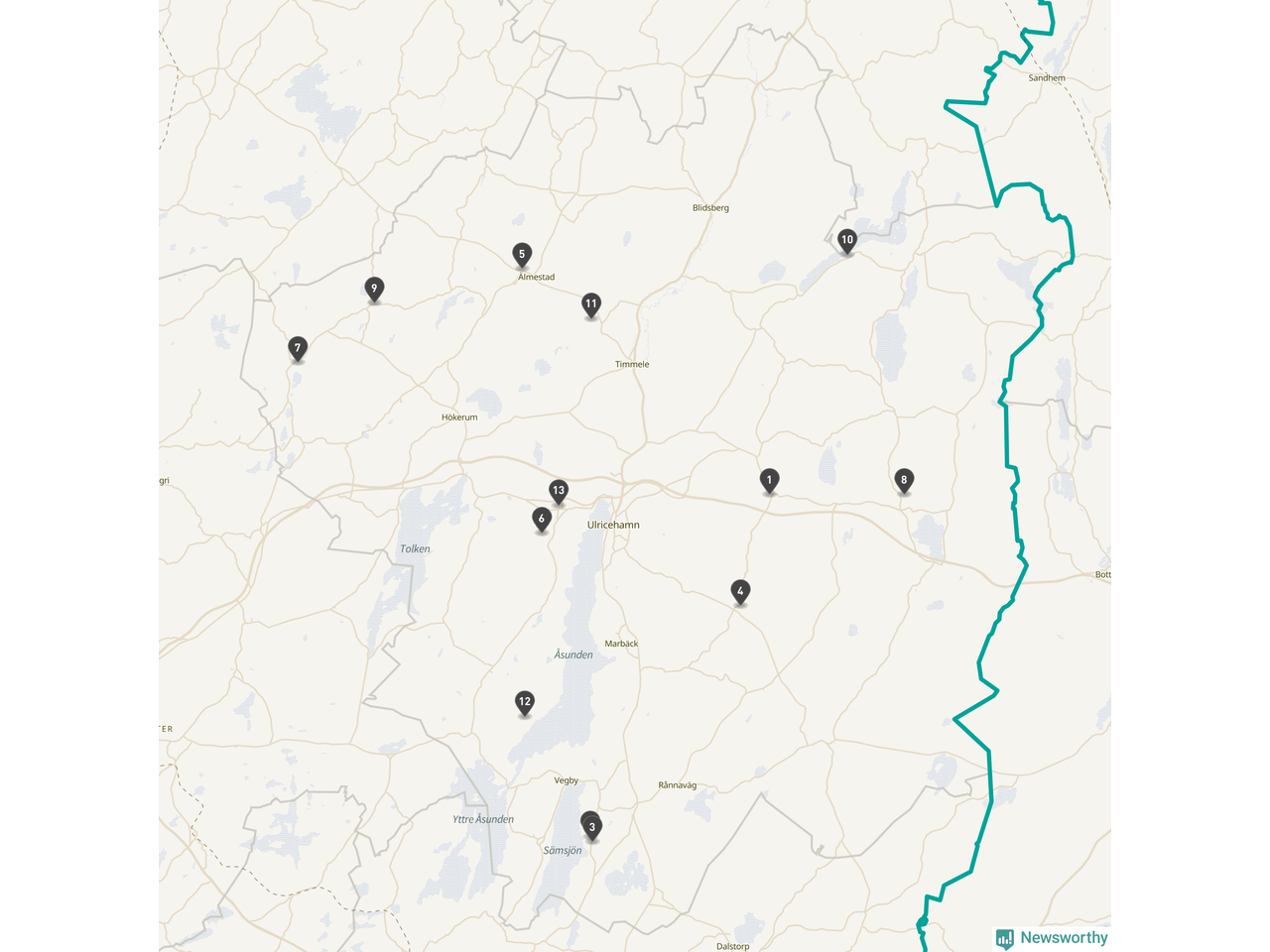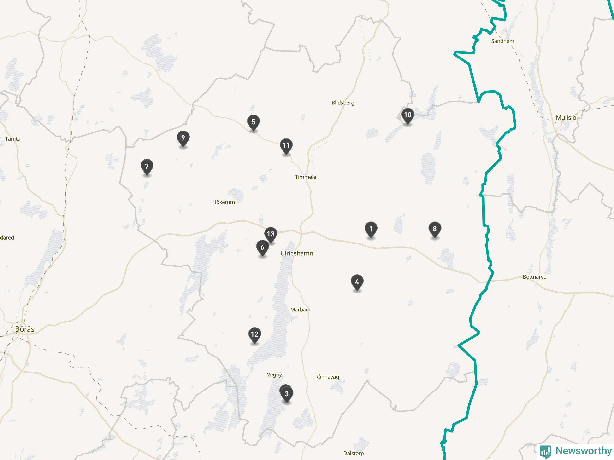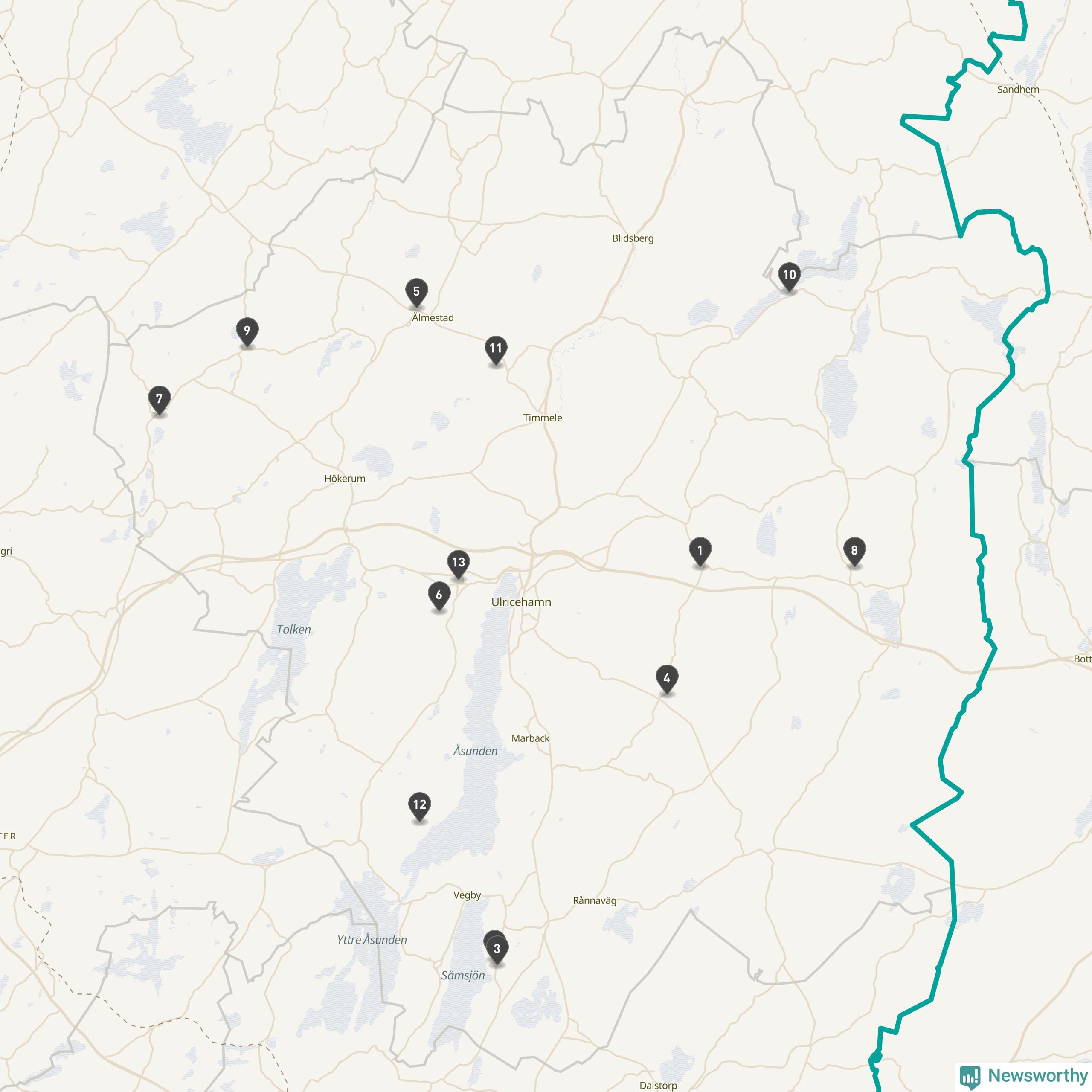 | Ulricehamn | 13 | Ödekyrkogård | 115 |