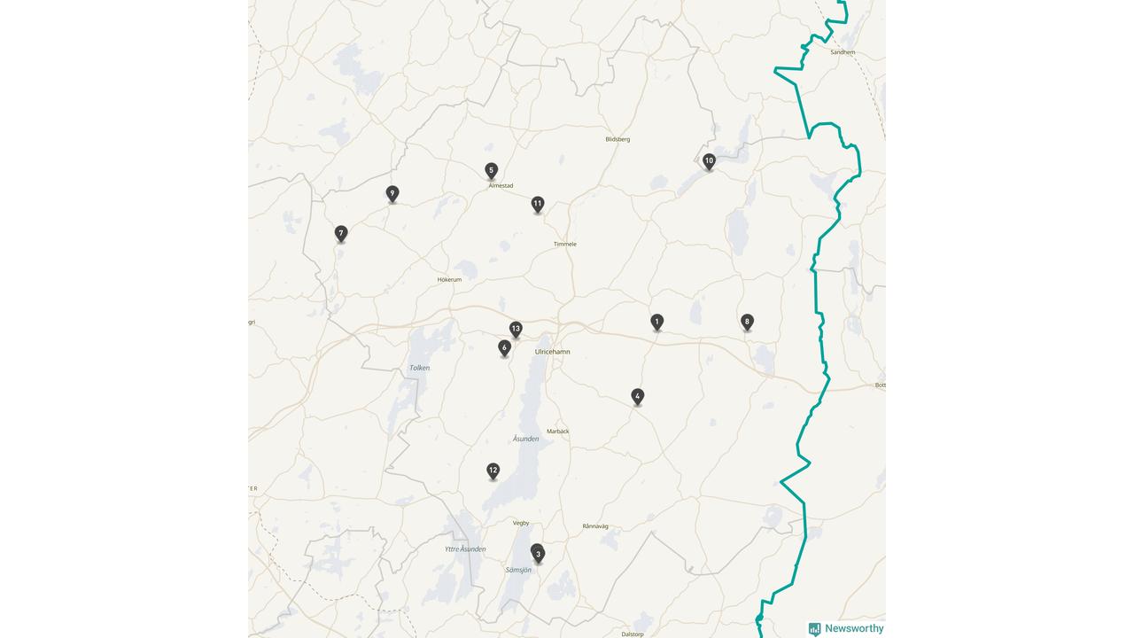 | Nummer på kartan | Socken | Typ | Synlig? | Kartlänk |