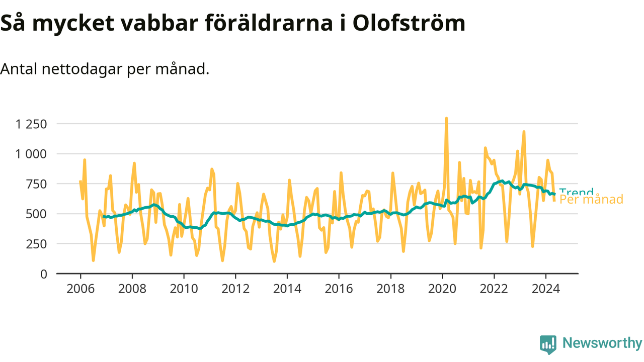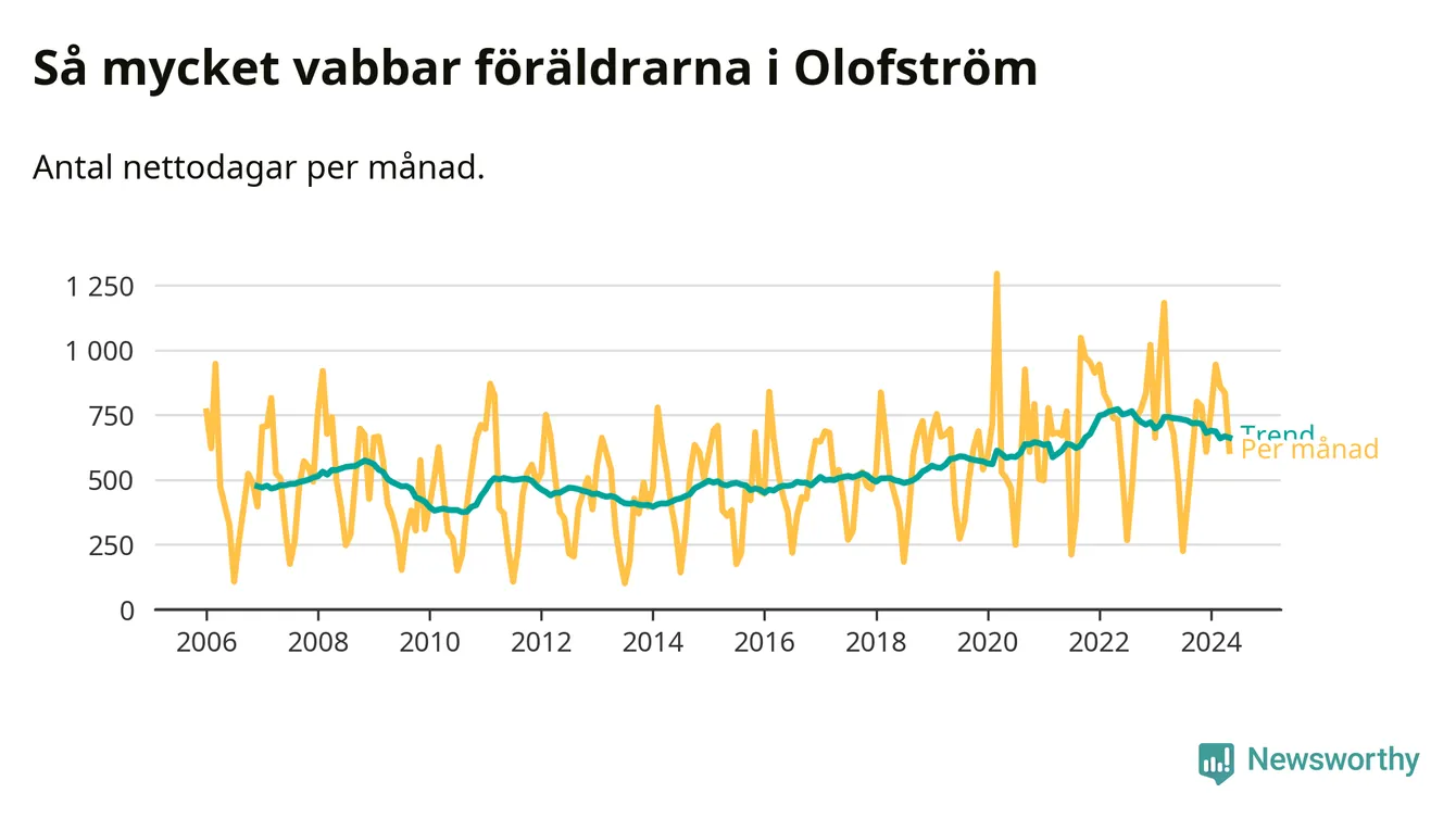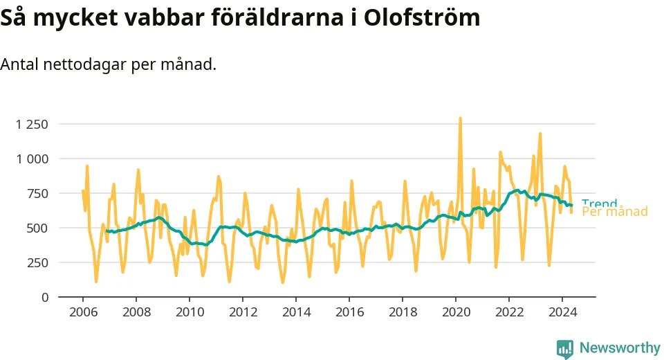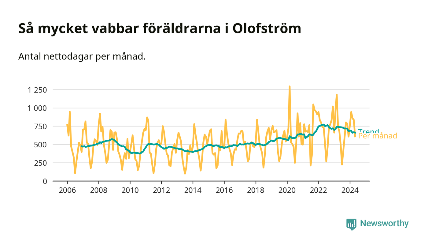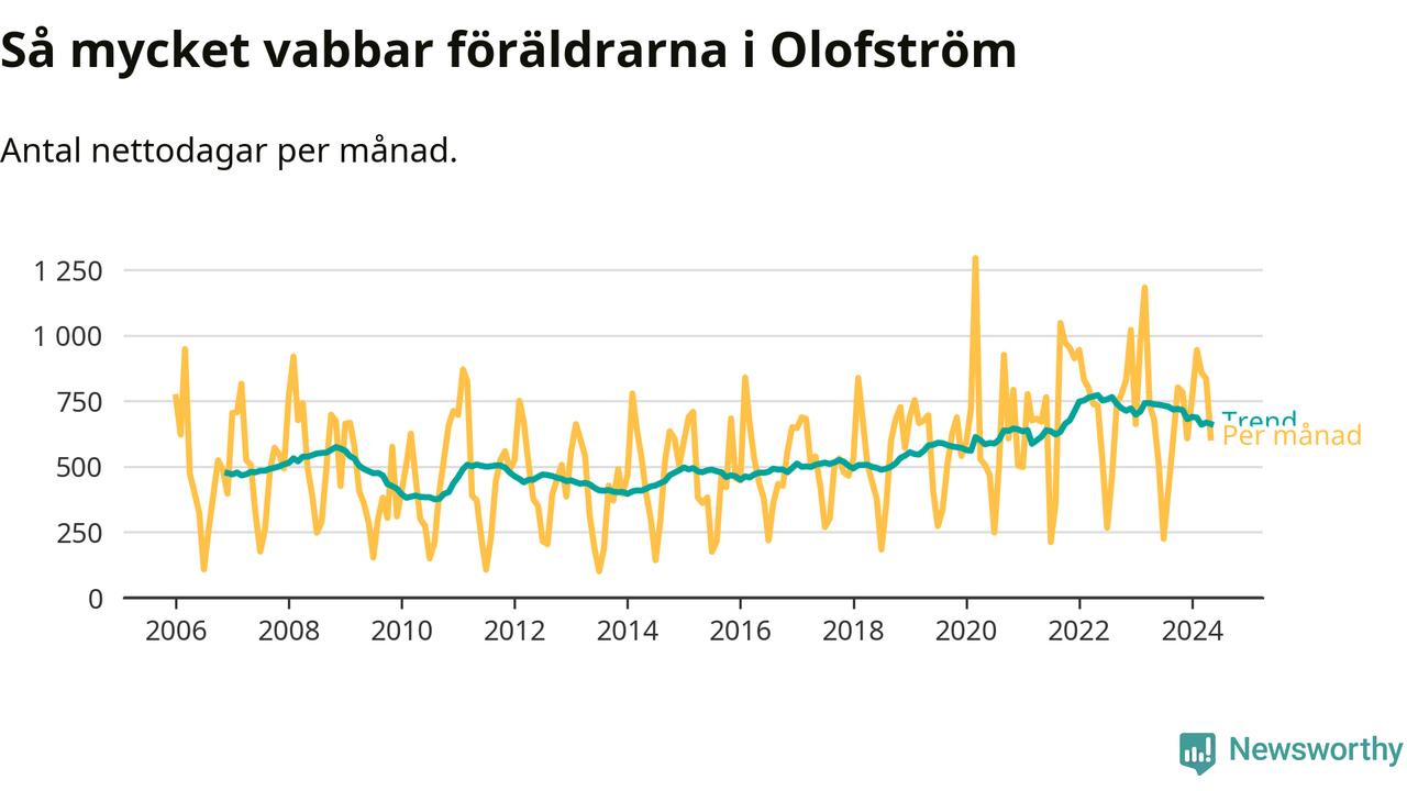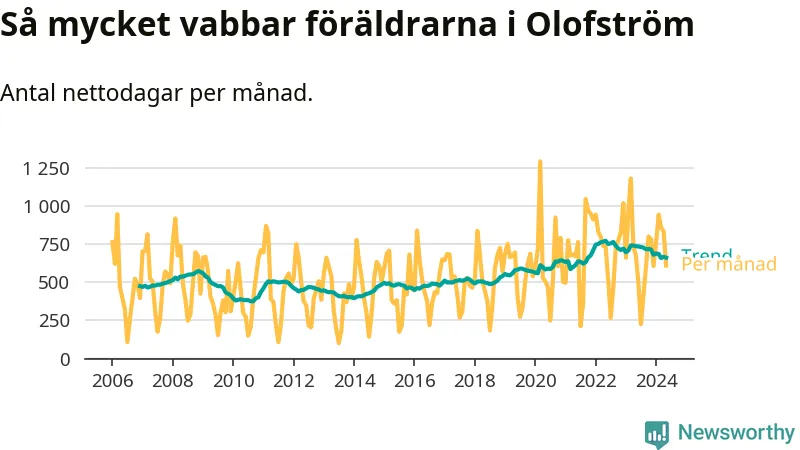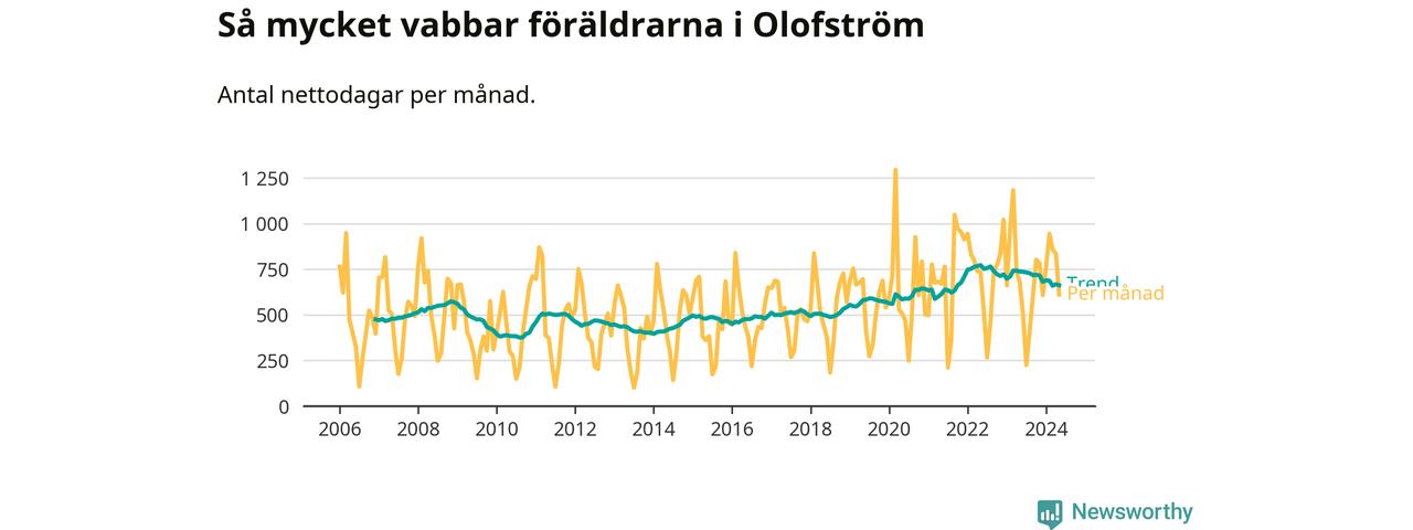 När coronapandemin drog in i mars 2020 peakade antalet vabbdagar både i Olofströms kommun och i riket som helhet. Under de senaste två åren har vabbuttaget börjat minska igen.