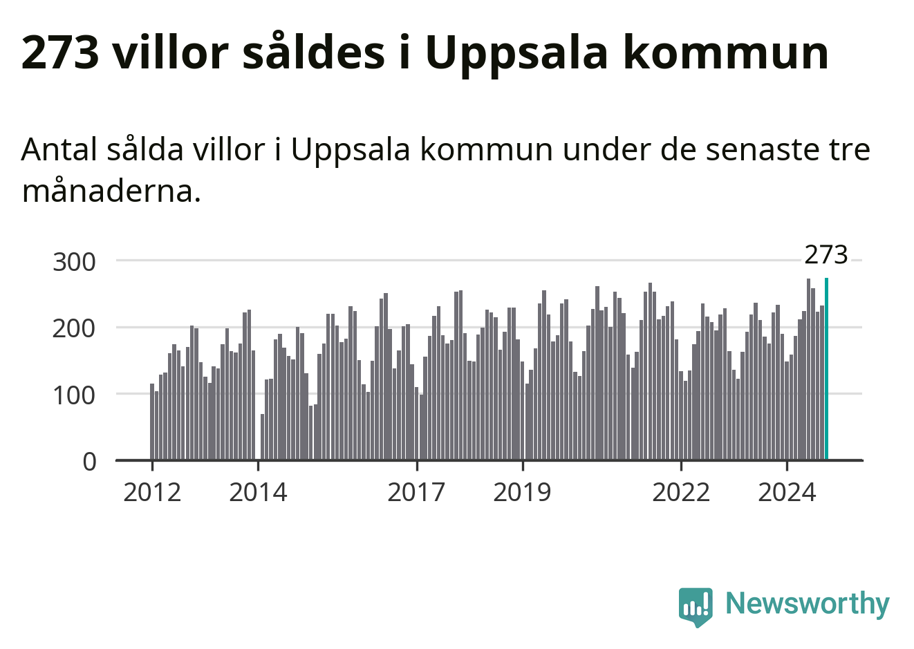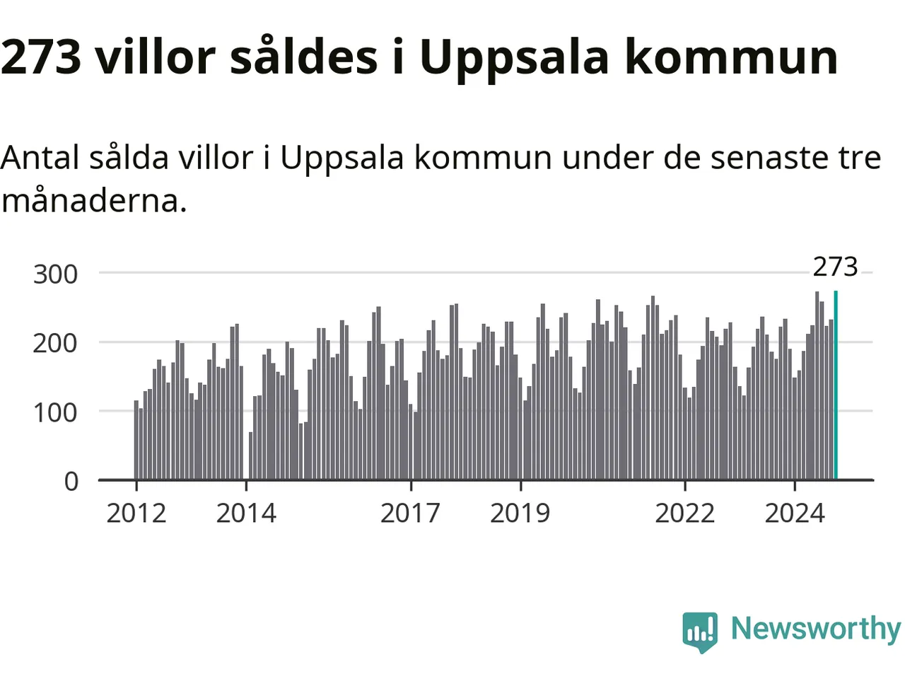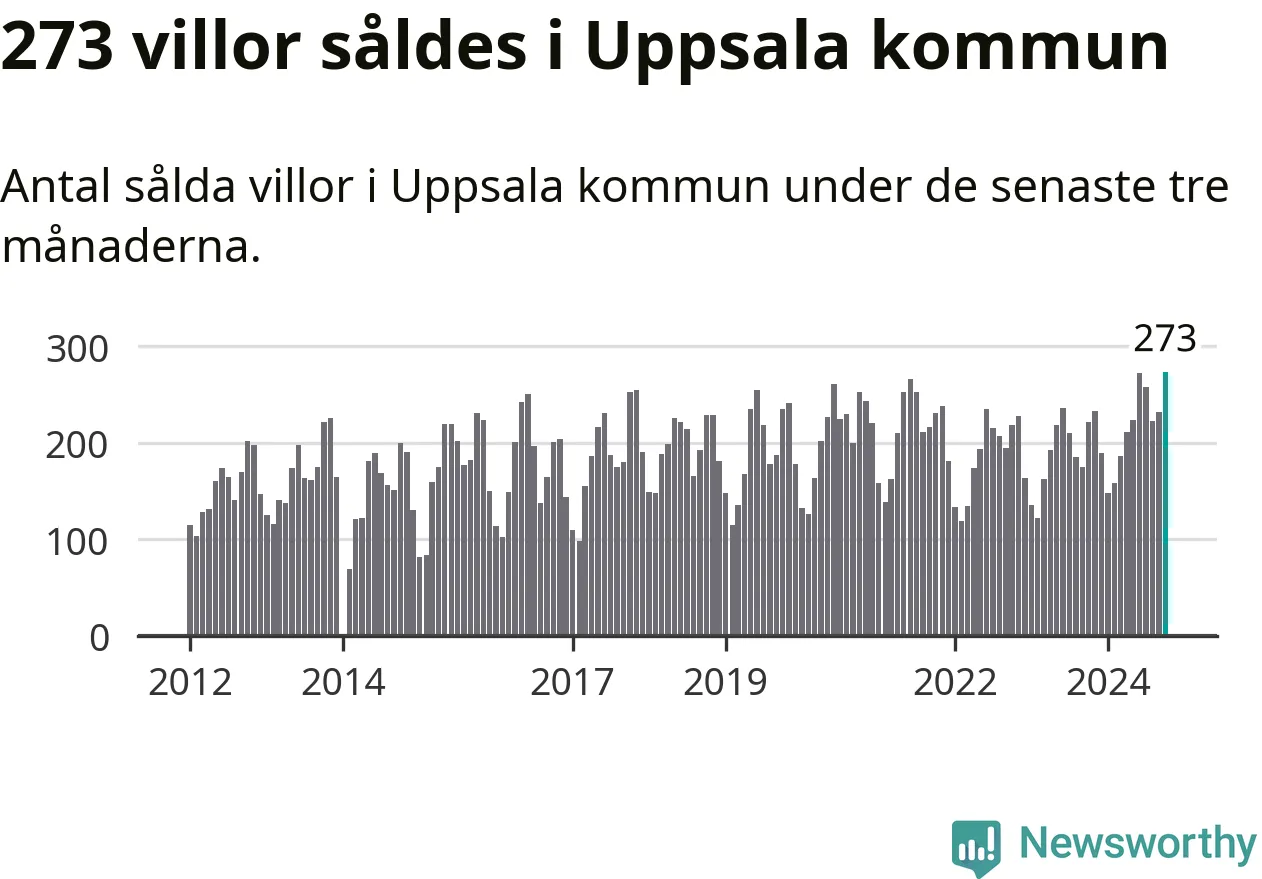 Mellan augusti och oktober såldes 273 villor i Uppsala kommun. Det är fler än någon tremånadersperiod sedan 2012.