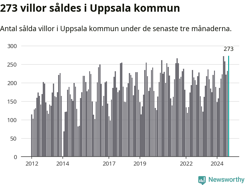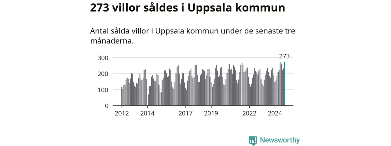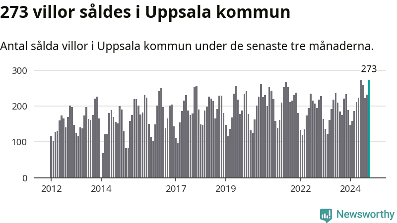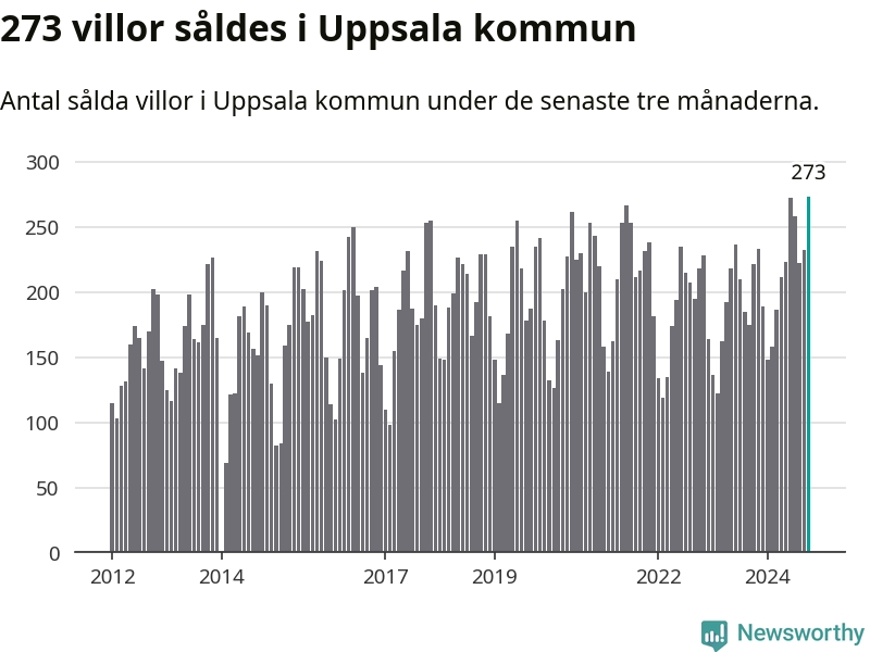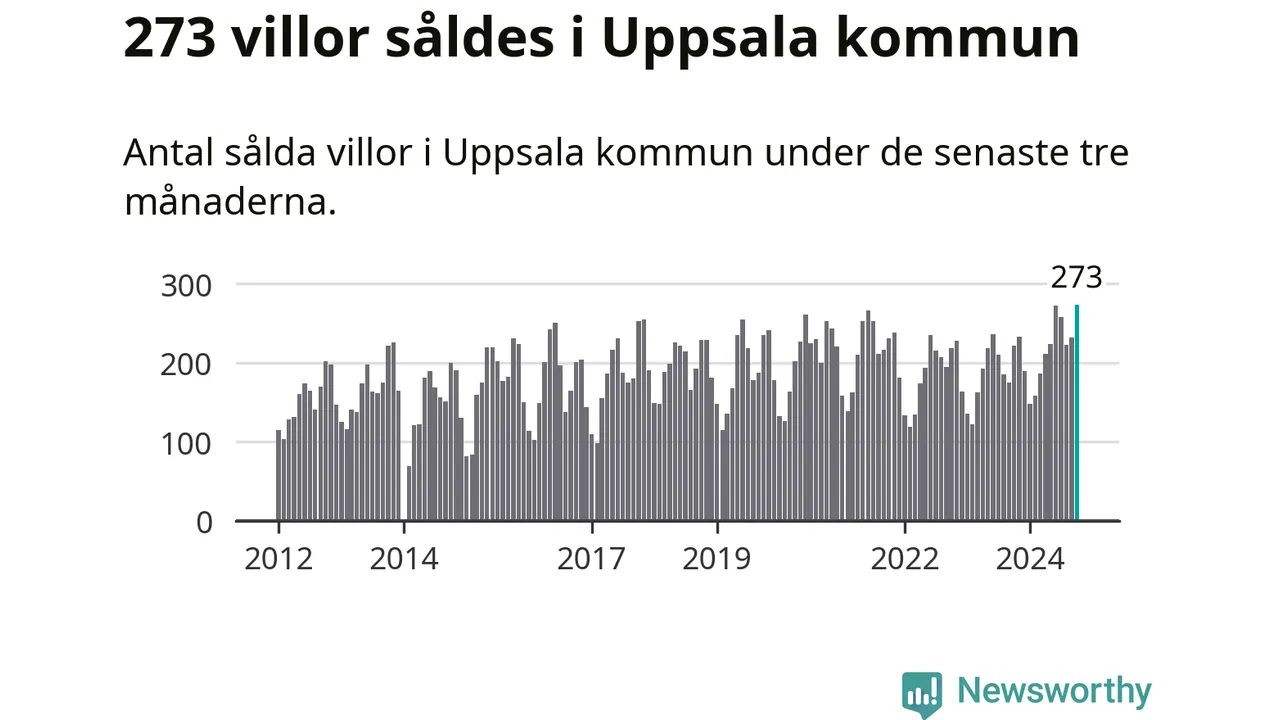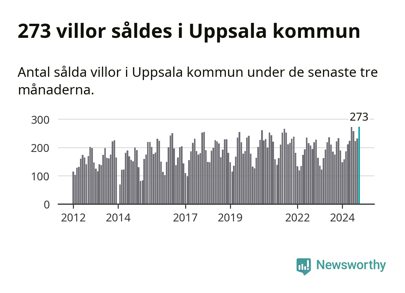 Mellan augusti och oktober såldes 273 villor i Uppsala kommun. Det är fler än någon tremånadersperiod sedan 2012.