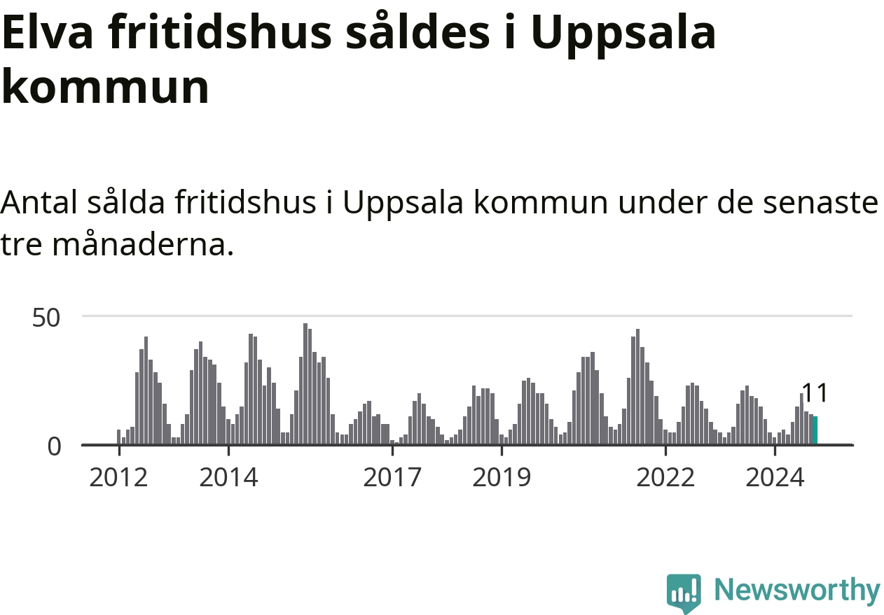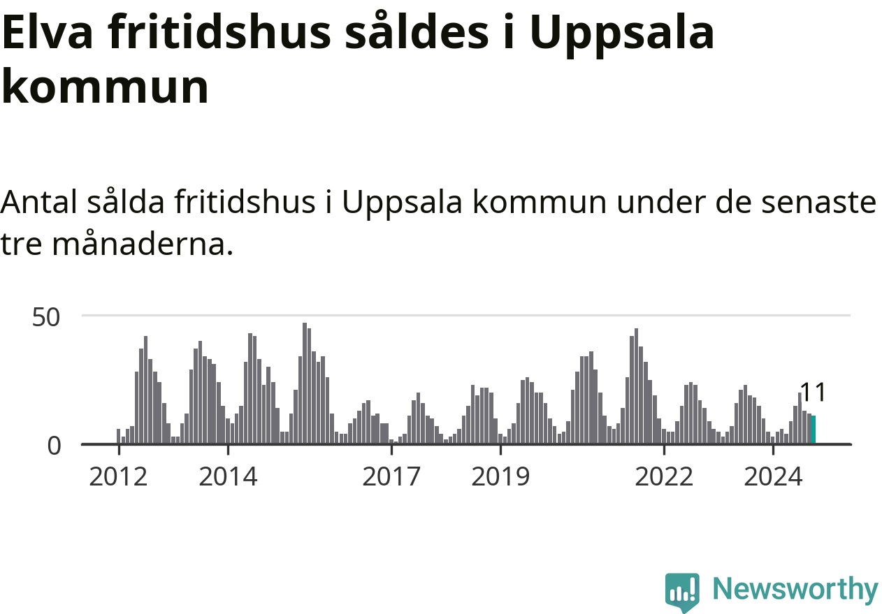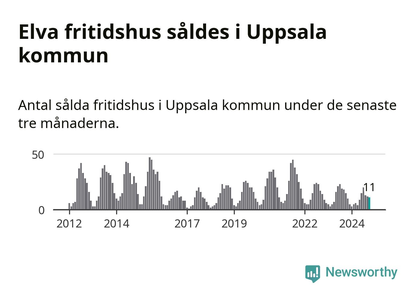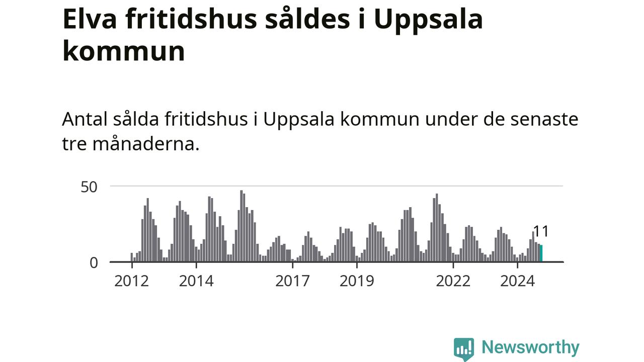 Sammanlagt såldes elva fritidshus i Uppsala kommun mellan augusti och oktober till ett genomsnittligt pris på 1,7 miljoner kronor. I fjol gjordes 15 affärer vid den här tiden på året.