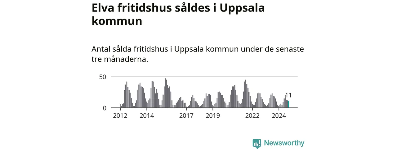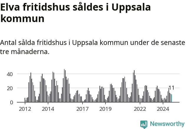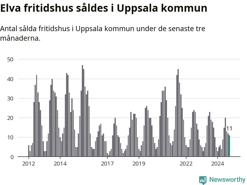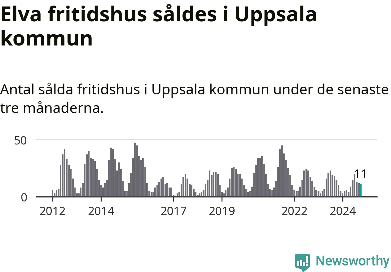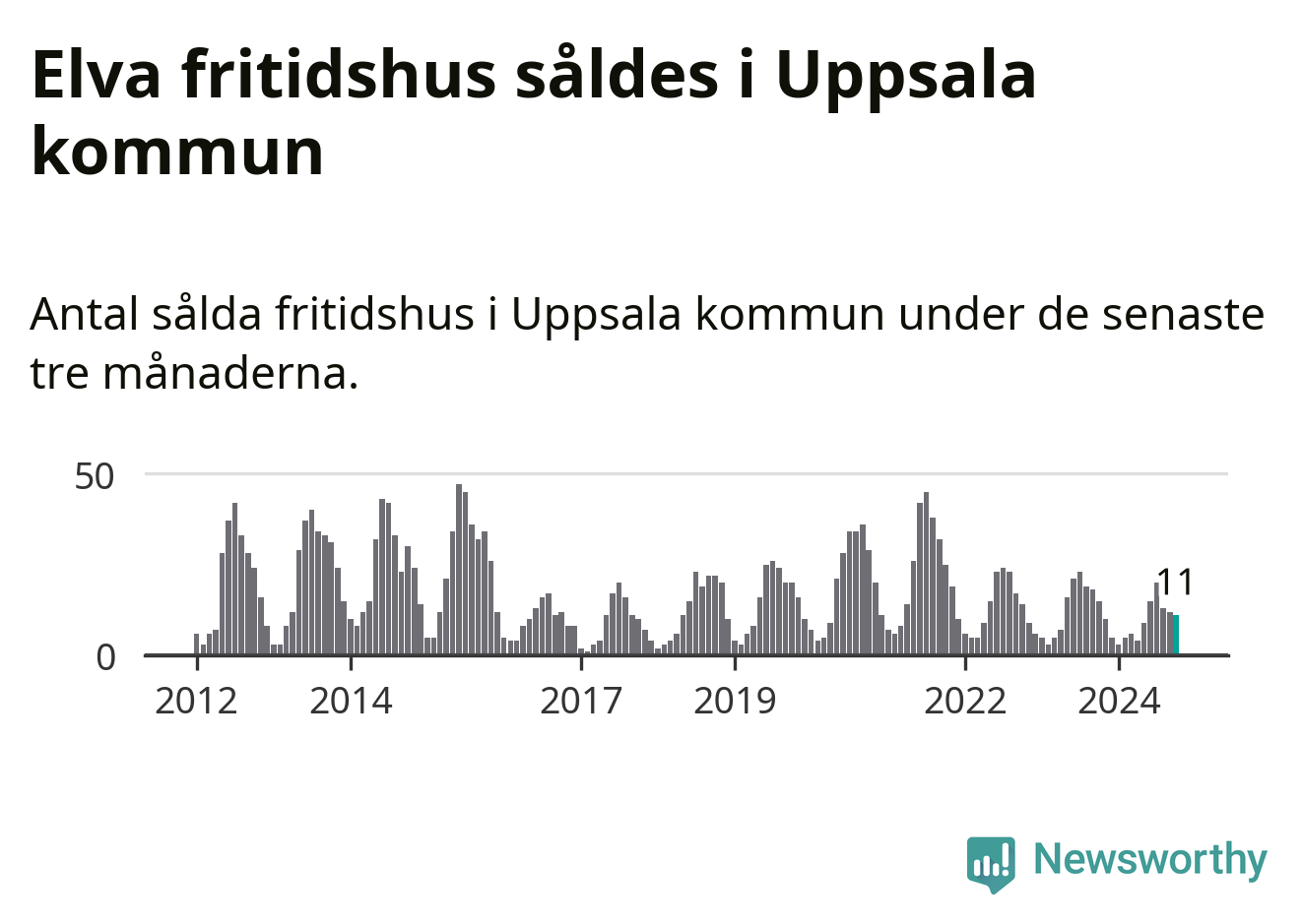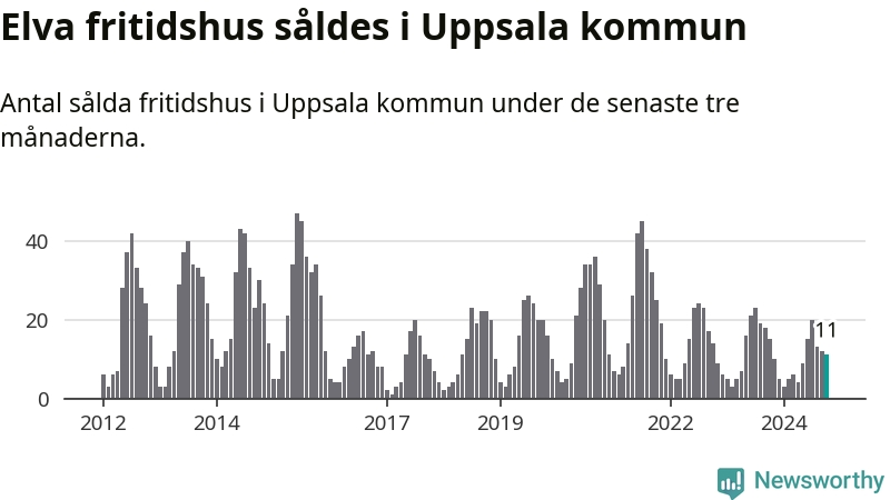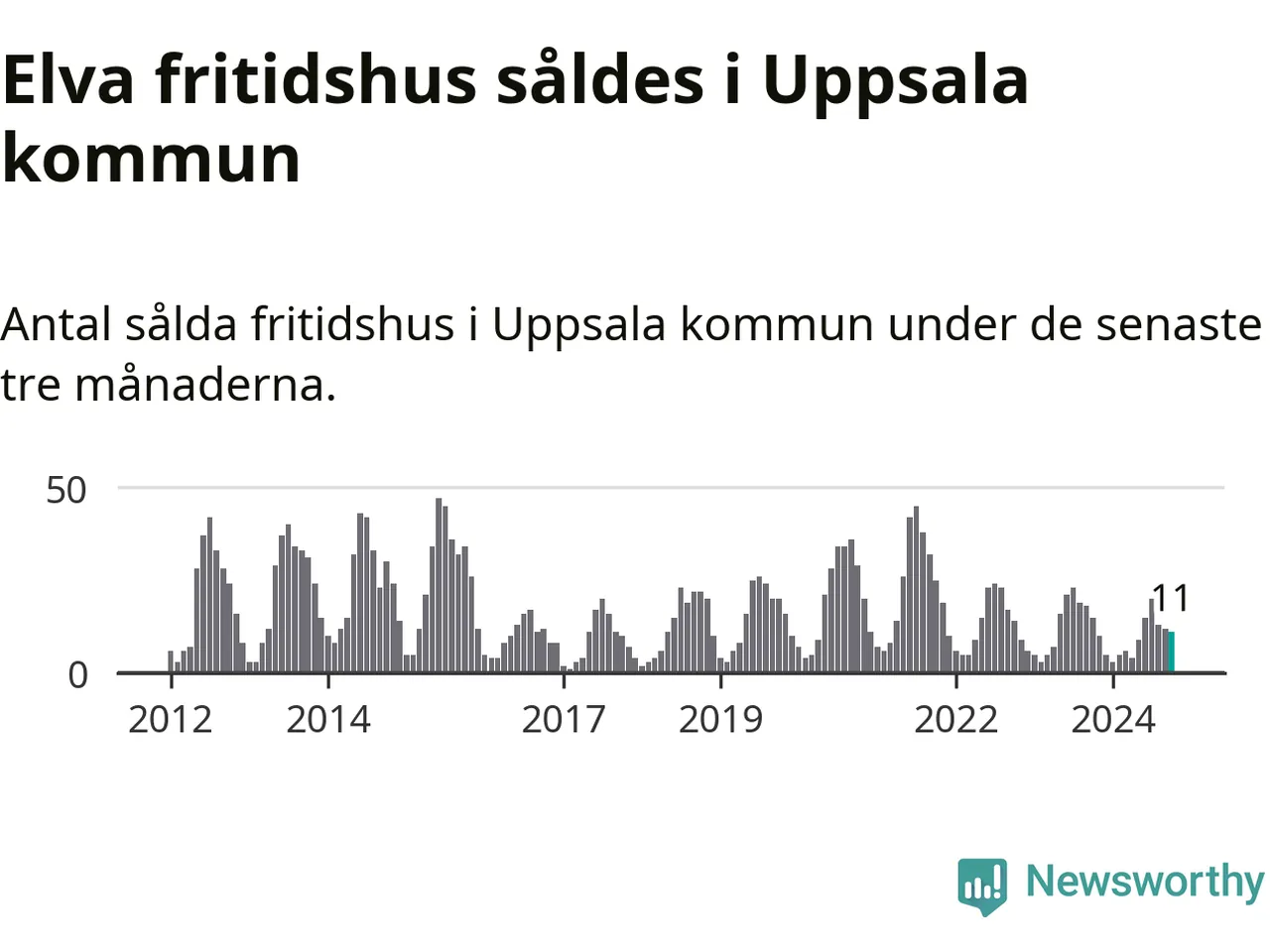 Sammanlagt såldes elva fritidshus i Uppsala kommun mellan augusti och oktober till ett genomsnittligt pris på 1,7 miljoner kronor. I fjol gjordes 15 affärer vid den här tiden på året.