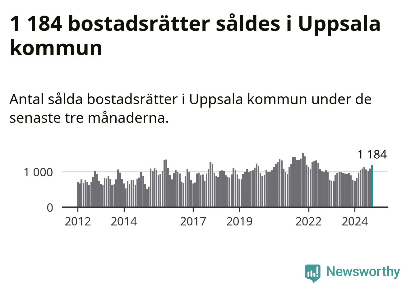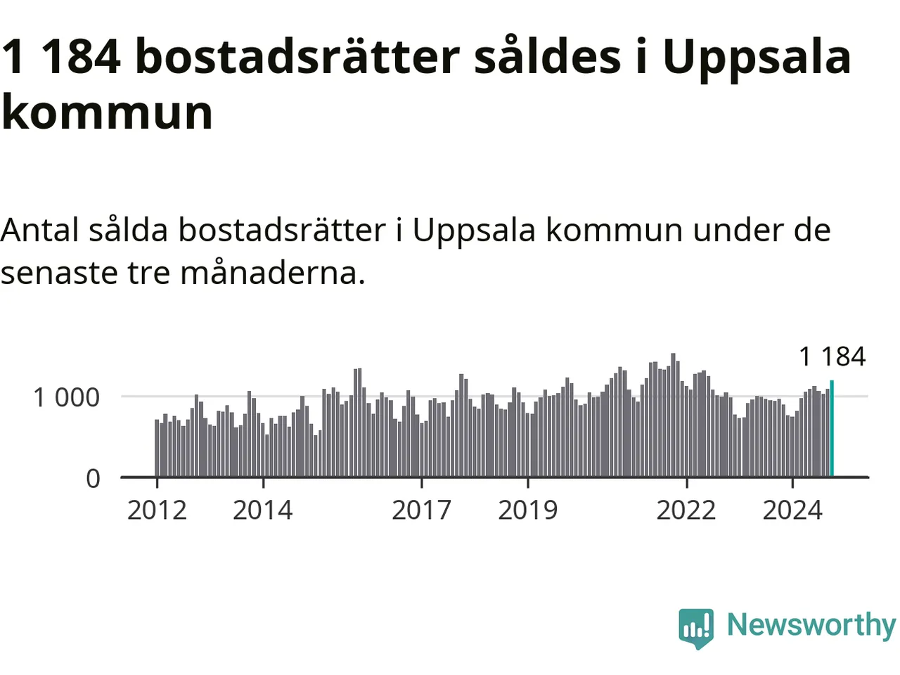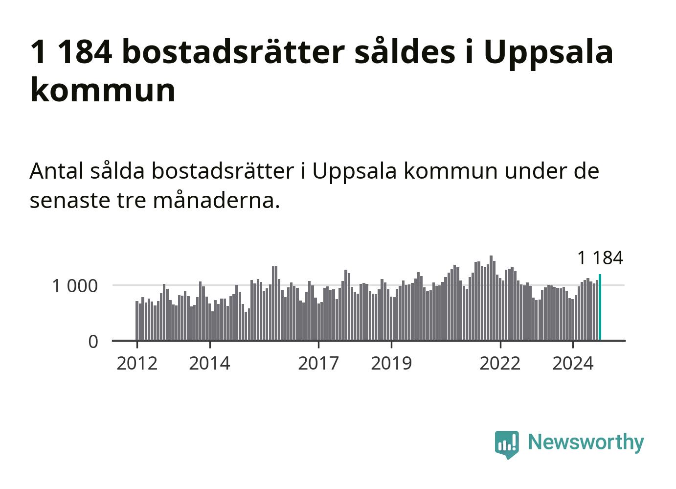 Sammanlagt såldes 1 184 bostadsrätter i Uppsala kommun mellan augusti och oktober till ett genomsnittligt pris på 2,6 miljoner kronor. I fjol gjordes 960 affärer vid den här tiden på året.