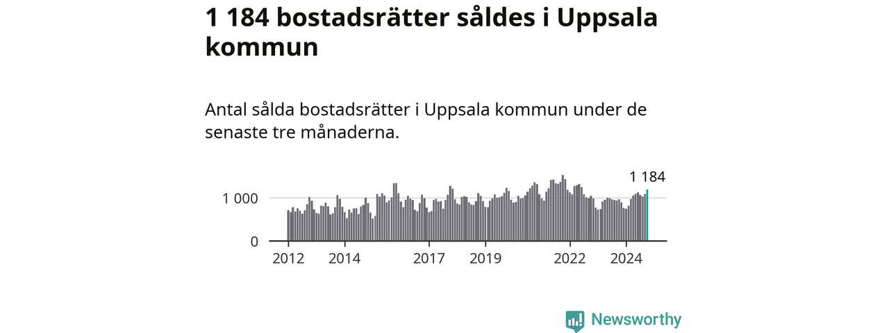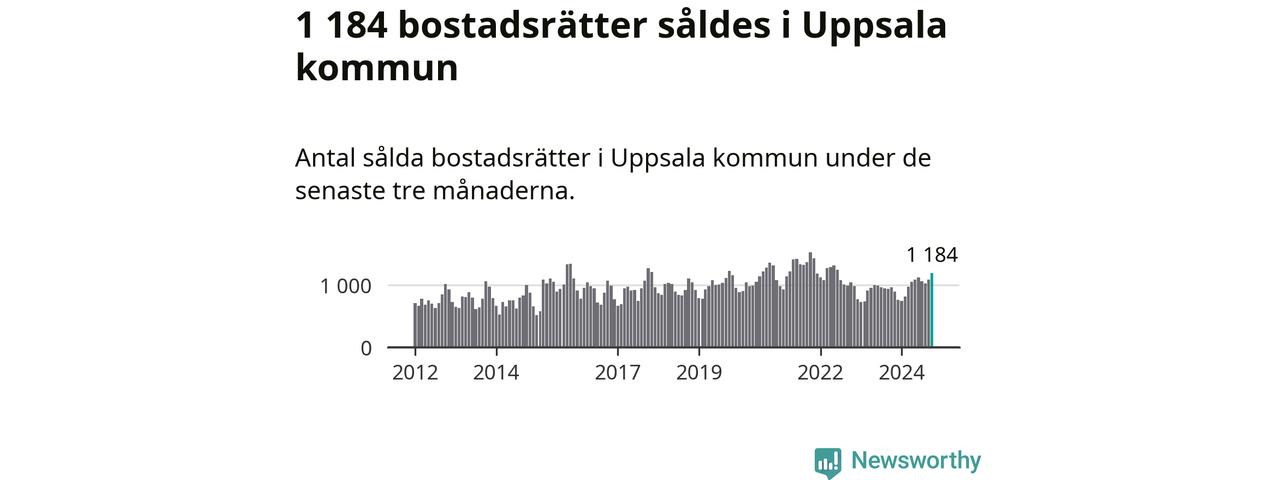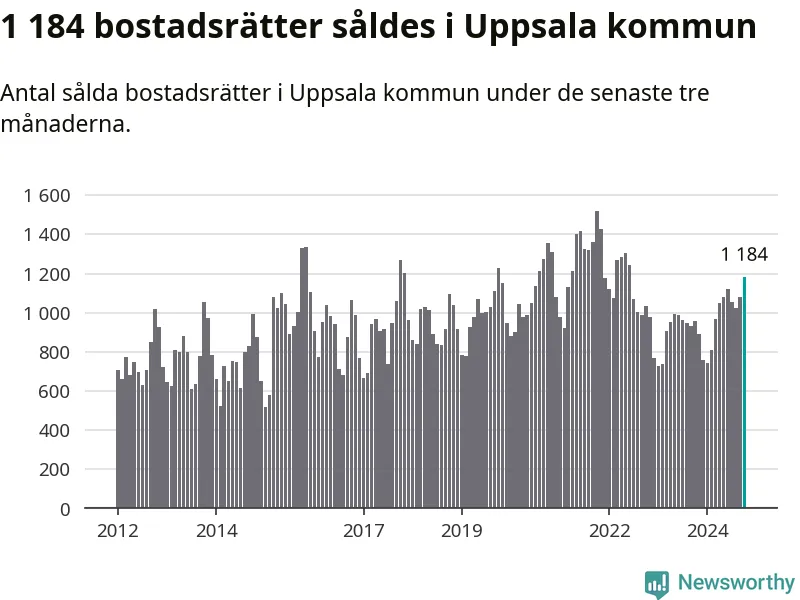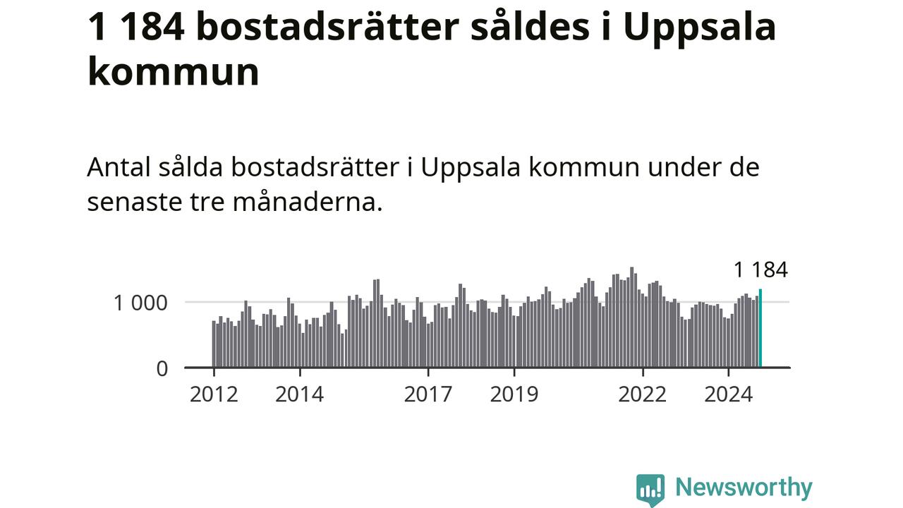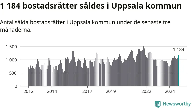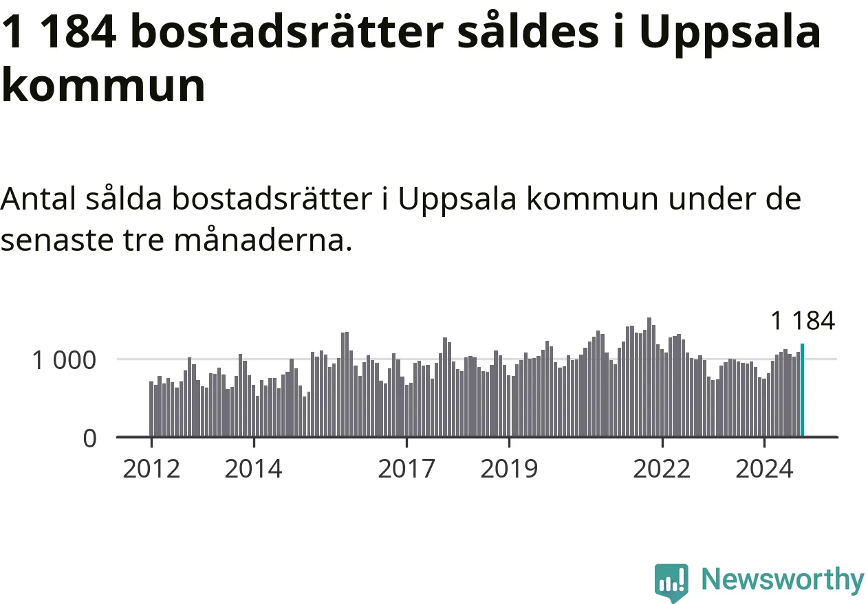 Sammanlagt såldes 1 184 bostadsrätter i Uppsala kommun mellan augusti och oktober till ett genomsnittligt pris på 2,6 miljoner kronor. I fjol gjordes 960 affärer vid den här tiden på året.