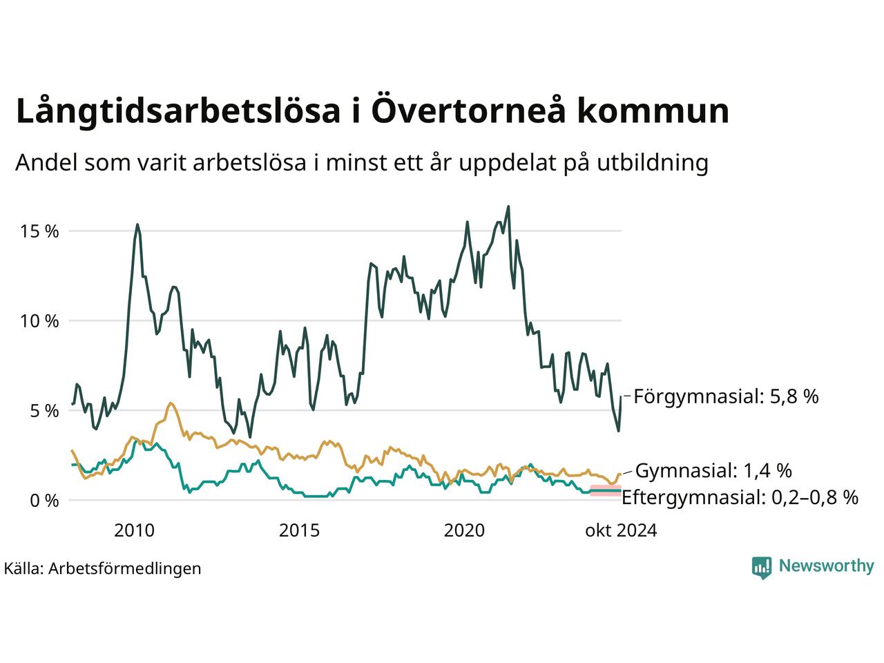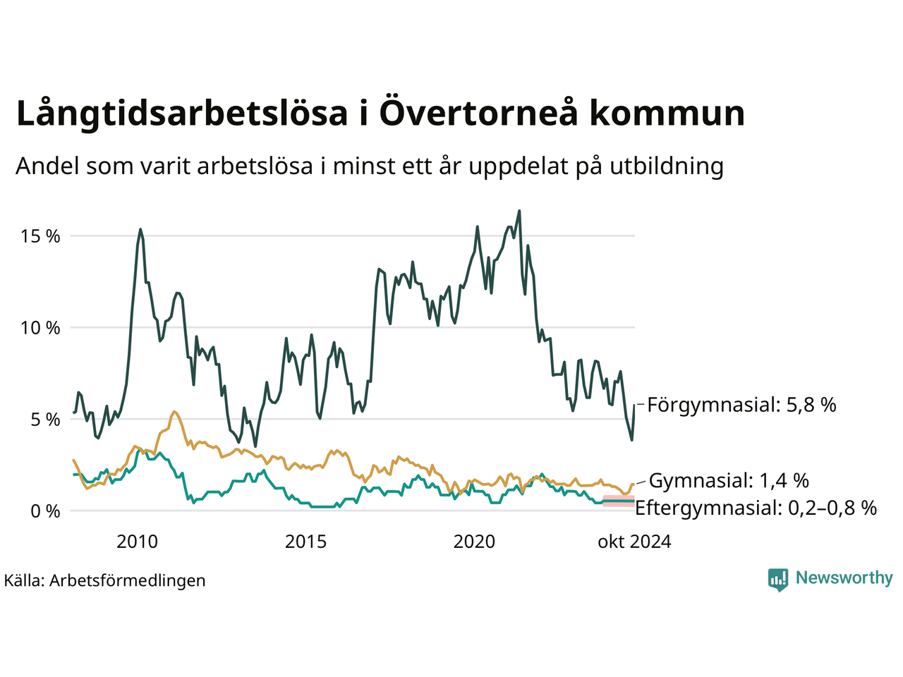 | Andel arbetslösa i minst två år | 0,7 % | 0,8 % | 1,5 % |