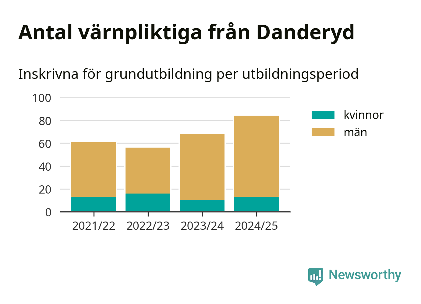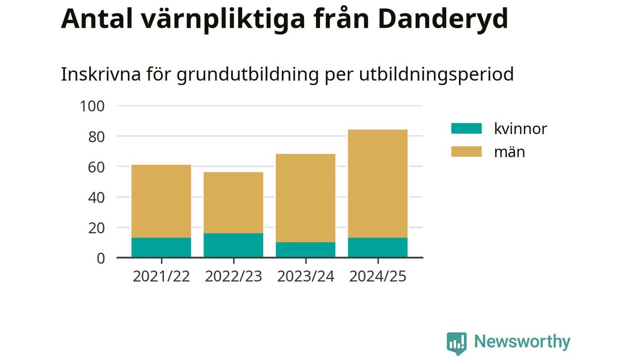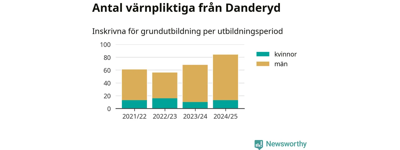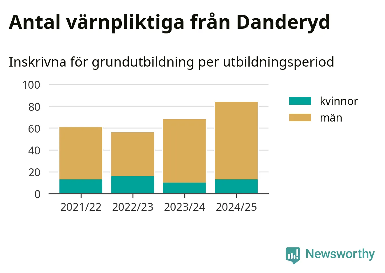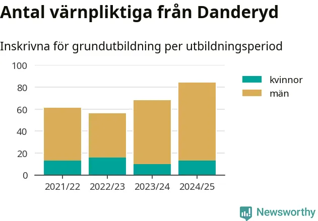 Antalet värnpliktiga från Danderyd ökar stadigt, visar siffror från Plikt- och prövningsverket. Under det här värnpliktsåret, med utbildningsstart från juni 2024 till början av 2025, är 84 värnpliktiga inskrivna för att påbörja sin grundutbildning. Det är den högsta siffran åtminstone sedan 2021/22, vilket är så långt bakåt vi har siffror på kommunnivå. Den allmänna värnplikten återinfördes 2018.
