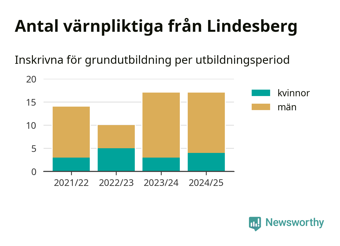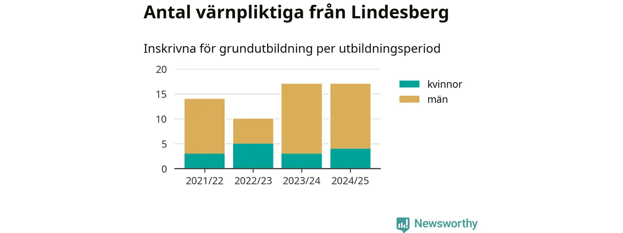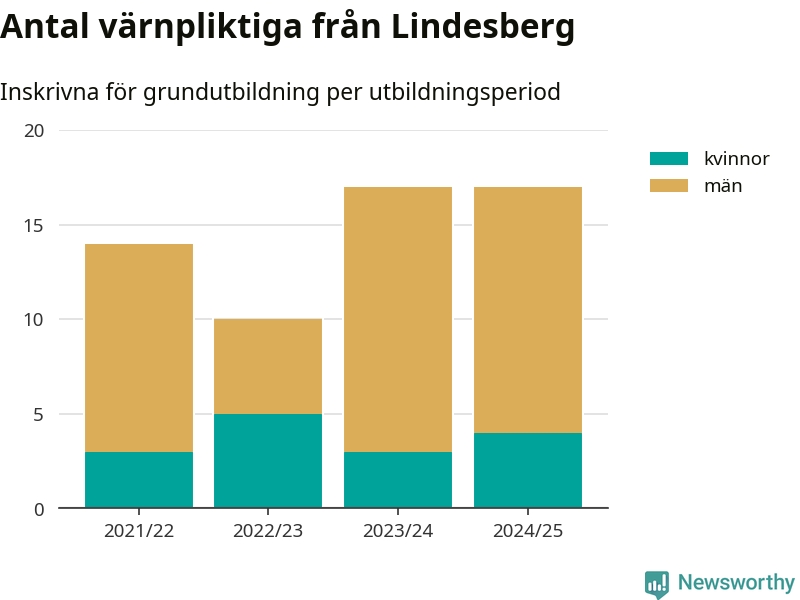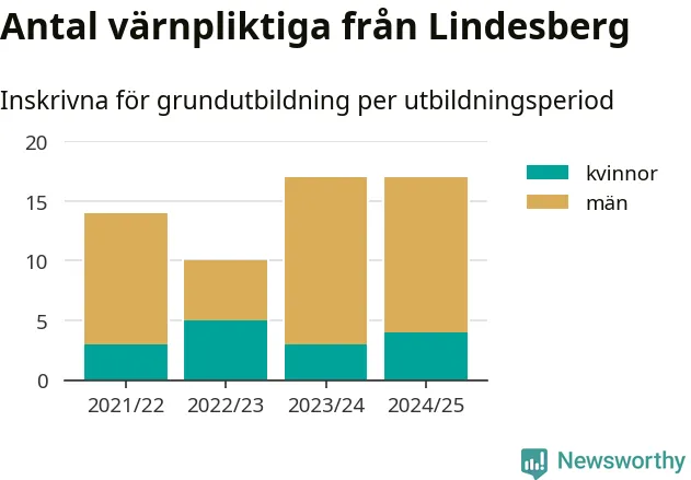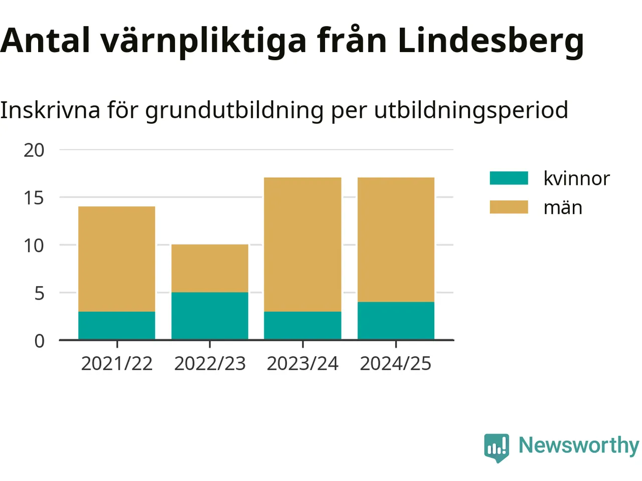 Antalet värnpliktiga från Lindesberg ökar stadigt, visar siffror från Plikt- och prövningsverket. Under det här värnpliktsåret, med utbildningsstart från juni 2024 till början av 2025, är 17 värnpliktiga inskrivna för att påbörja sin grundutbildning. Det är lika många som 2023/24. Den allmänna värnplikten återinfördes 2018.