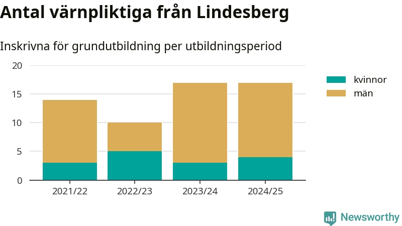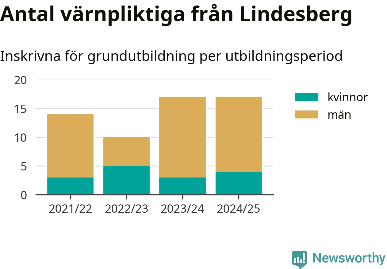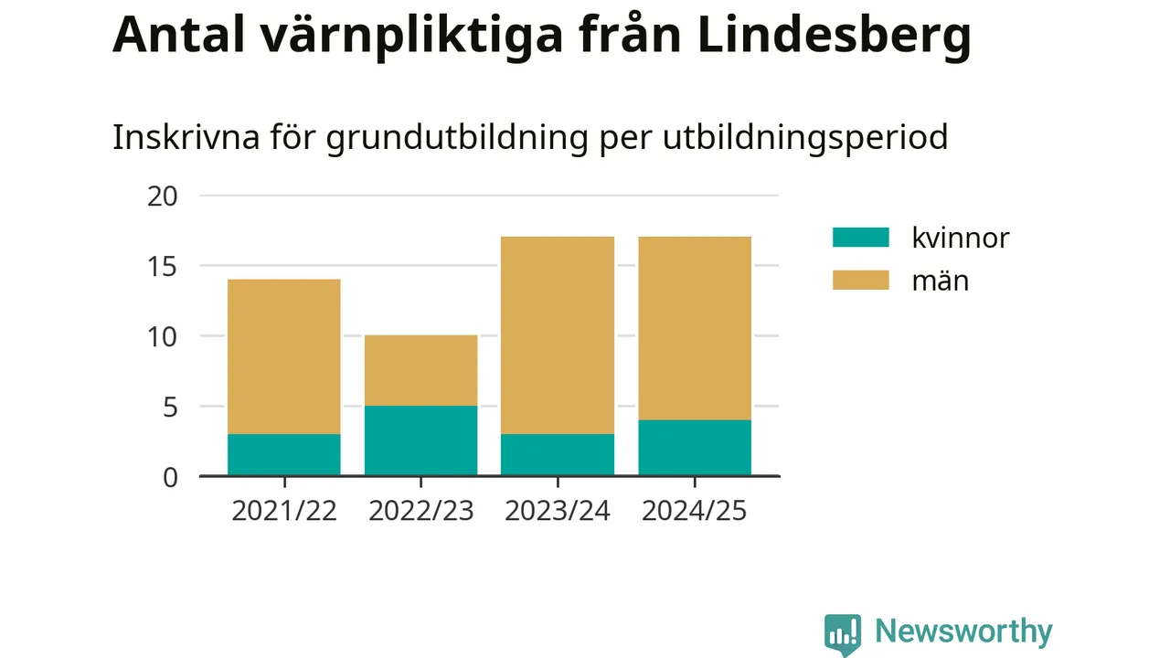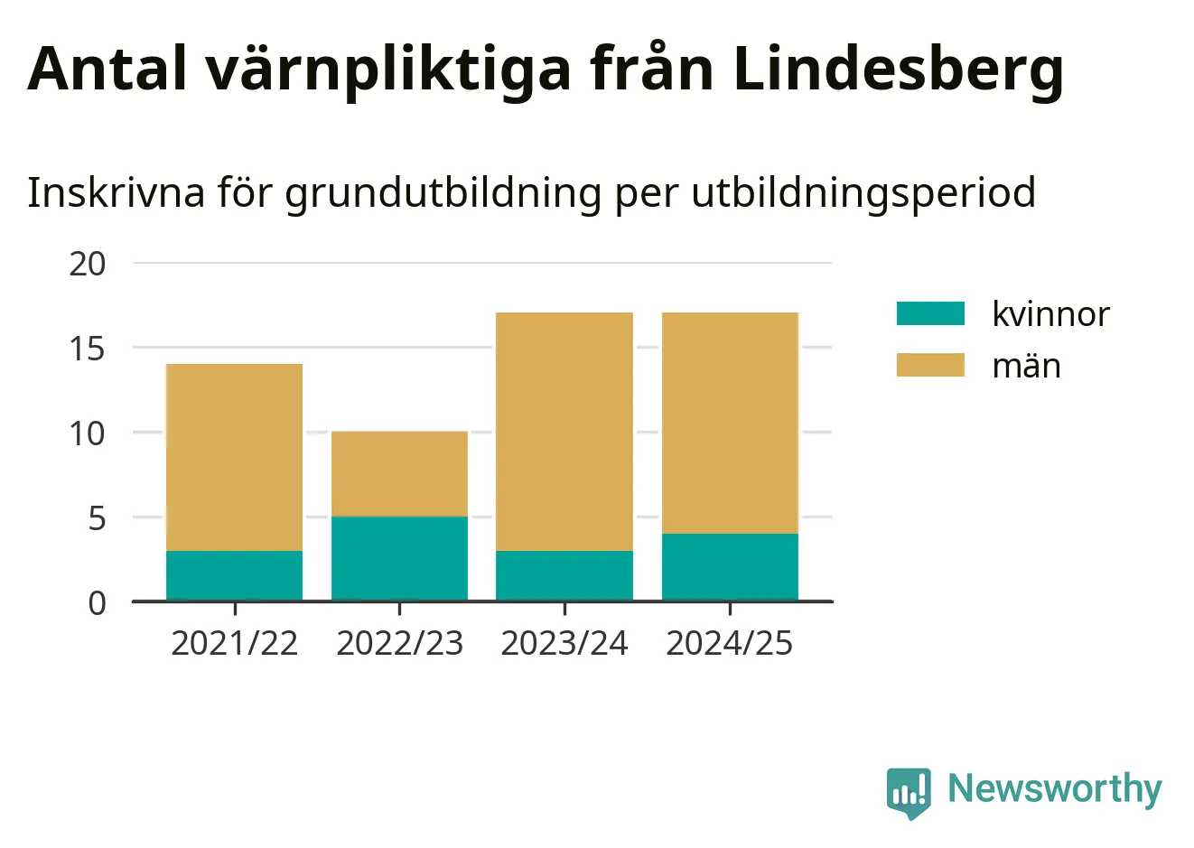 Antalet värnpliktiga från Lindesberg ökar stadigt, visar siffror från Plikt- och prövningsverket. Under det här värnpliktsåret, med utbildningsstart från juni 2024 till början av 2025, är 17 värnpliktiga inskrivna för att påbörja sin grundutbildning. Det är lika många som 2023/24. Den allmänna värnplikten återinfördes 2018.