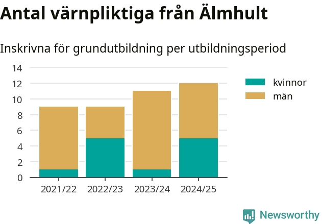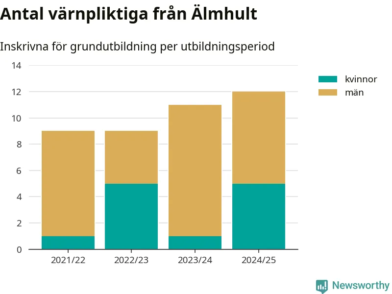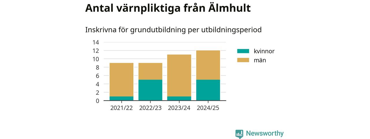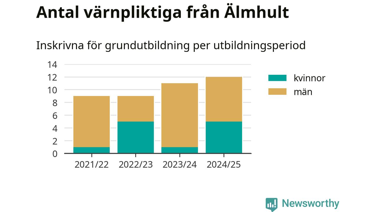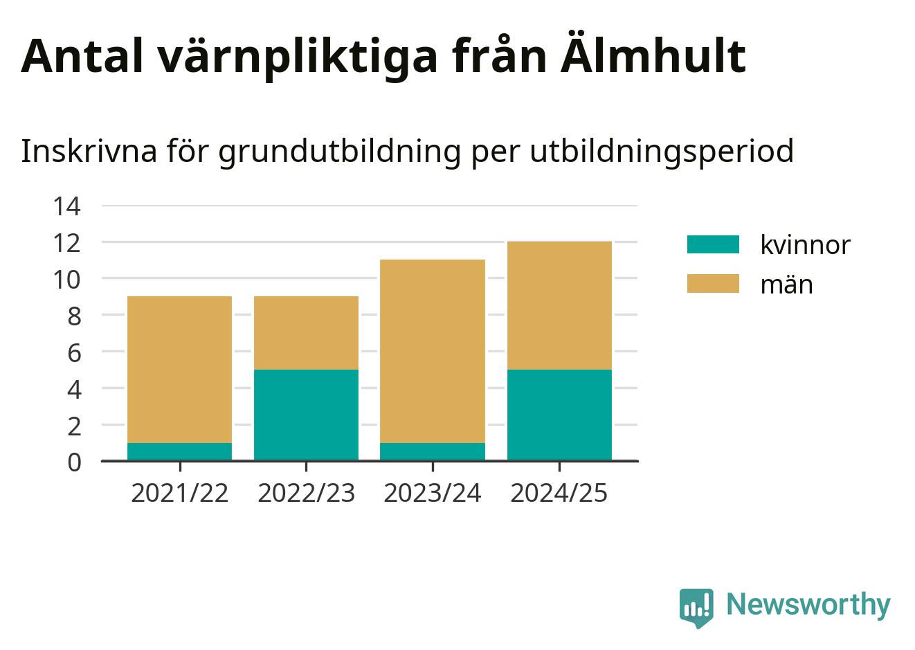 Antalet värnpliktiga från Älmhult ökar stadigt, visar siffror från Plikt- och prövningsverket. Under det här värnpliktsåret, med utbildningsstart från juni 2024 till början av 2025, är tolv värnpliktiga inskrivna för att påbörja sin grundutbildning. Det är den högsta siffran åtminstone sedan 2021/22, vilket är så långt bakåt vi har siffror på kommunnivå. Den allmänna värnplikten återinfördes 2018.