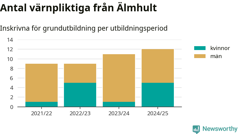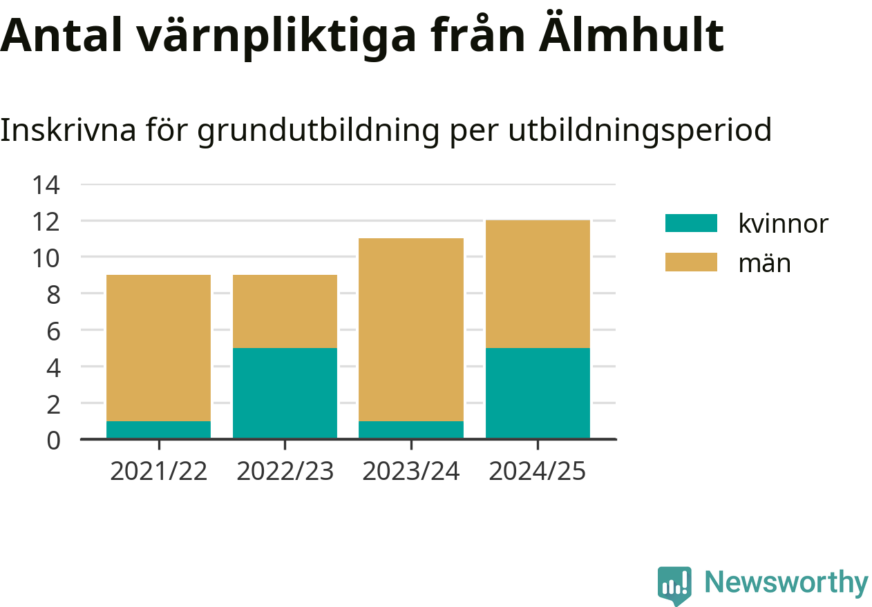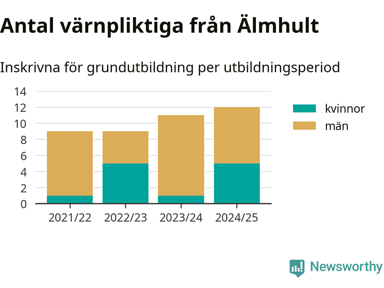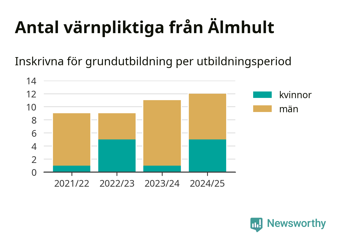 Antalet värnpliktiga från Älmhult ökar stadigt, visar siffror från Plikt- och prövningsverket. Under det här värnpliktsåret, med utbildningsstart från juni 2024 till början av 2025, är tolv värnpliktiga inskrivna för att påbörja sin grundutbildning. Det är den högsta siffran åtminstone sedan 2021/22, vilket är så långt bakåt vi har siffror på kommunnivå. Den allmänna värnplikten återinfördes 2018.