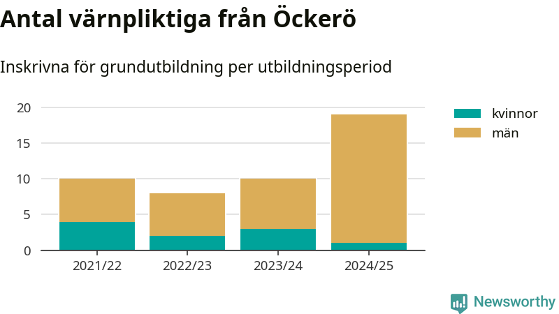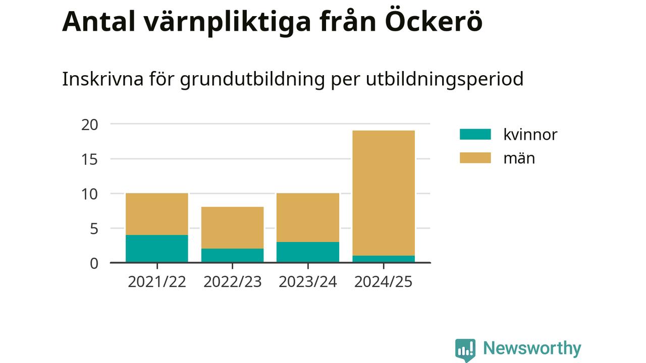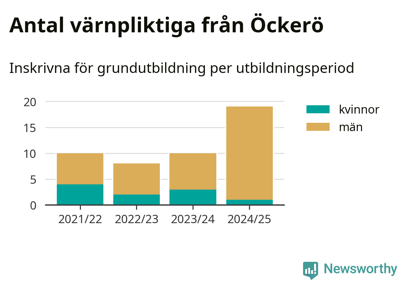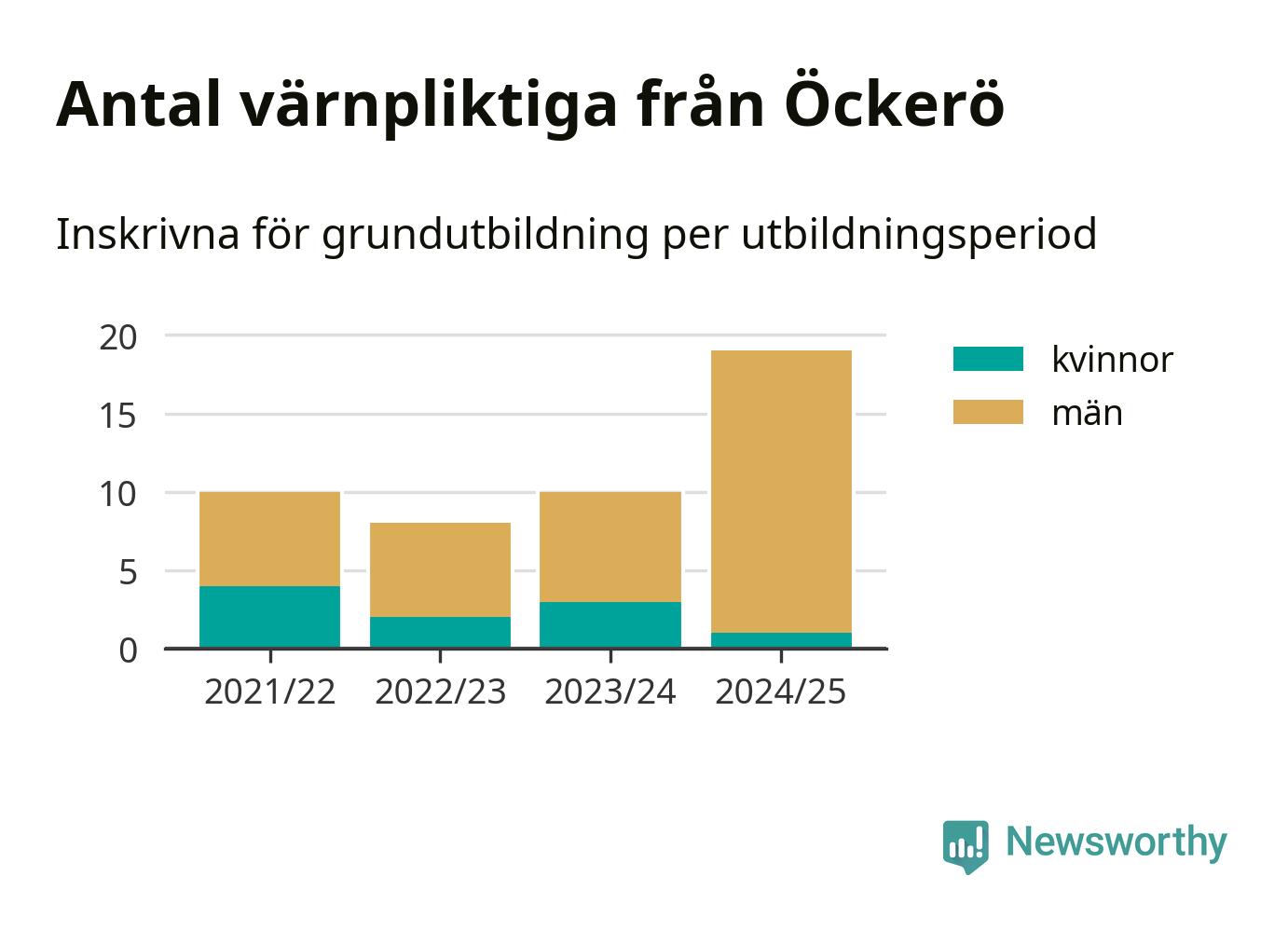 Antalet värnpliktiga från Öckerö ökar stadigt, visar siffror från Plikt- och prövningsverket. Under det här värnpliktsåret, med utbildningsstart från juni 2024 till början av 2025, är 19 värnpliktiga inskrivna för att påbörja sin grundutbildning. Det är den högsta siffran åtminstone sedan 2021/22, vilket är så långt bakåt vi har siffror på kommunnivå. Den allmänna värnplikten återinfördes 2018.