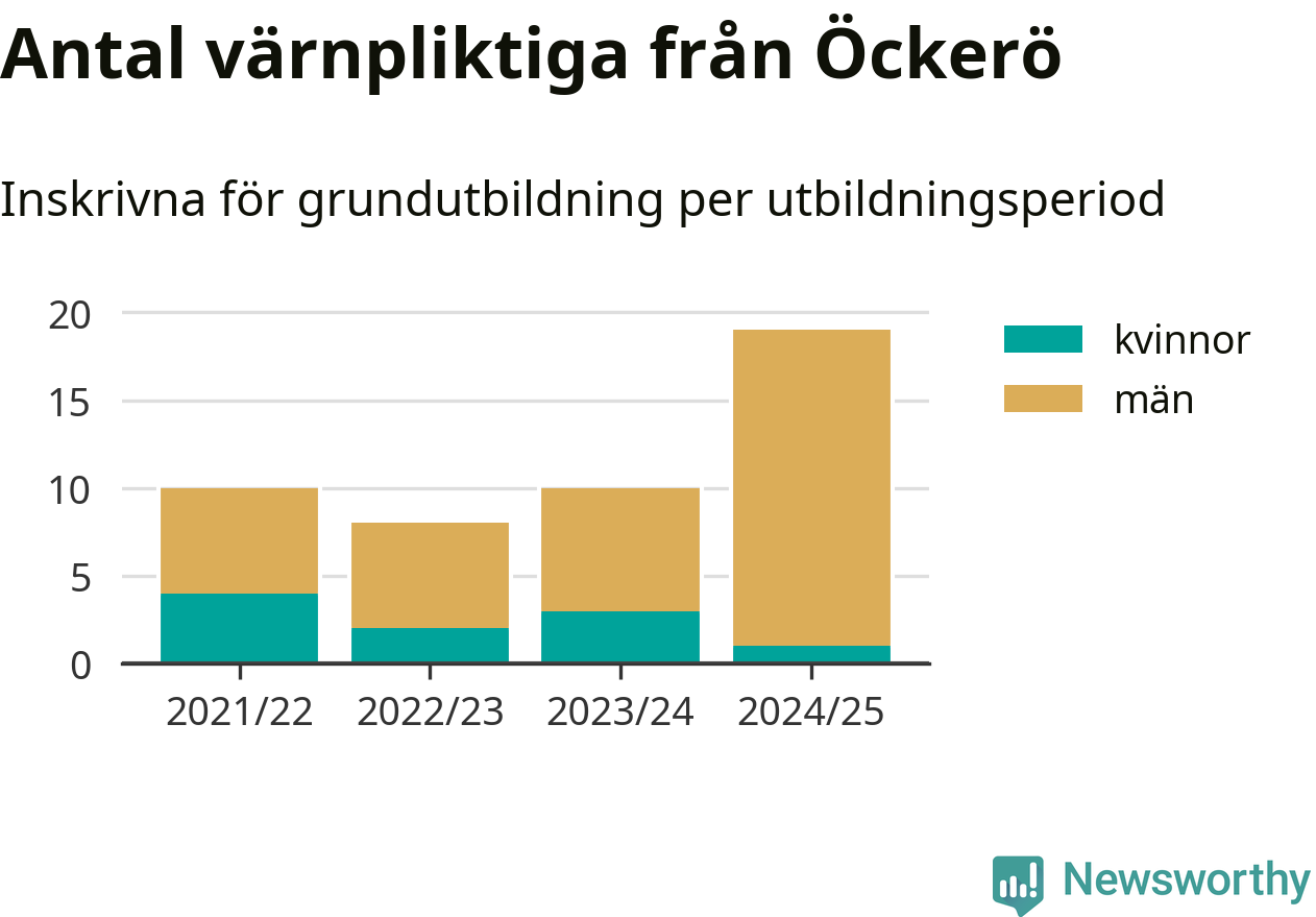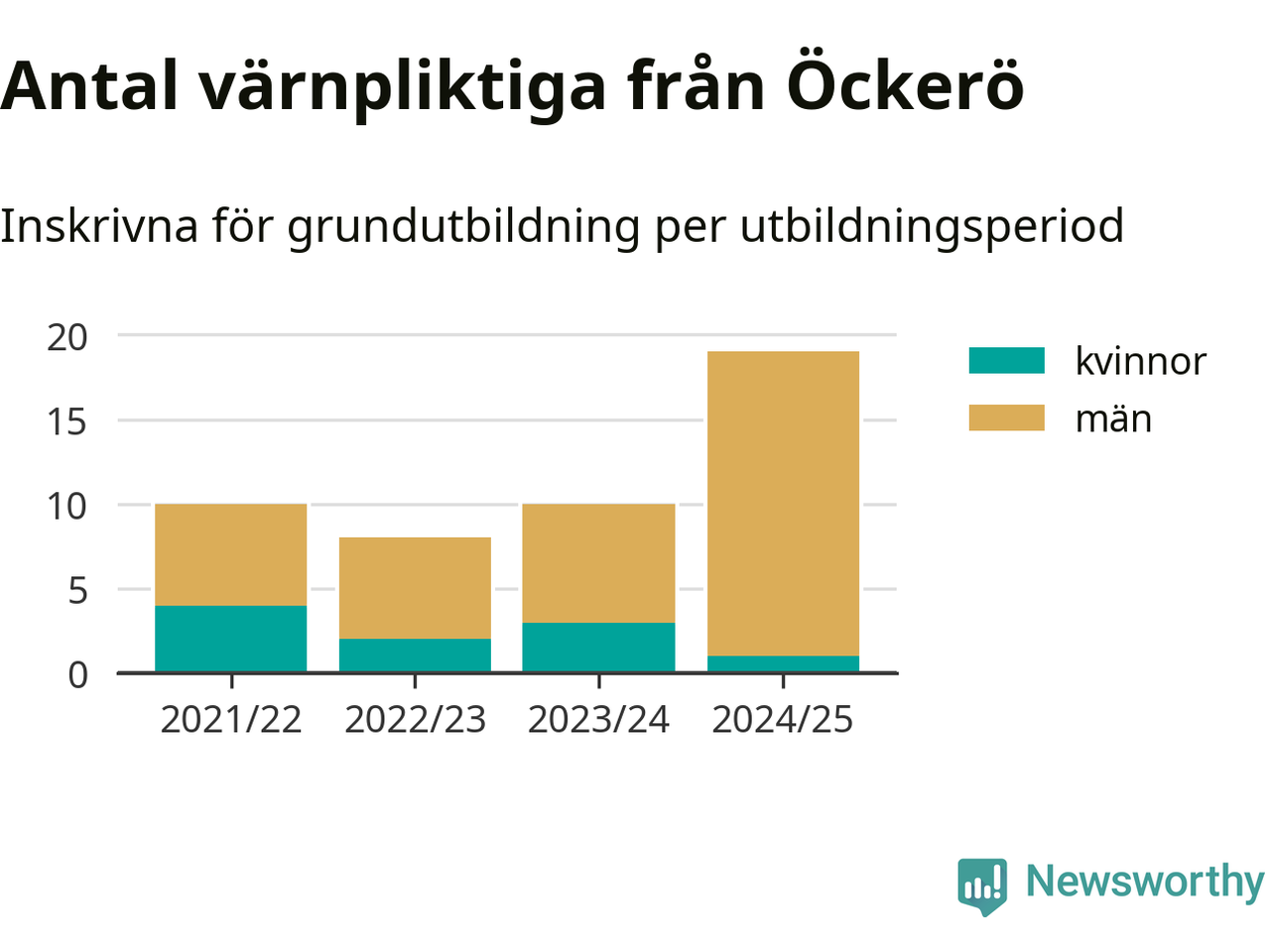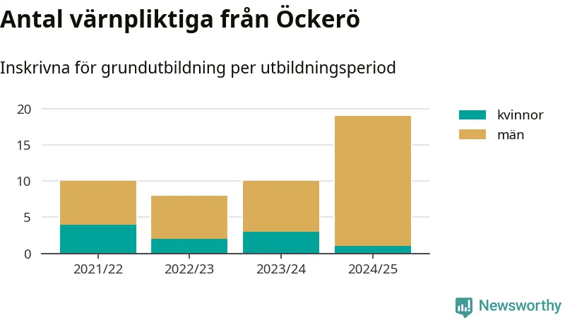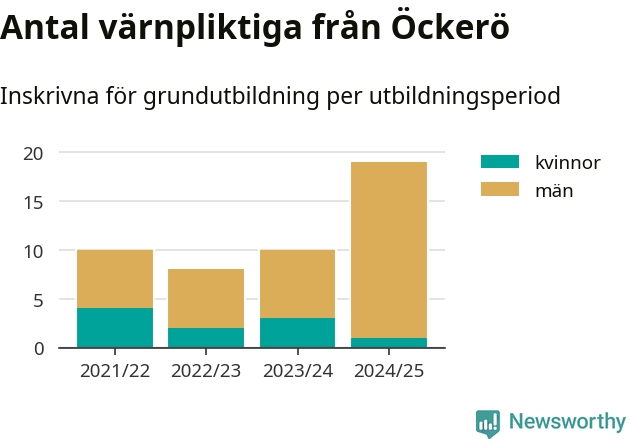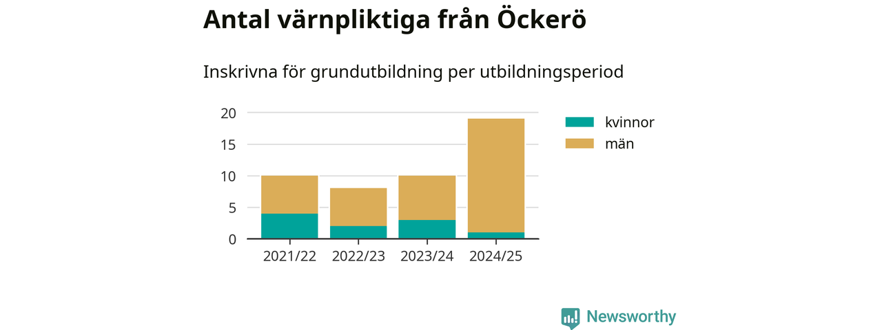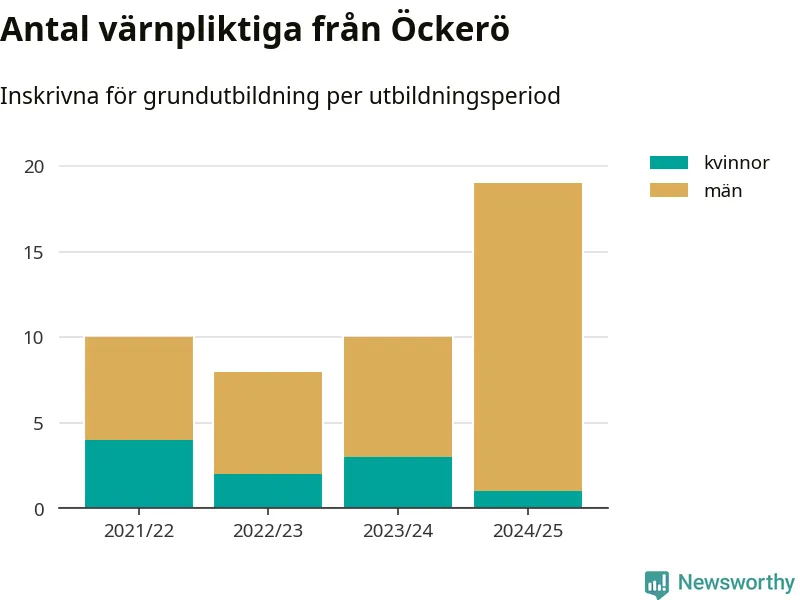 Antalet värnpliktiga från Öckerö ökar stadigt, visar siffror från Plikt- och prövningsverket. Under det här värnpliktsåret, med utbildningsstart från juni 2024 till början av 2025, är 19 värnpliktiga inskrivna för att påbörja sin grundutbildning. Det är den högsta siffran åtminstone sedan 2021/22, vilket är så långt bakåt vi har siffror på kommunnivå. Den allmänna värnplikten återinfördes 2018.