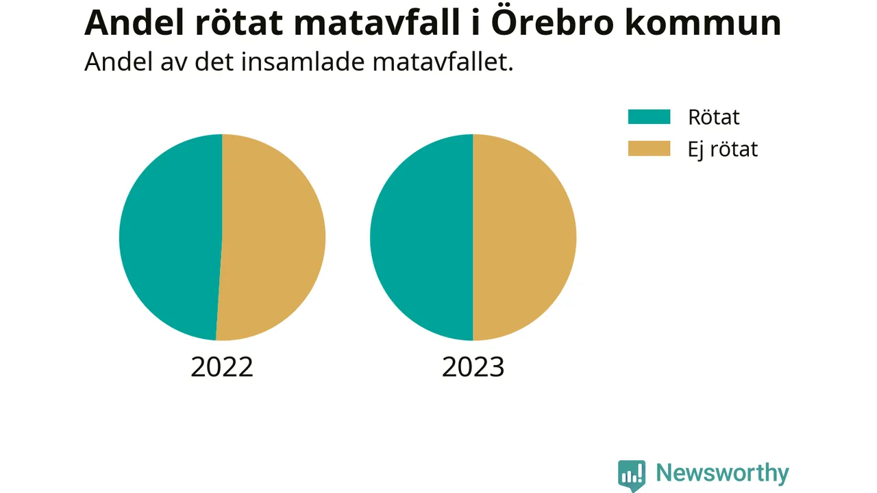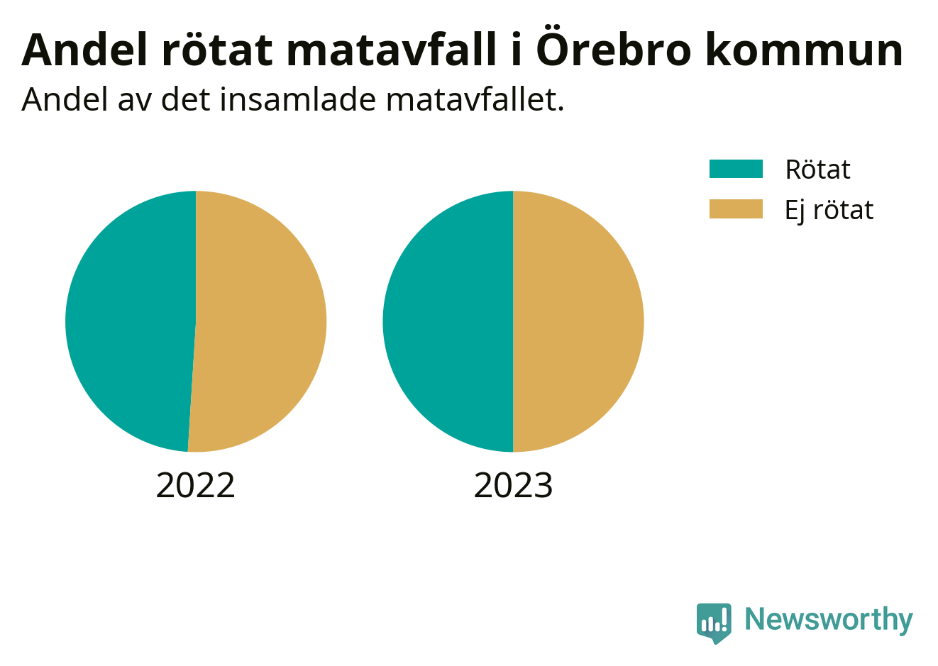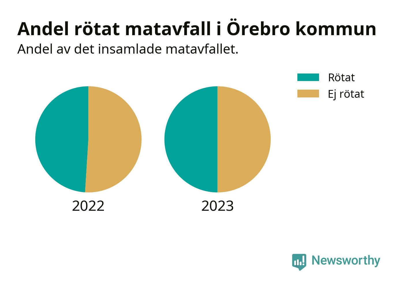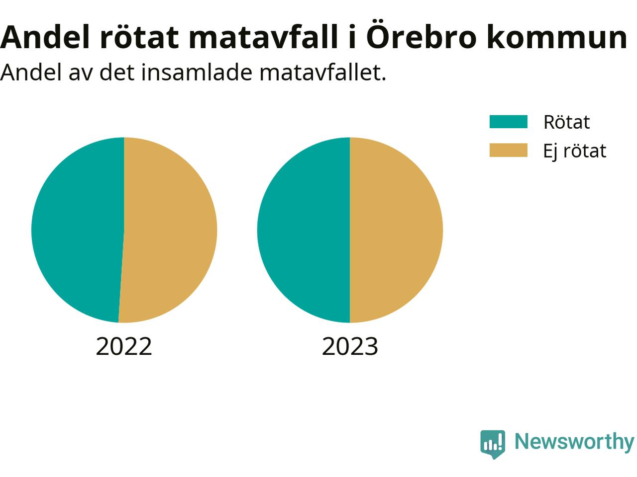 Insamlat matavfall kan antingen komposteras, eller rötas så att det blir både biogas och kompost. I Örebro kommun skickades omkring 50 procent av matavfallet till en rötningsanläggning. Det är i stort sett oförändrat sedan året innan (49 procent), vilket innebär att Örebro kommun aldrig kom nära det nationella etappmålet om att röta 75 procent av allt matavfall till 2023.
