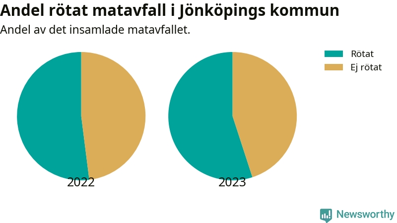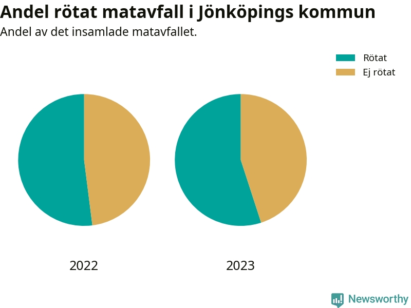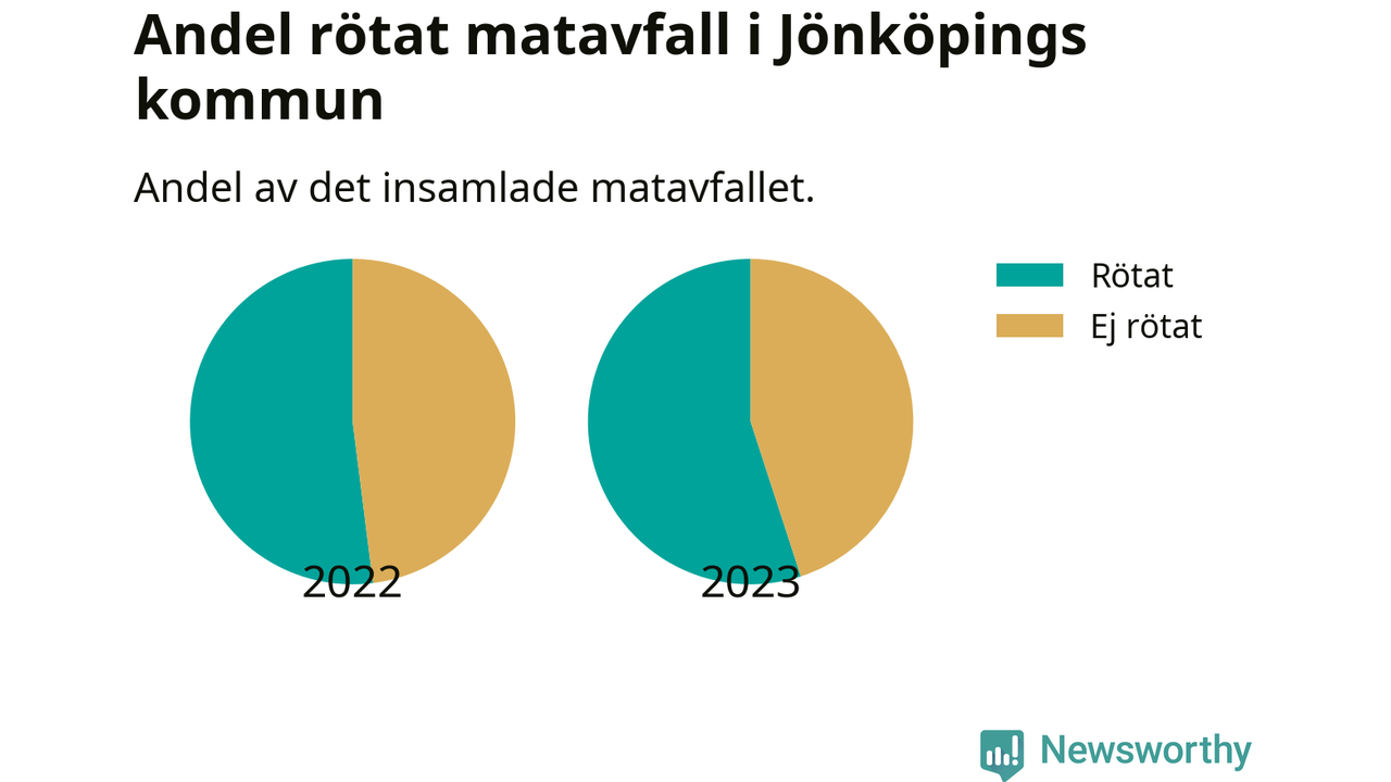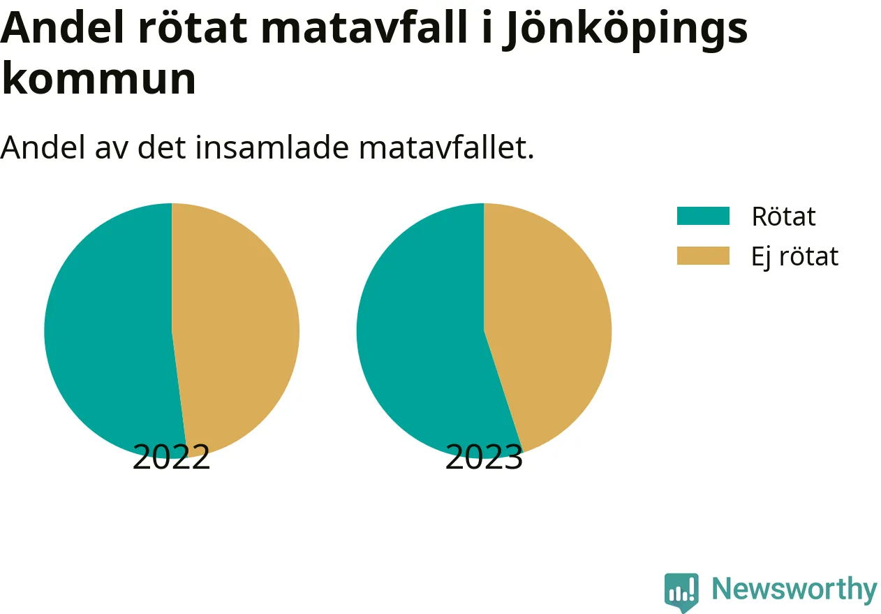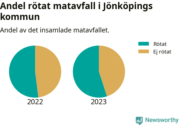 Insamlat matavfall kan antingen komposteras, eller rötas så att det blir både biogas och kompost. I Jönköpings kommun skickades omkring 55 procent av matavfallet till en rötningsanläggning. Det är i stort sett oförändrat sedan året innan (52 procent), vilket innebär att Jönköpings kommun aldrig kom nära det nationella etappmålet om att röta 75 procent av allt matavfall till 2023.