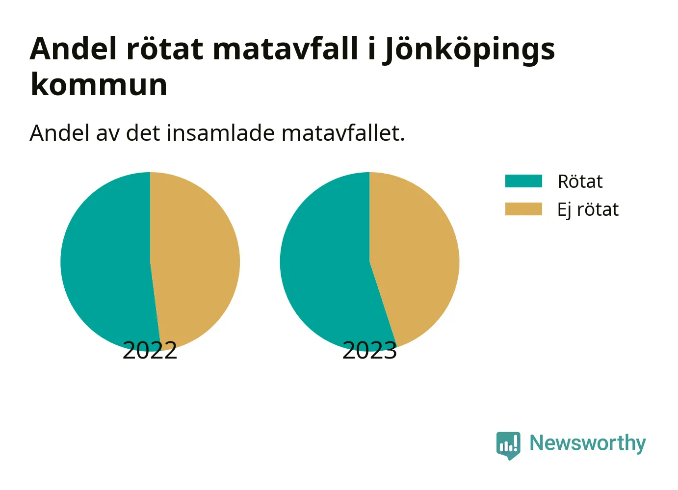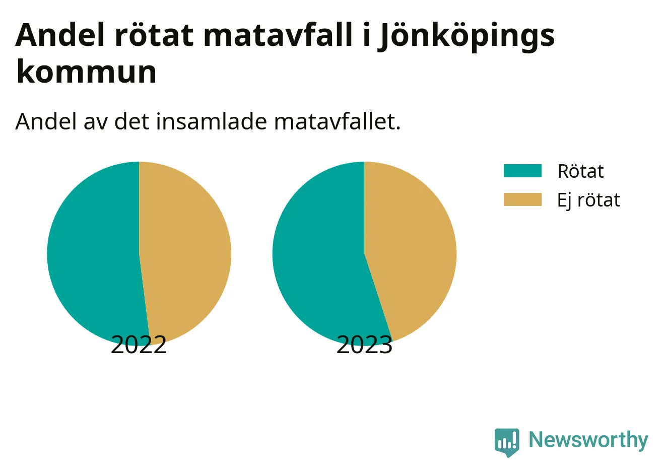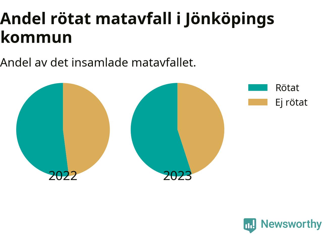 Insamlat matavfall kan antingen komposteras, eller rötas så att det blir både biogas och kompost. I Jönköpings kommun skickades omkring 55 procent av matavfallet till en rötningsanläggning. Det är i stort sett oförändrat sedan året innan (52 procent), vilket innebär att Jönköpings kommun aldrig kom nära det nationella etappmålet om att röta 75 procent av allt matavfall till 2023.
