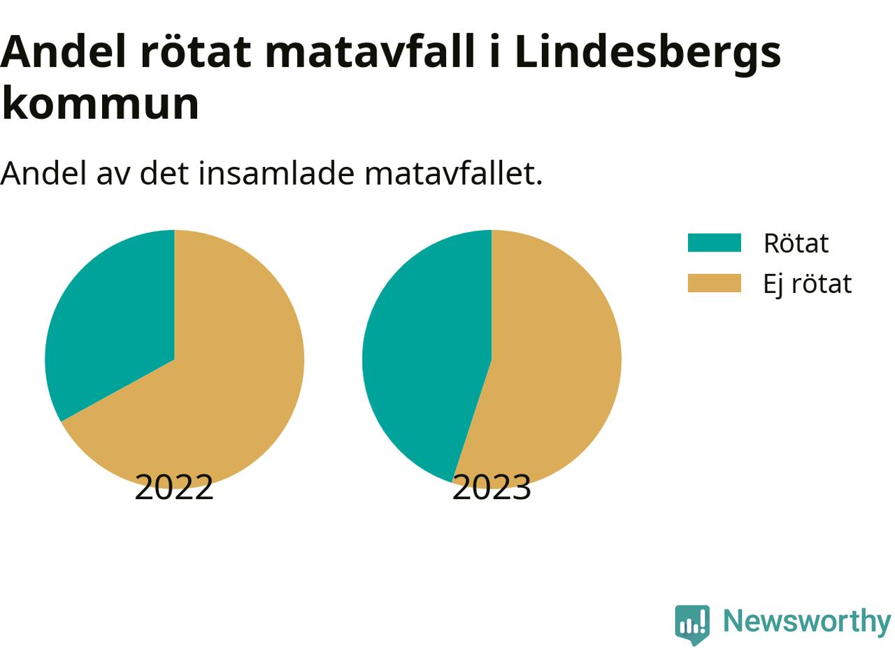 Insamlat matavfall kan antingen komposteras, eller rötas så att det blir både biogas och kompost. I Lindesberg skickades omkring 45 procent av matavfallet till en rötningsanläggning. Det är en ökning med tolv procentenheter sedan året innan, vilket innebär att Lindesbergs kommun aldrig kom nära det nationella etappmålet om att röta 75 procent av allt matavfall till 2023.