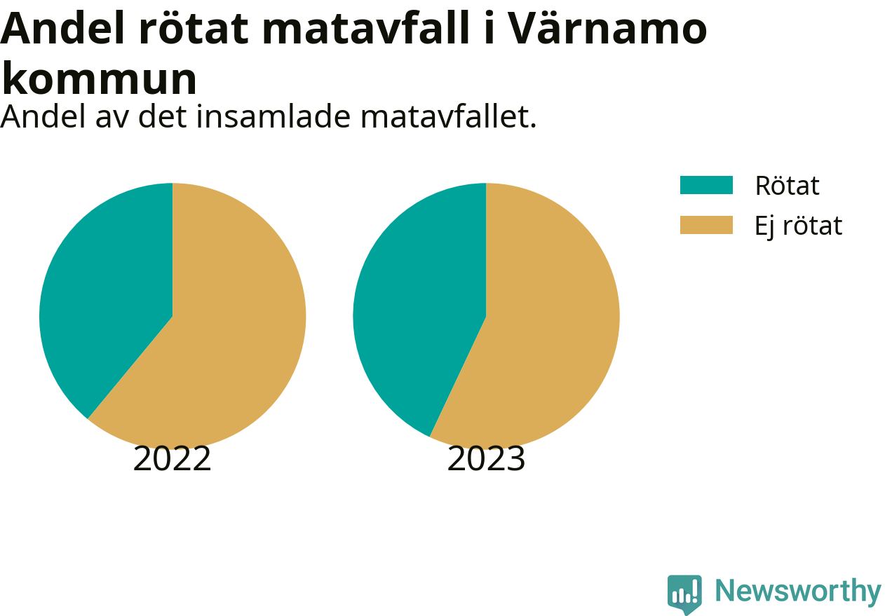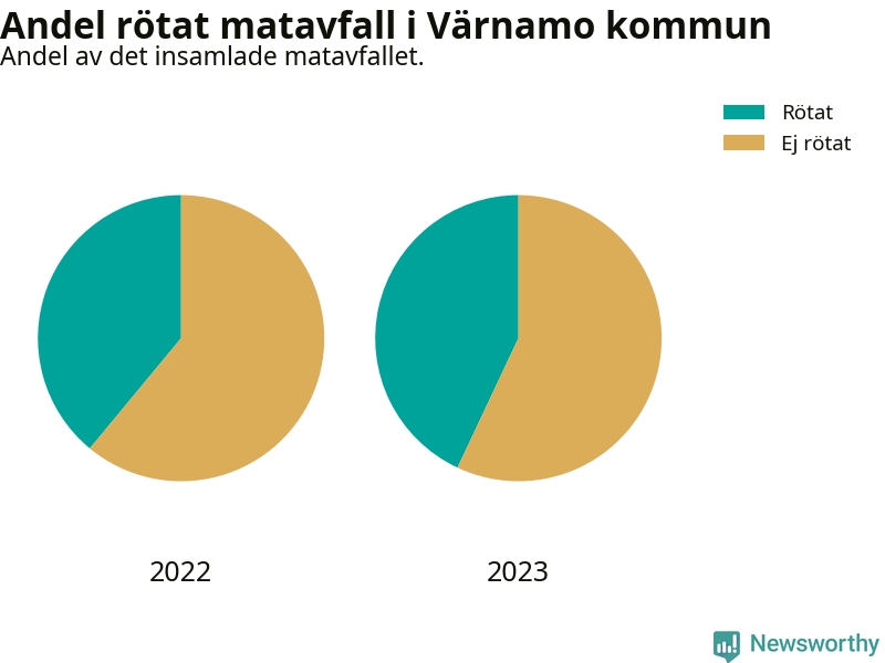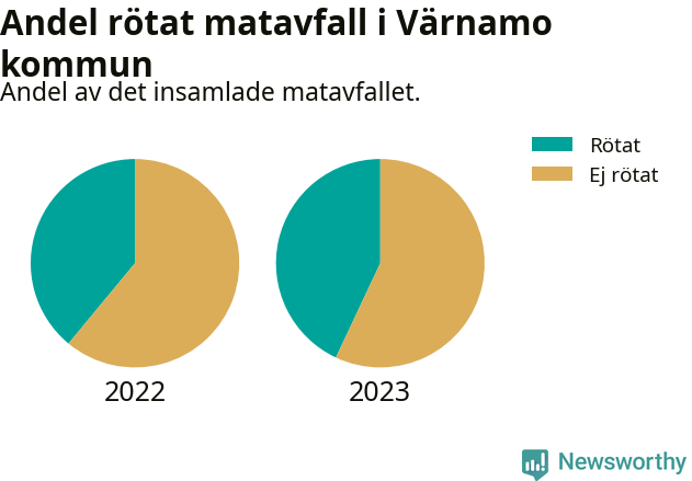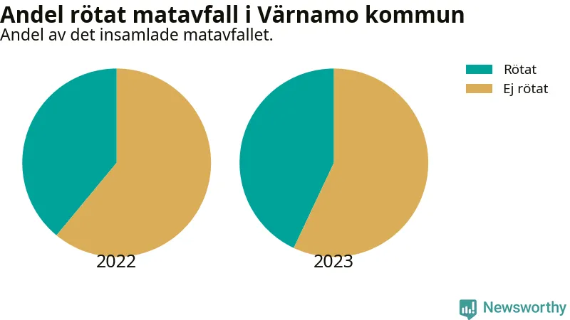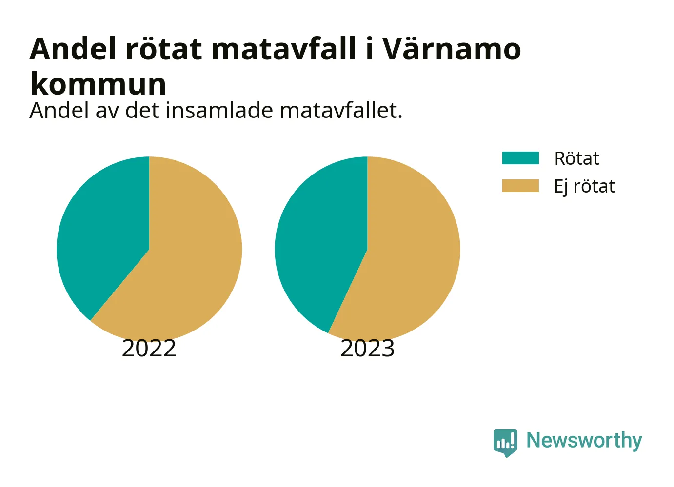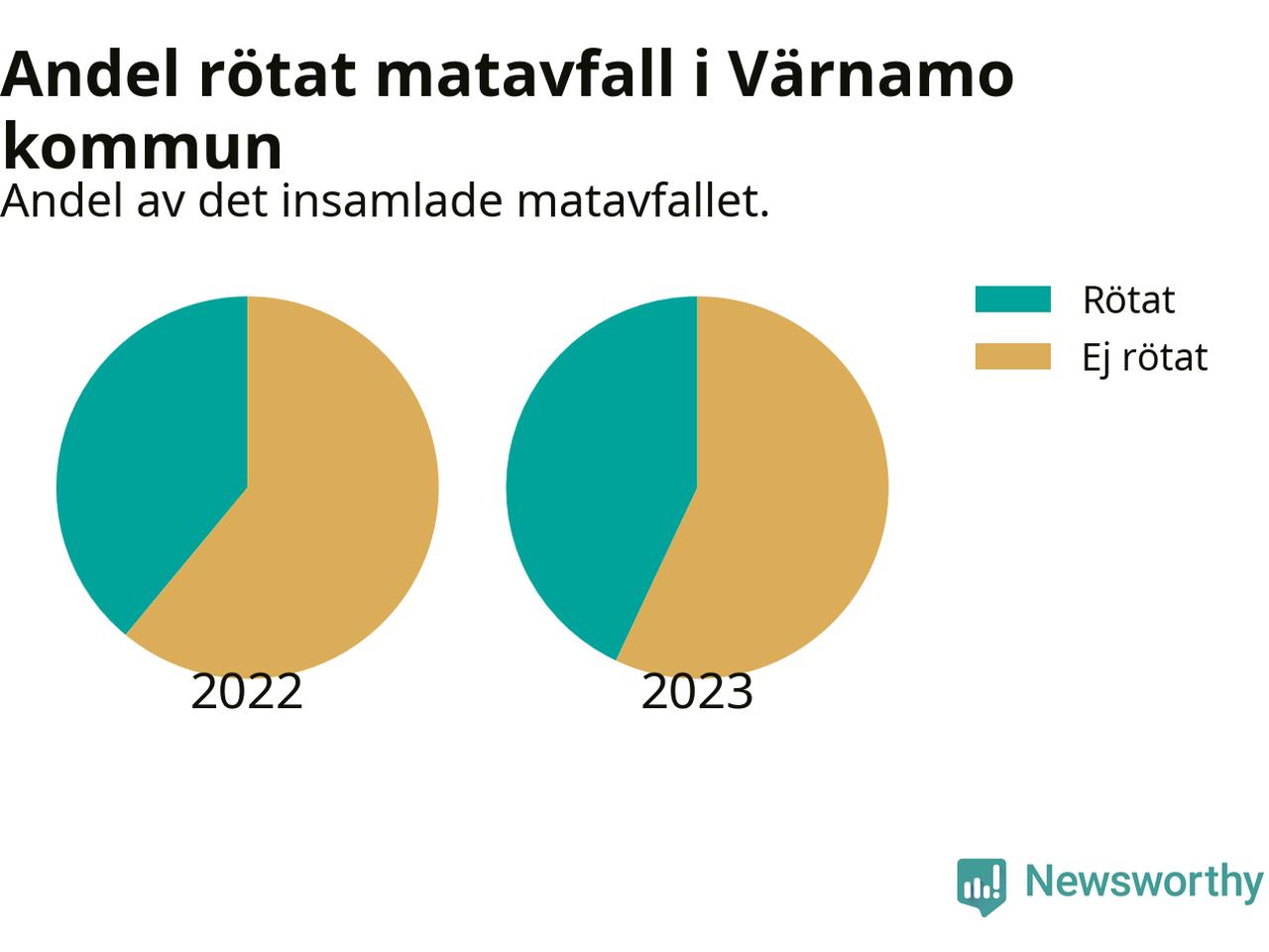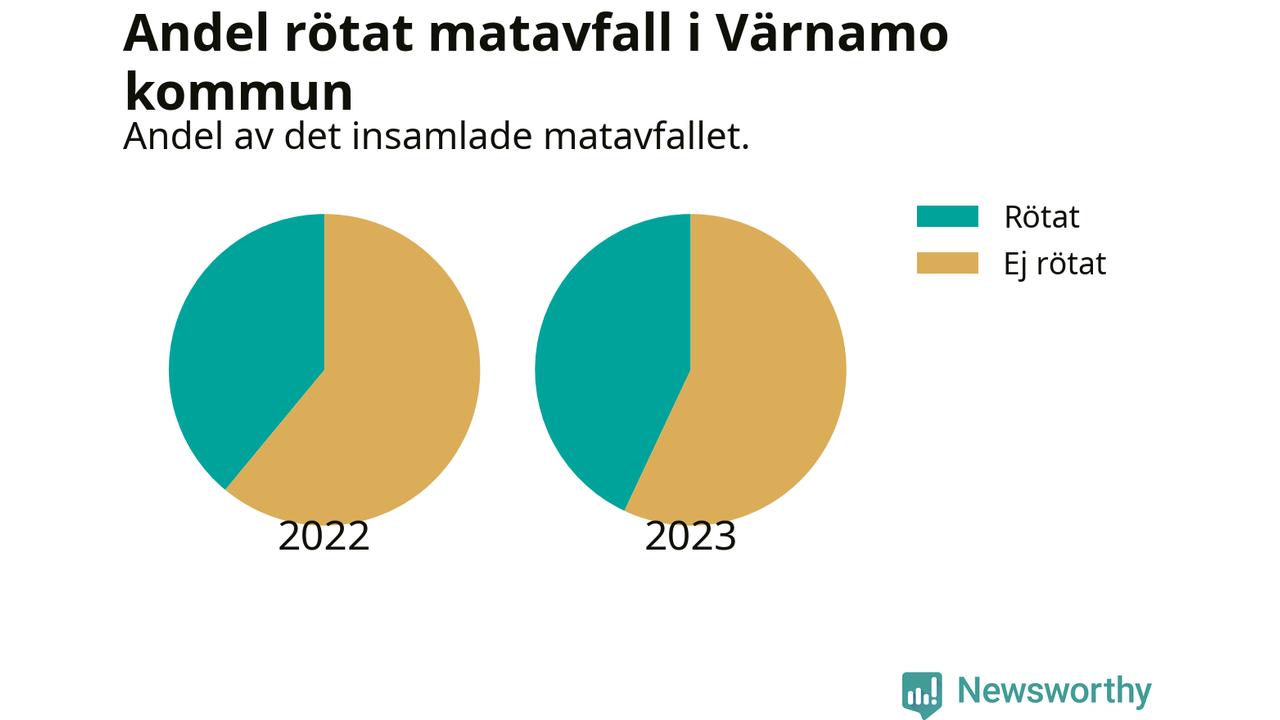 Insamlat matavfall kan antingen komposteras, eller rötas så att det blir både biogas och kompost. I Värnamo skickades omkring 43 procent av matavfallet till en rötningsanläggning. Det är en ökning med fyra procentenheter sedan året innan, vilket innebär att Värnamo kommun aldrig kom nära det nationella etappmålet om att röta 75 procent av allt matavfall till 2023.