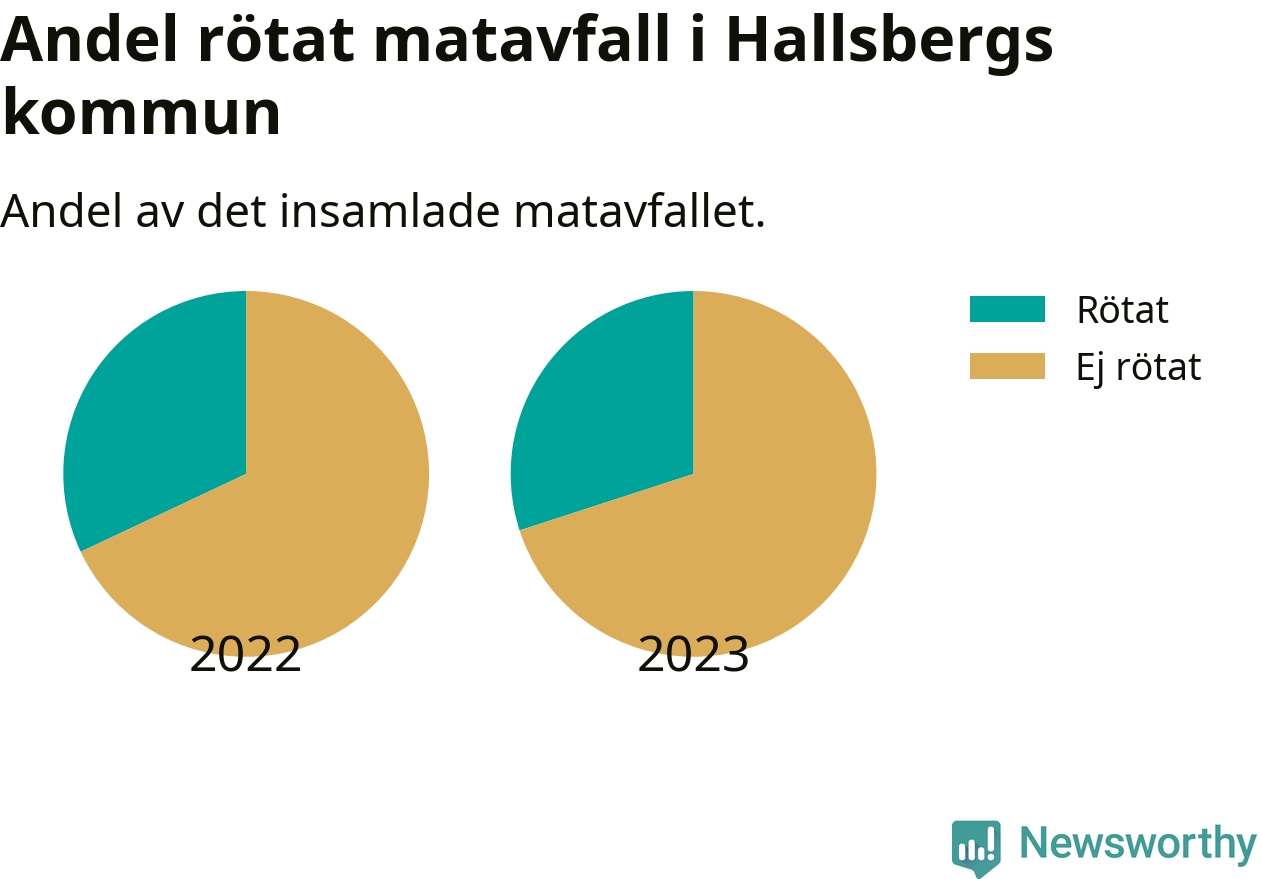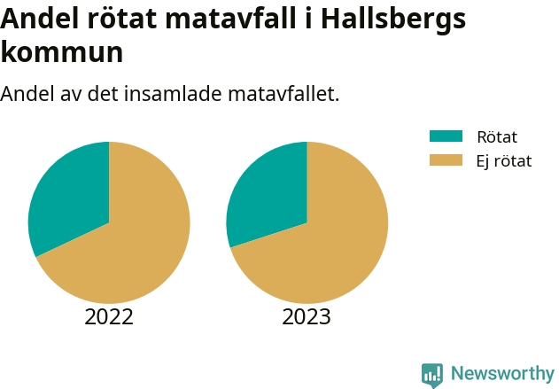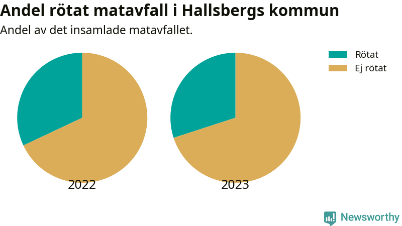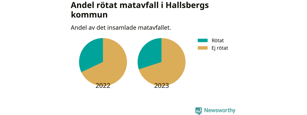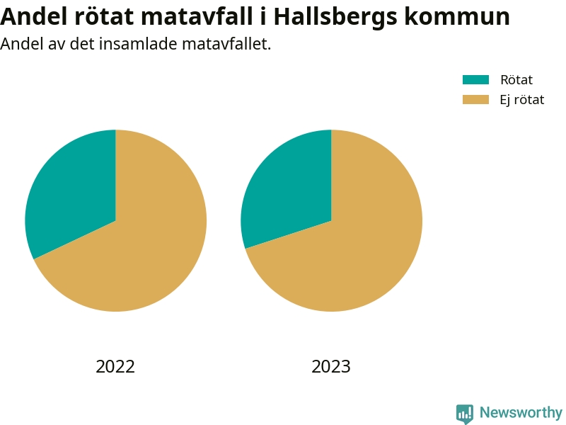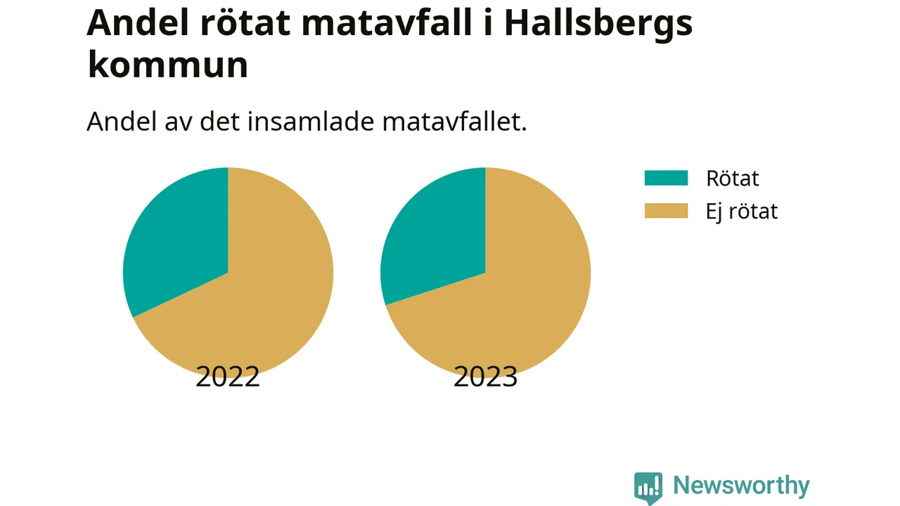 Insamlat matavfall kan antingen komposteras, eller rötas så att det blir både biogas och kompost. I Hallsberg skickades omkring 30 procent av matavfallet till en rötningsanläggning. Det är i stort sett oförändrat sedan året innan (32 procent), vilket innebär att Hallsbergs kommun aldrig kom nära det nationella etappmålet om att röta 75 procent av allt matavfall till 2023.