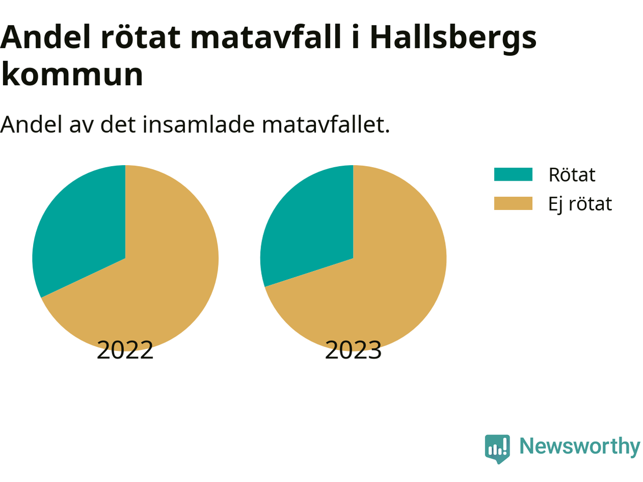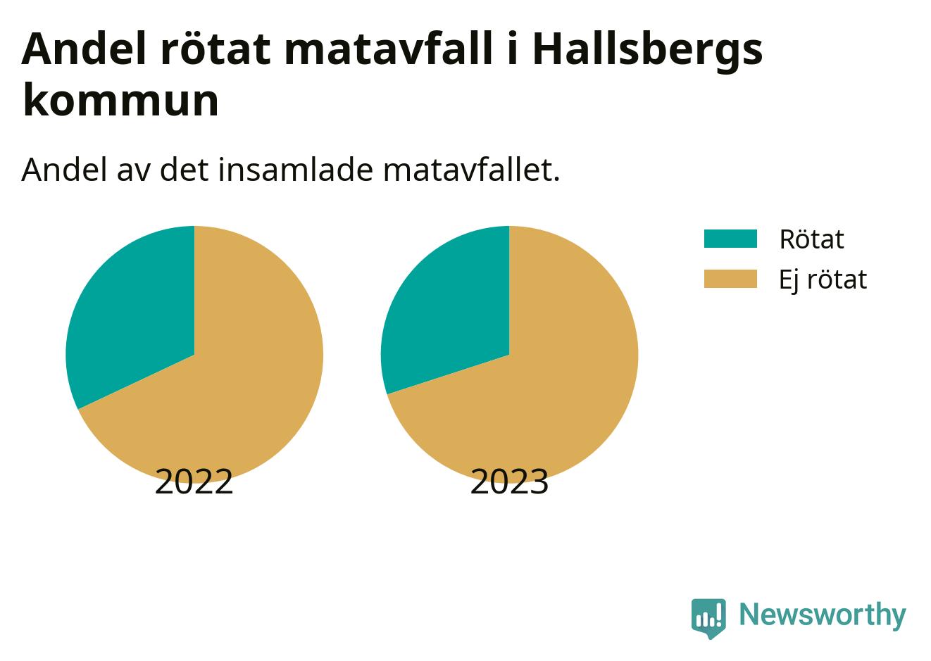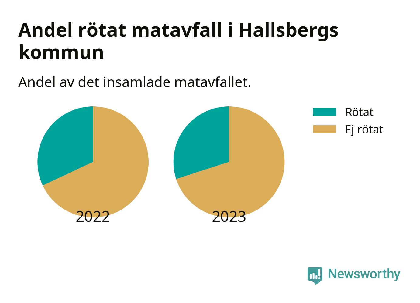 Insamlat matavfall kan antingen komposteras, eller rötas så att det blir både biogas och kompost. I Hallsberg skickades omkring 30 procent av matavfallet till en rötningsanläggning. Det är i stort sett oförändrat sedan året innan (32 procent), vilket innebär att Hallsbergs kommun aldrig kom nära det nationella etappmålet om att röta 75 procent av allt matavfall till 2023.