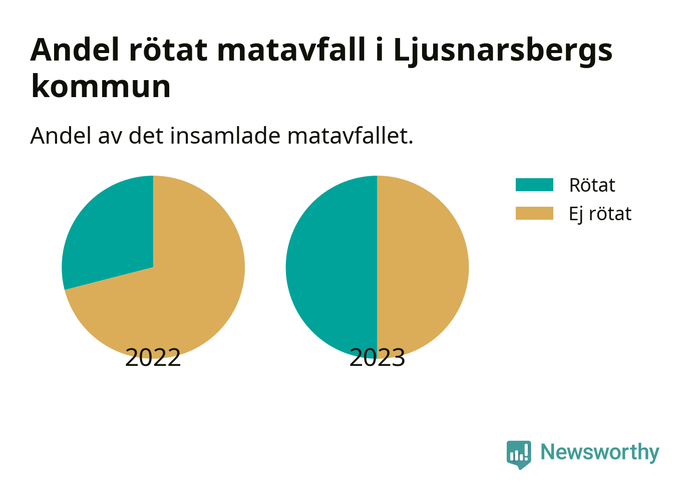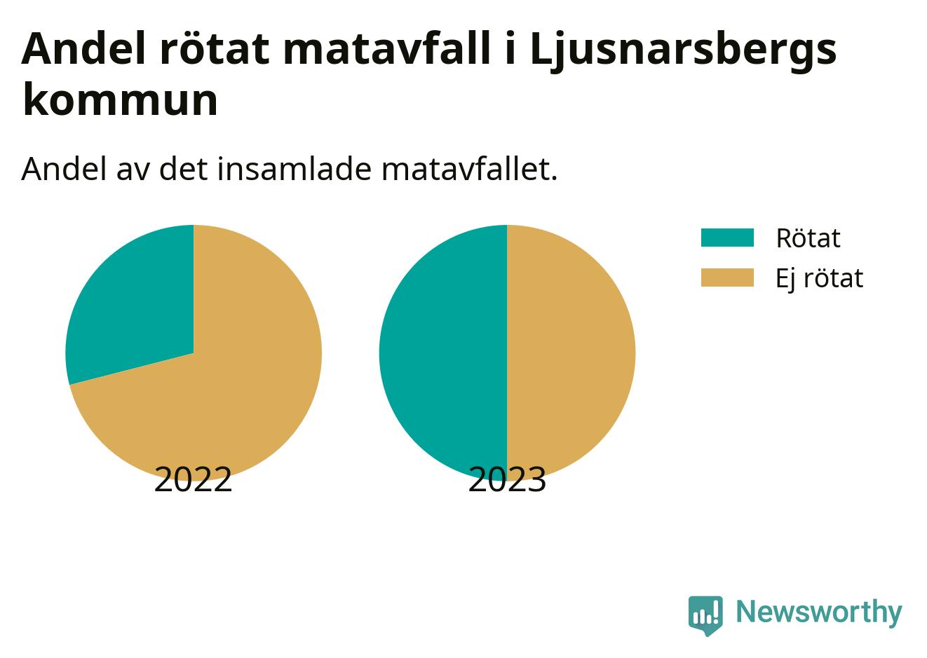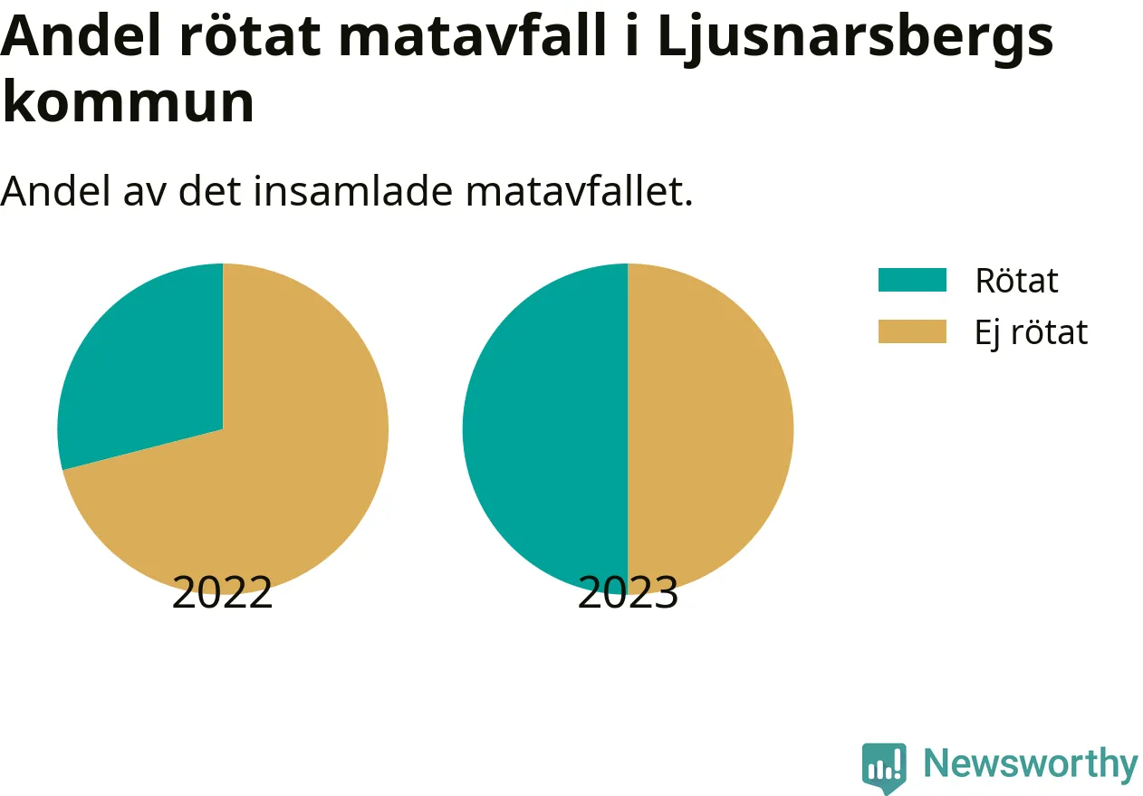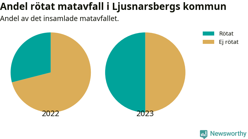 Insamlat matavfall kan antingen komposteras, eller rötas så att det blir både biogas och kompost. I Ljusnarsberg skickades omkring 50 procent av matavfallet till en rötningsanläggning. Det är en ökning med 21 procentenheter sedan året innan, vilket innebär att Ljusnarsbergs kommun aldrig kom nära det nationella etappmålet om att röta 75 procent av allt matavfall till 2023.