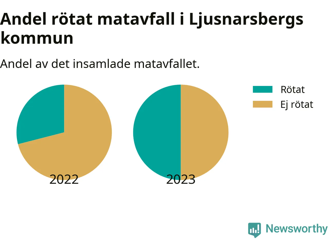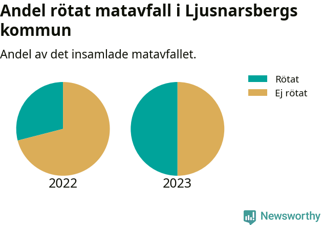 Sverige hade som mål att 75 procent av allt matavfall skulle rötas för att bli både biogas och näring, senast 2023. I Ljusnarsbergs kommun gick bara 50 procent av matavfallet till rötning, men andelen ökade från året innan.