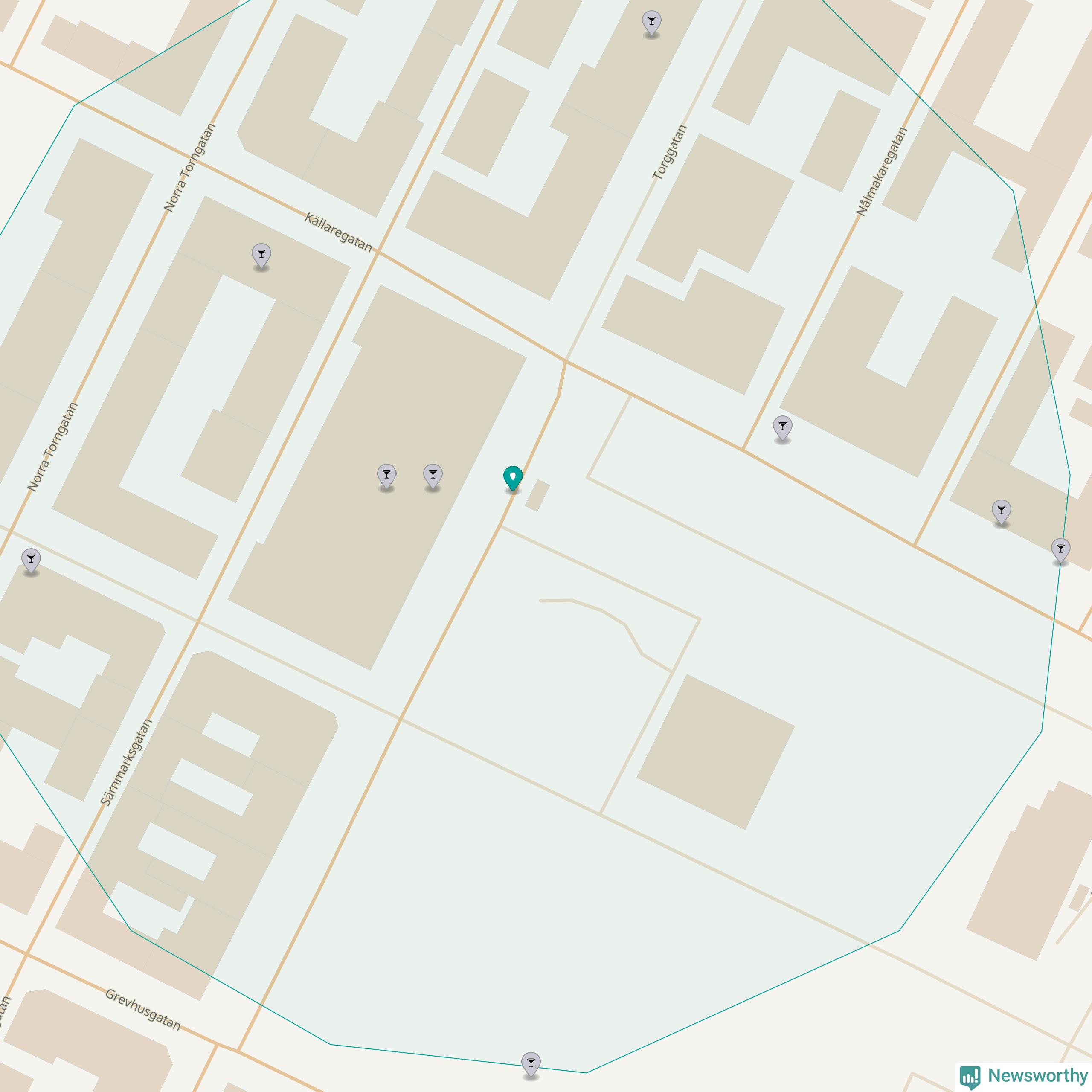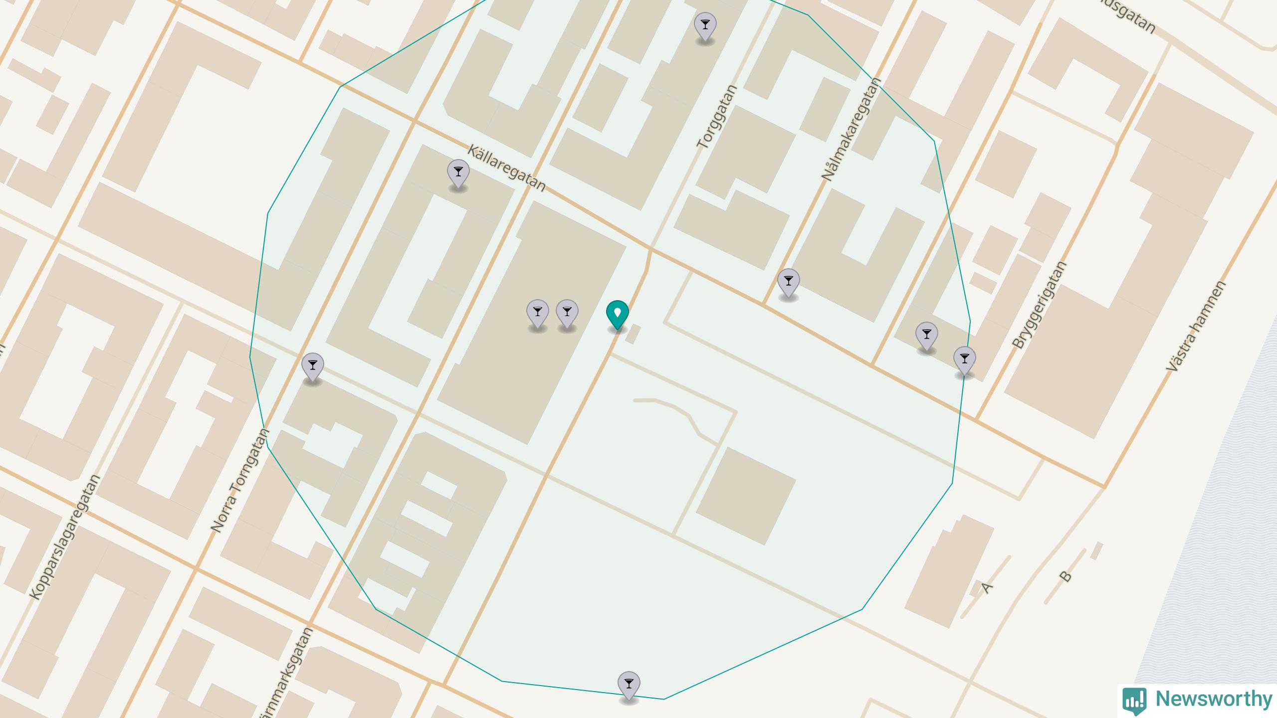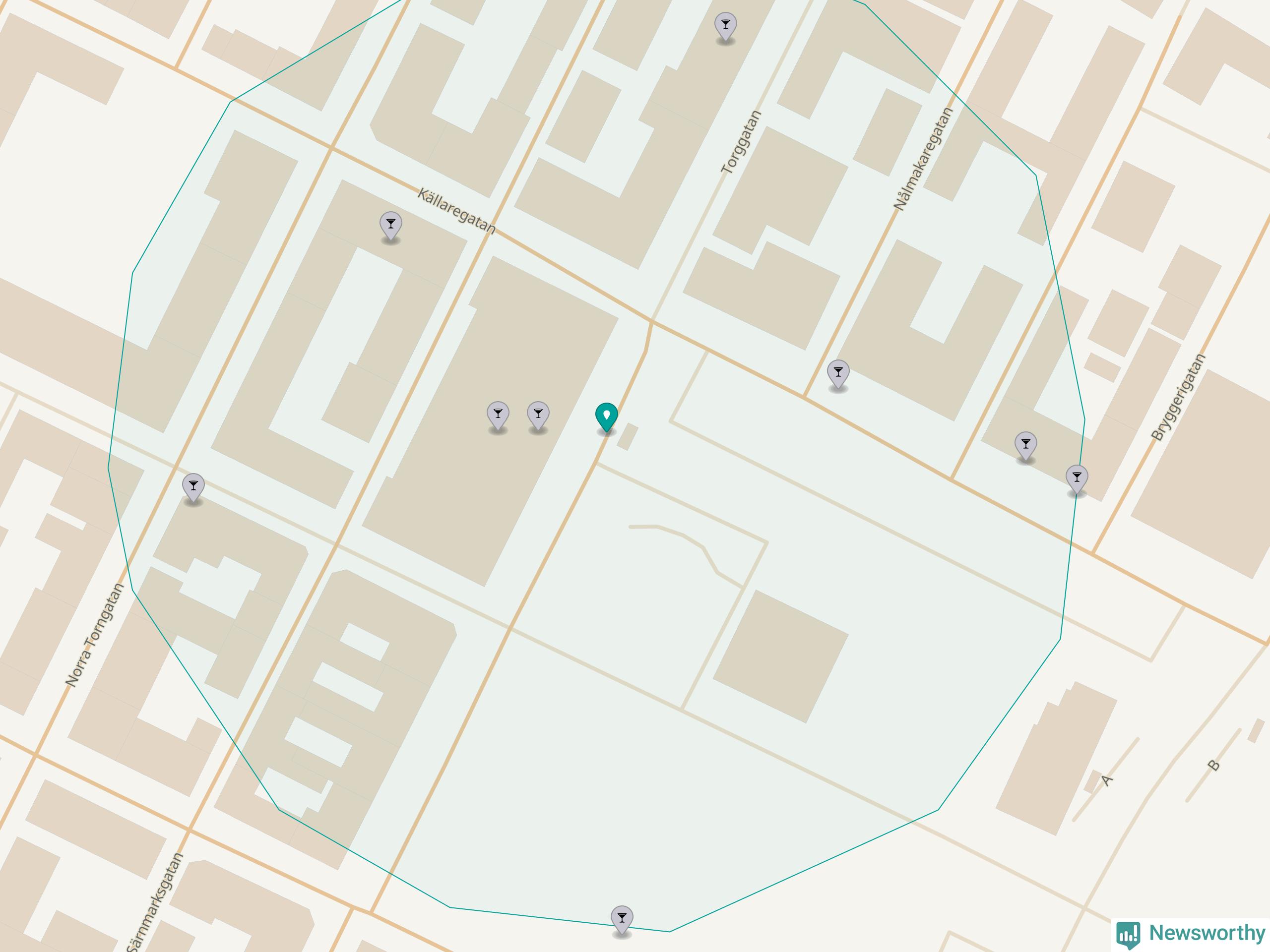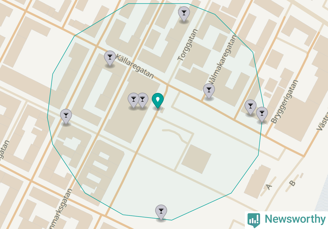 Om du står på Nya Stadens torg har du sisådär åtta krogar, restauranger eller hotell med serveringstillstånd inom en radie på 100 meter. Det är den krogtätaste platsen i Lidköpings kommun.