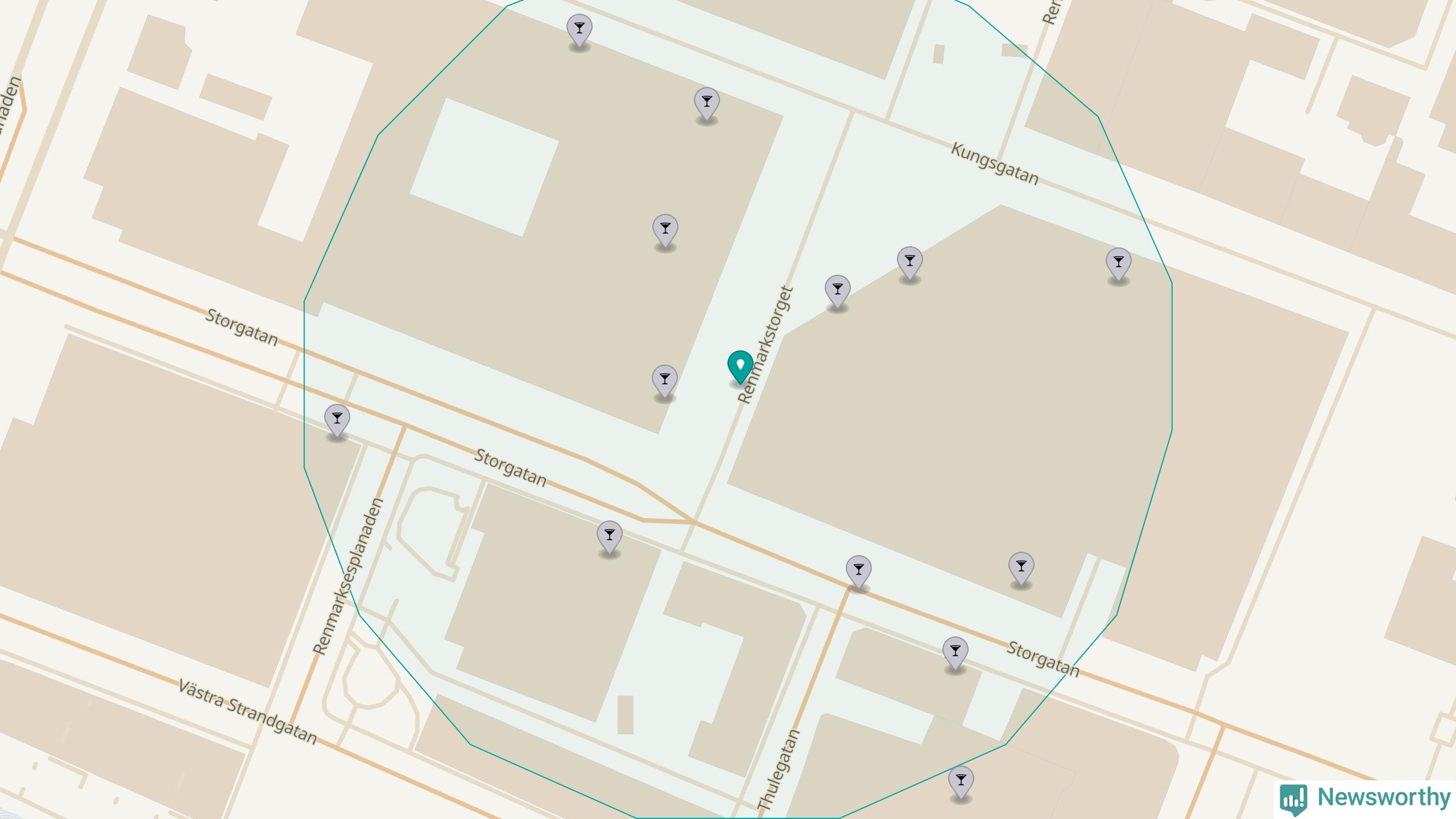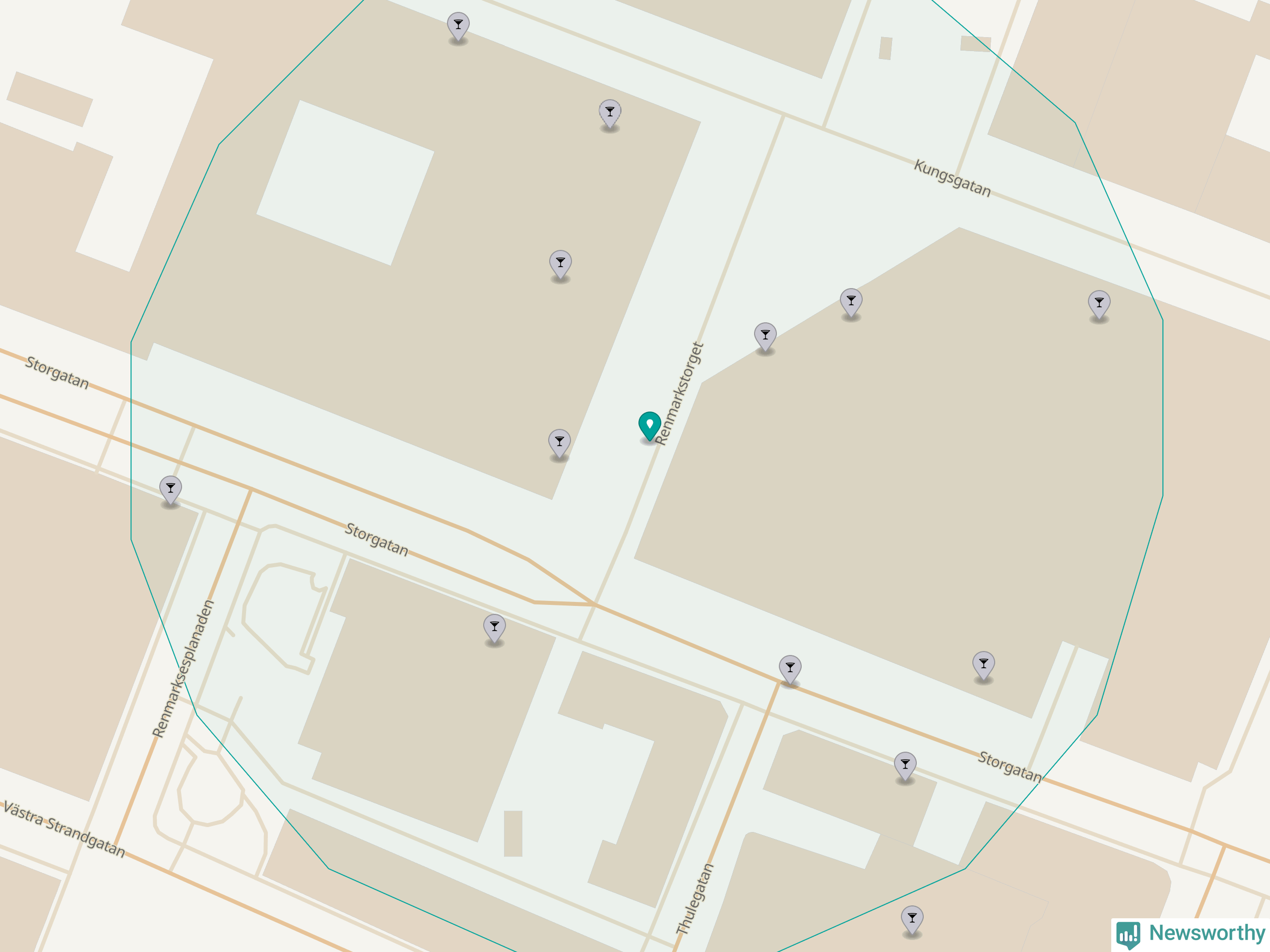 Om du står på Renmarkstorget har du sisådär tolv krogar, restauranger eller hotell med serveringstillstånd inom en radie på 100 meter. Det är den krogtätaste platsen i Umeå kommun och den krogtätaste platsen i Västerbotten.