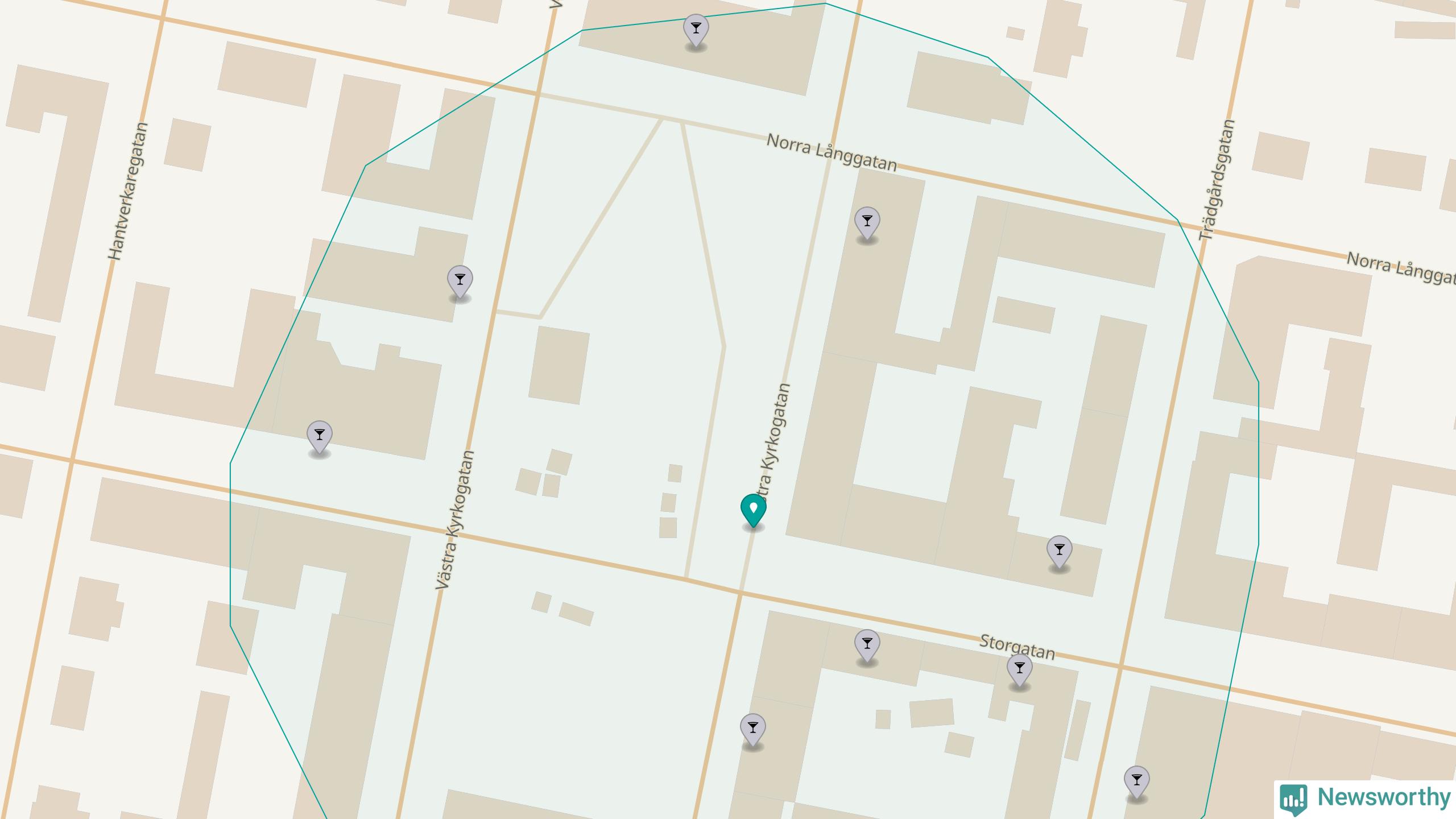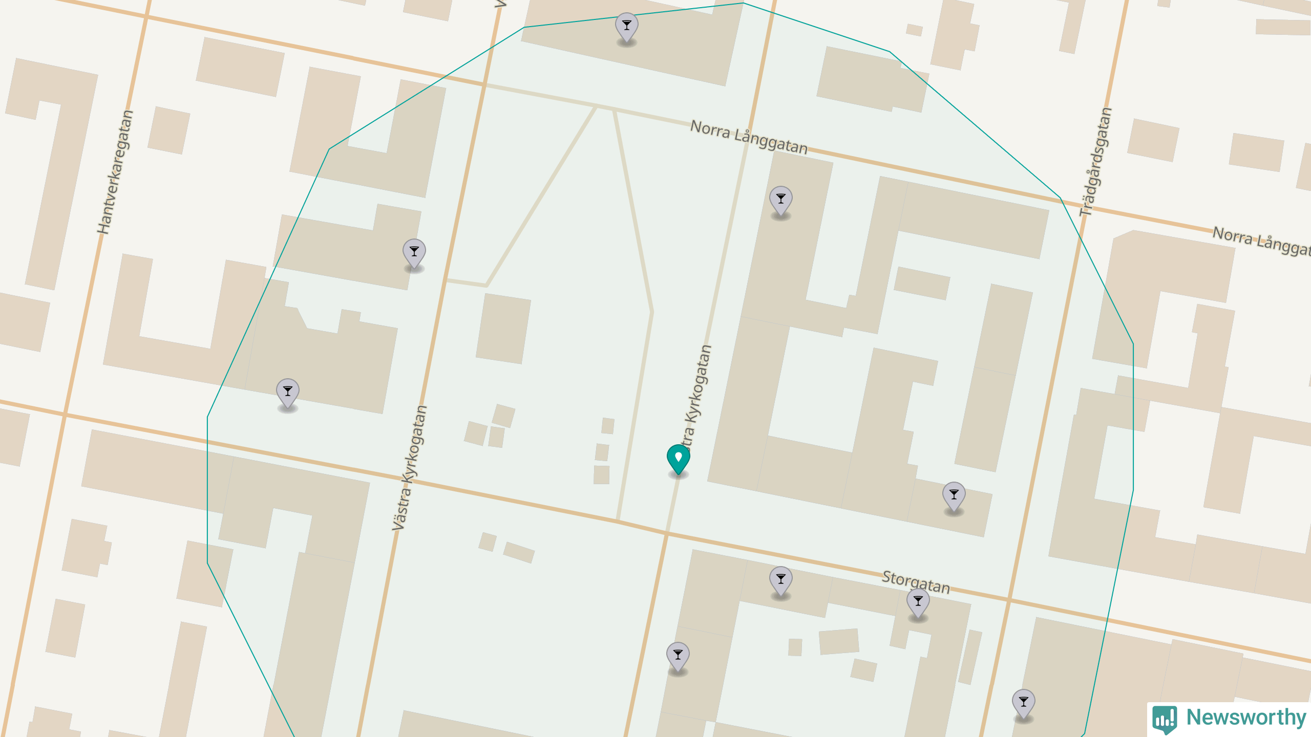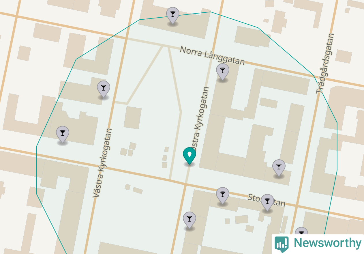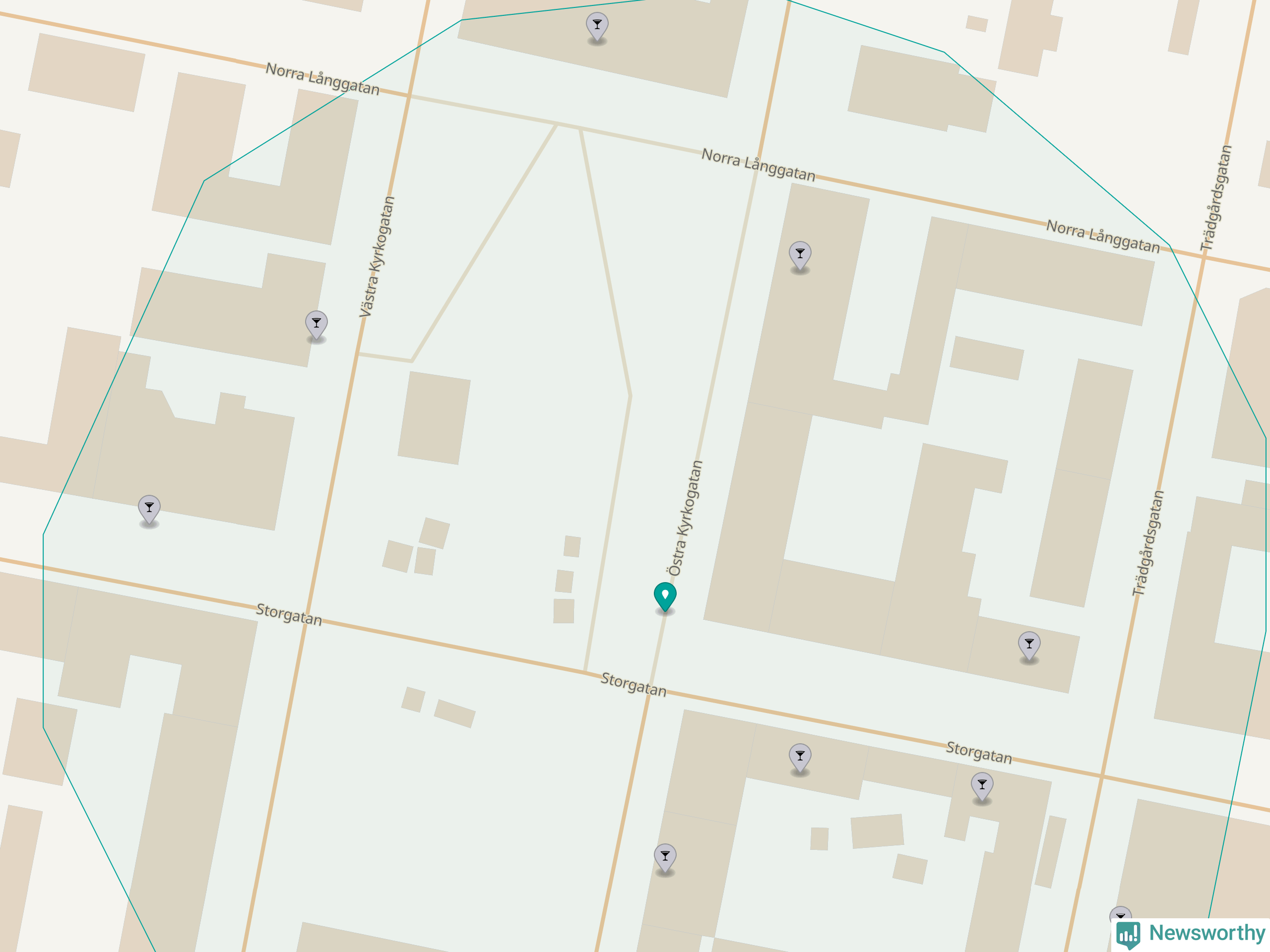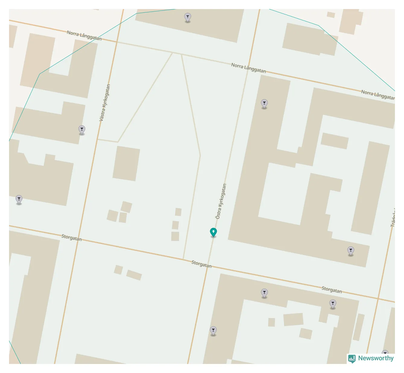 Om du står på Östra Kyrkogatan har du nio krogar, restauranger eller hotell med serveringstillstånd inom en radie på 100 meter. Det är den krogtätaste platsen i Borgholms kommun.