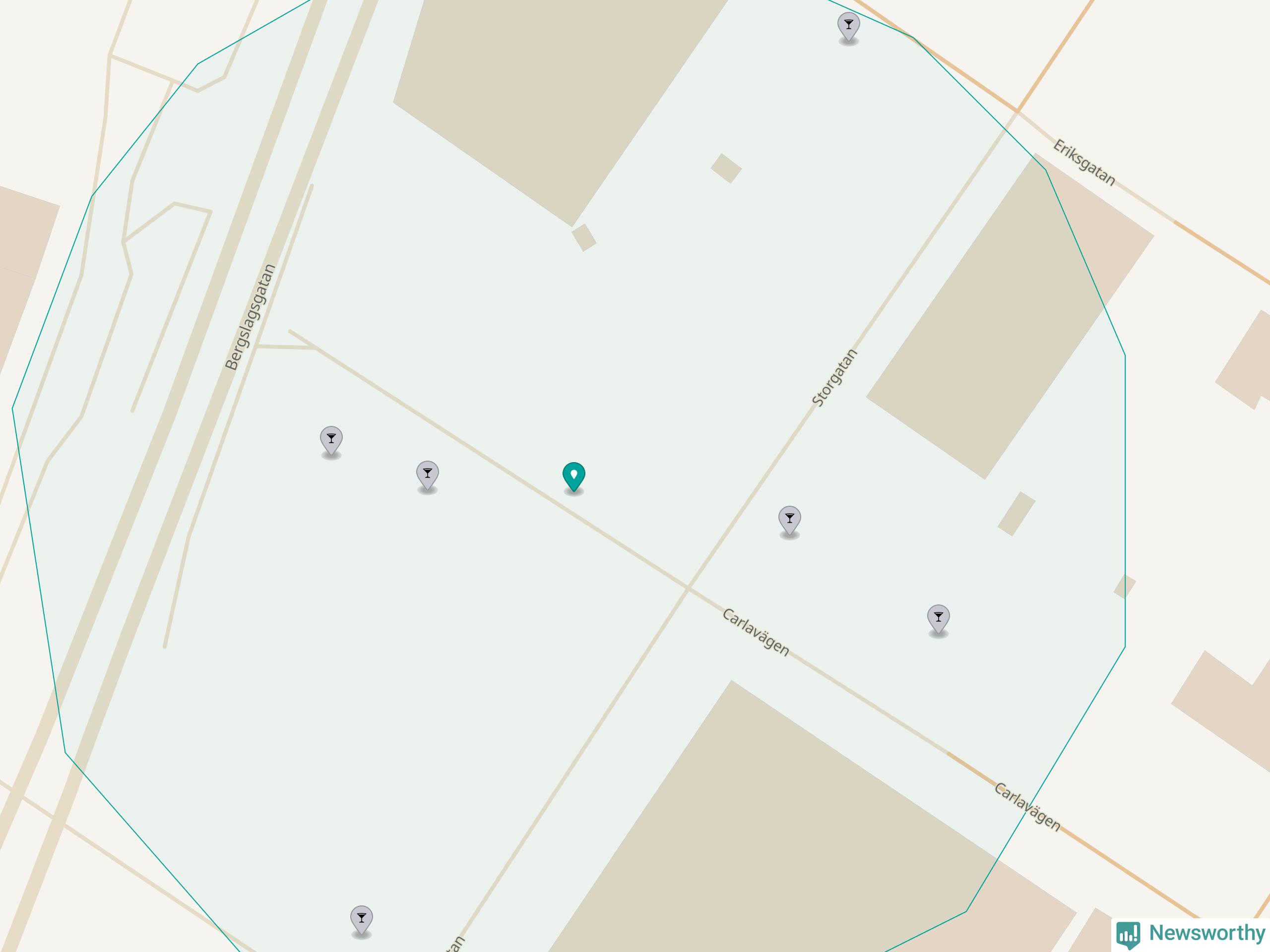 Om du står på Carlavägen har du sex krogar, restauranger eller hotell med serveringstillstånd inom en radie på 100 meter. Det är den krogtätaste platsen i Ludvika kommun.