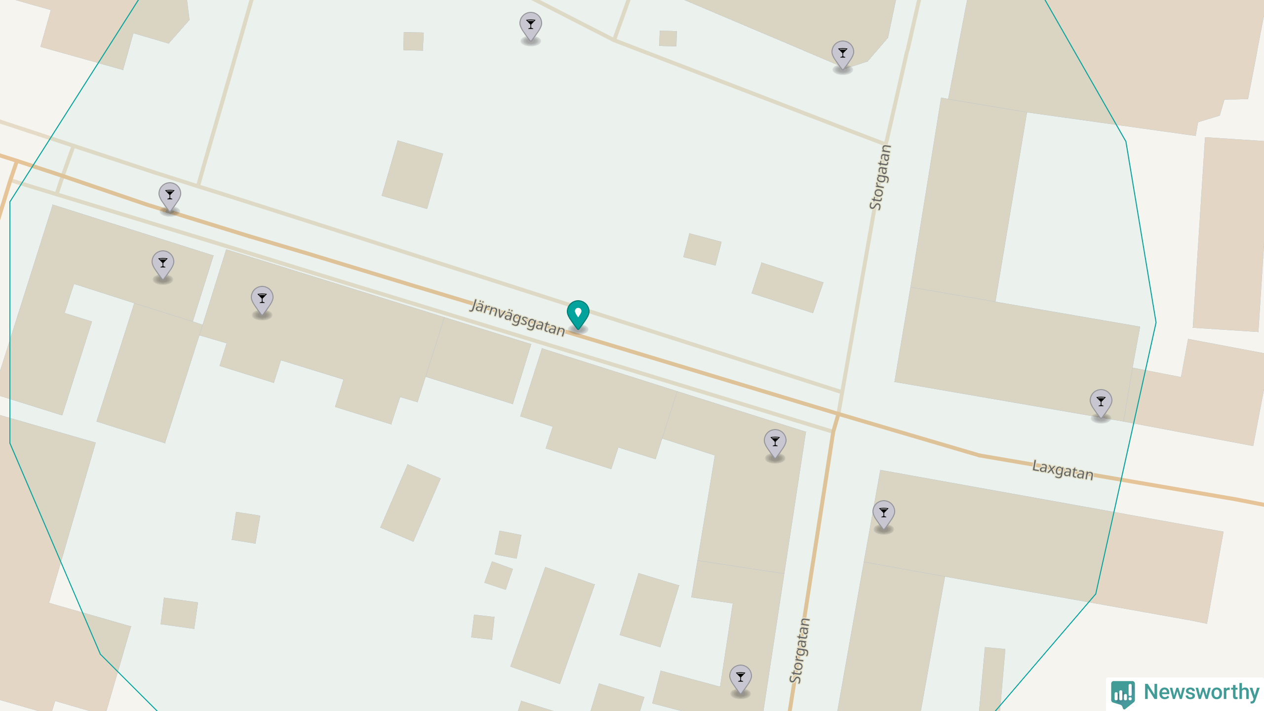 Om du står på Järnvägsgatan har du nio krogar, restauranger eller hotell med serveringstillstånd inom en radie på 100 meter. Det är den krogtätaste platsen i Ängelholms kommun.