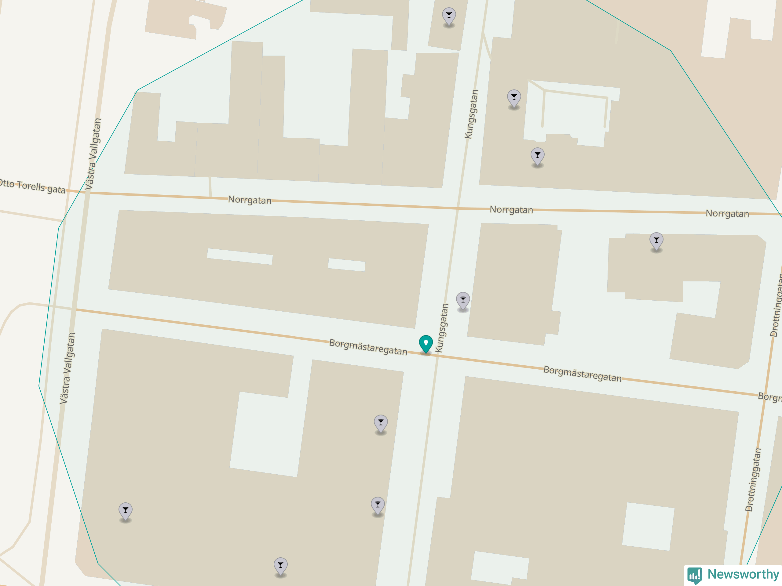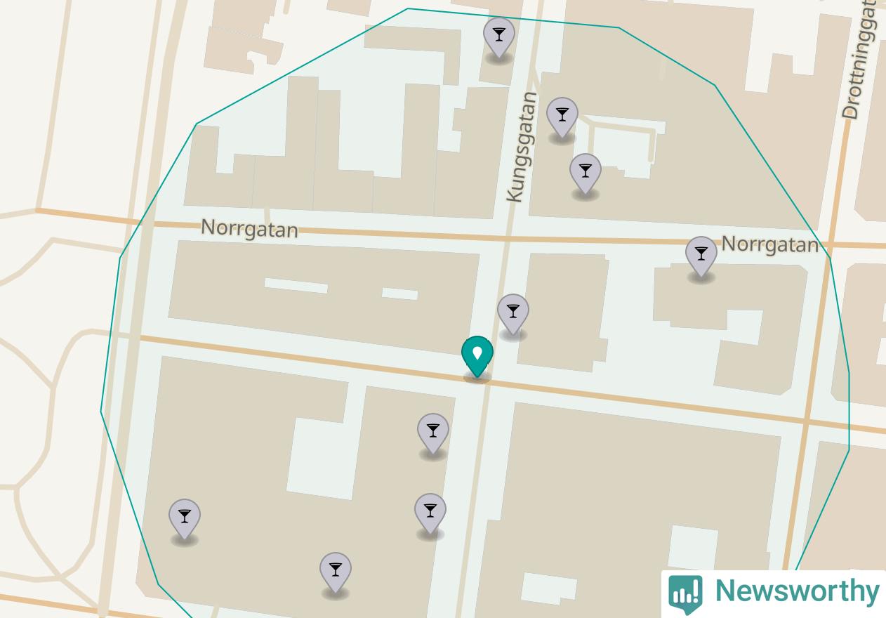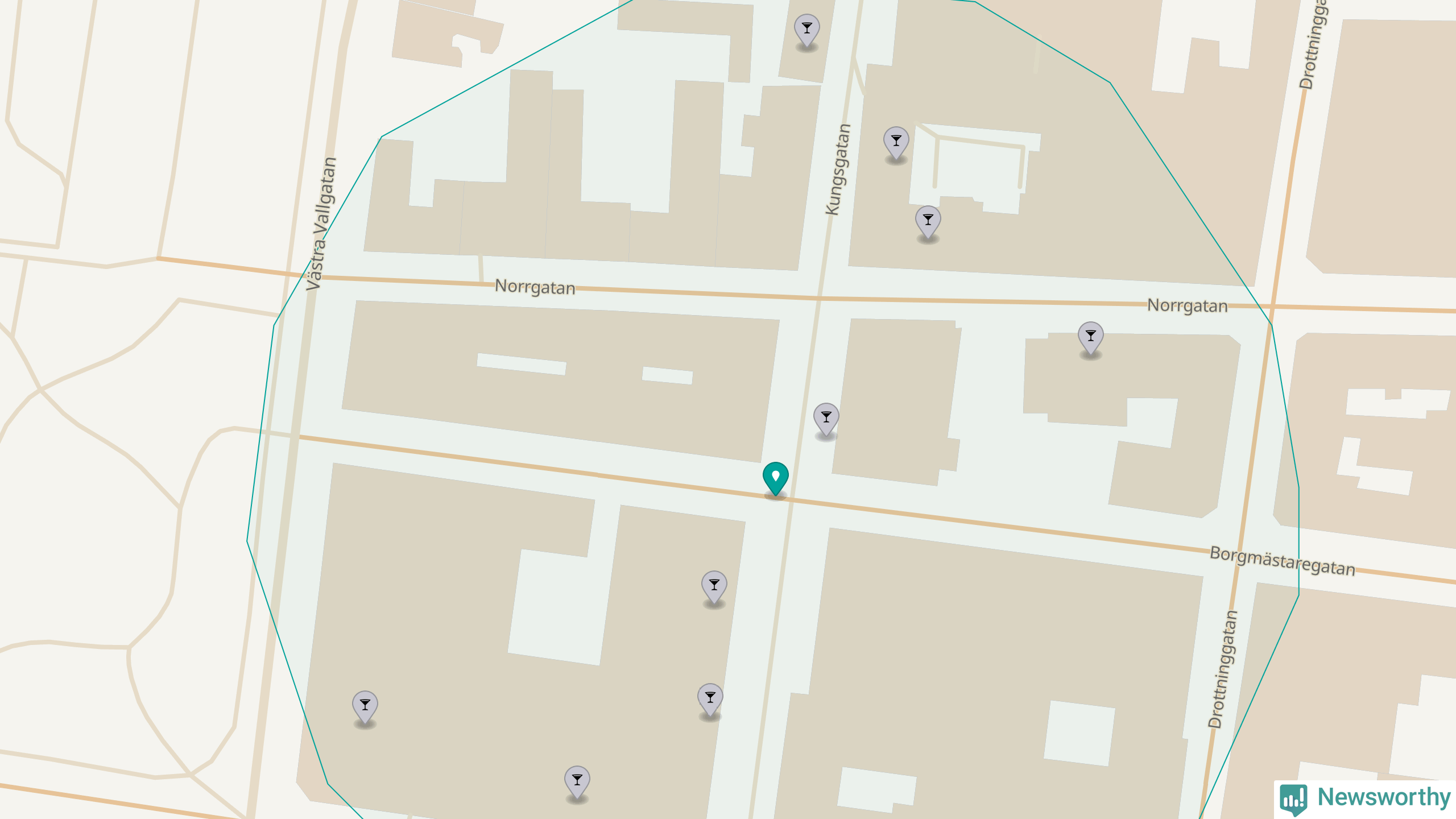 Om du står i hörnet Kungsgatan och Borgmästaregatanhar du nio krogar, restauranger eller hotell med serveringstillstånd inom en radie på 100 meter. Det är den krogtätaste platsen i Varbergs kommun.