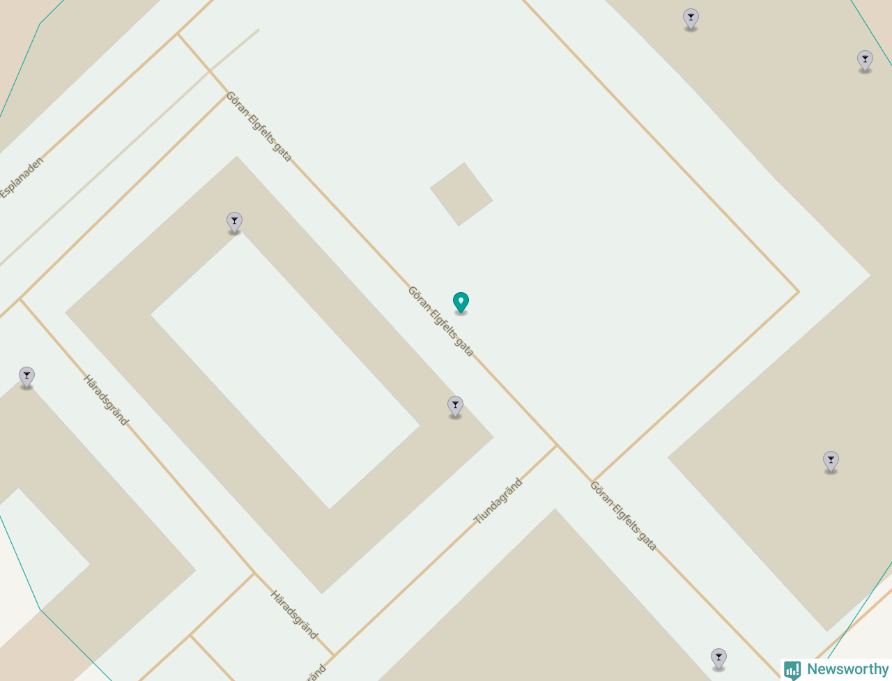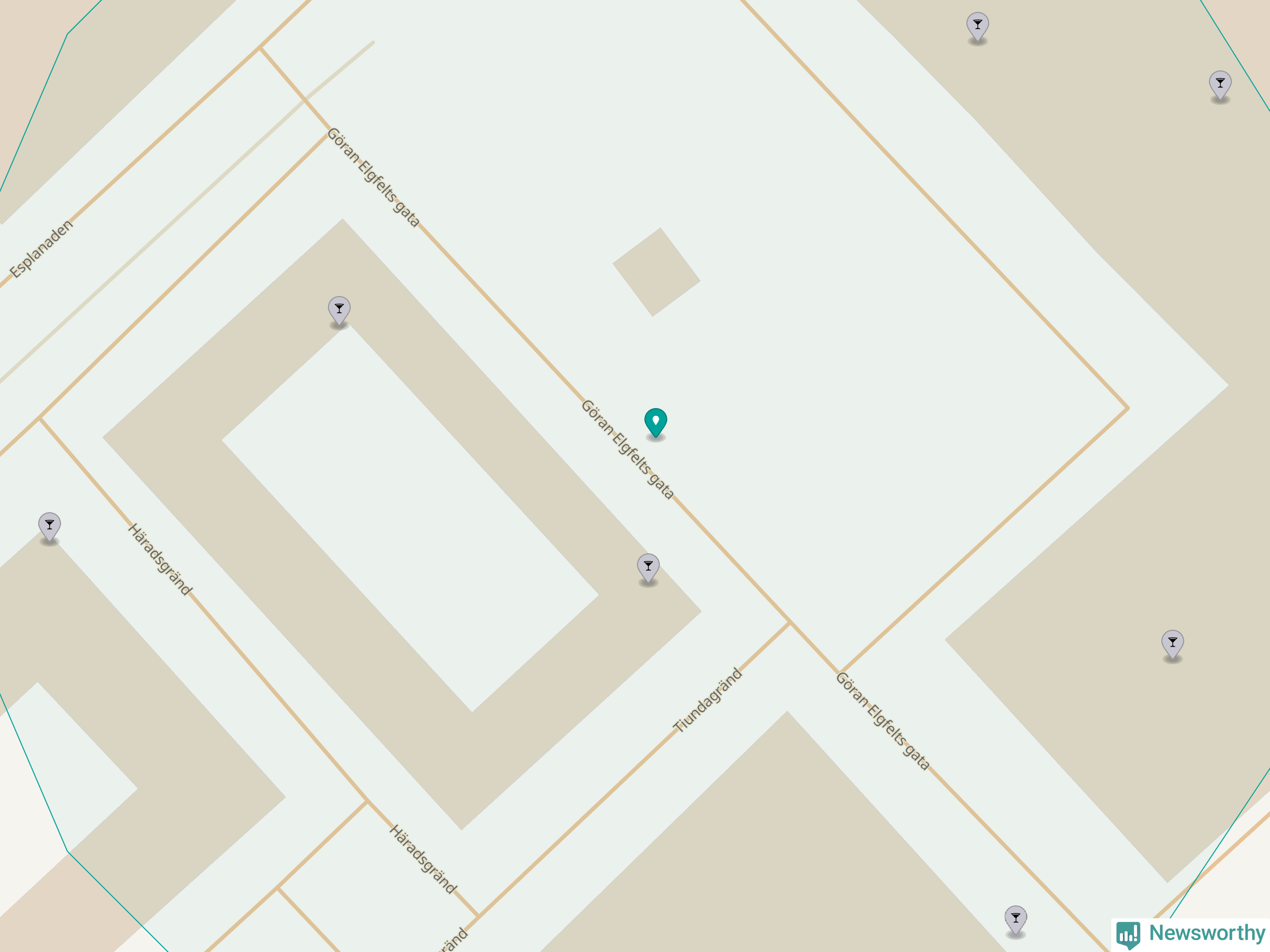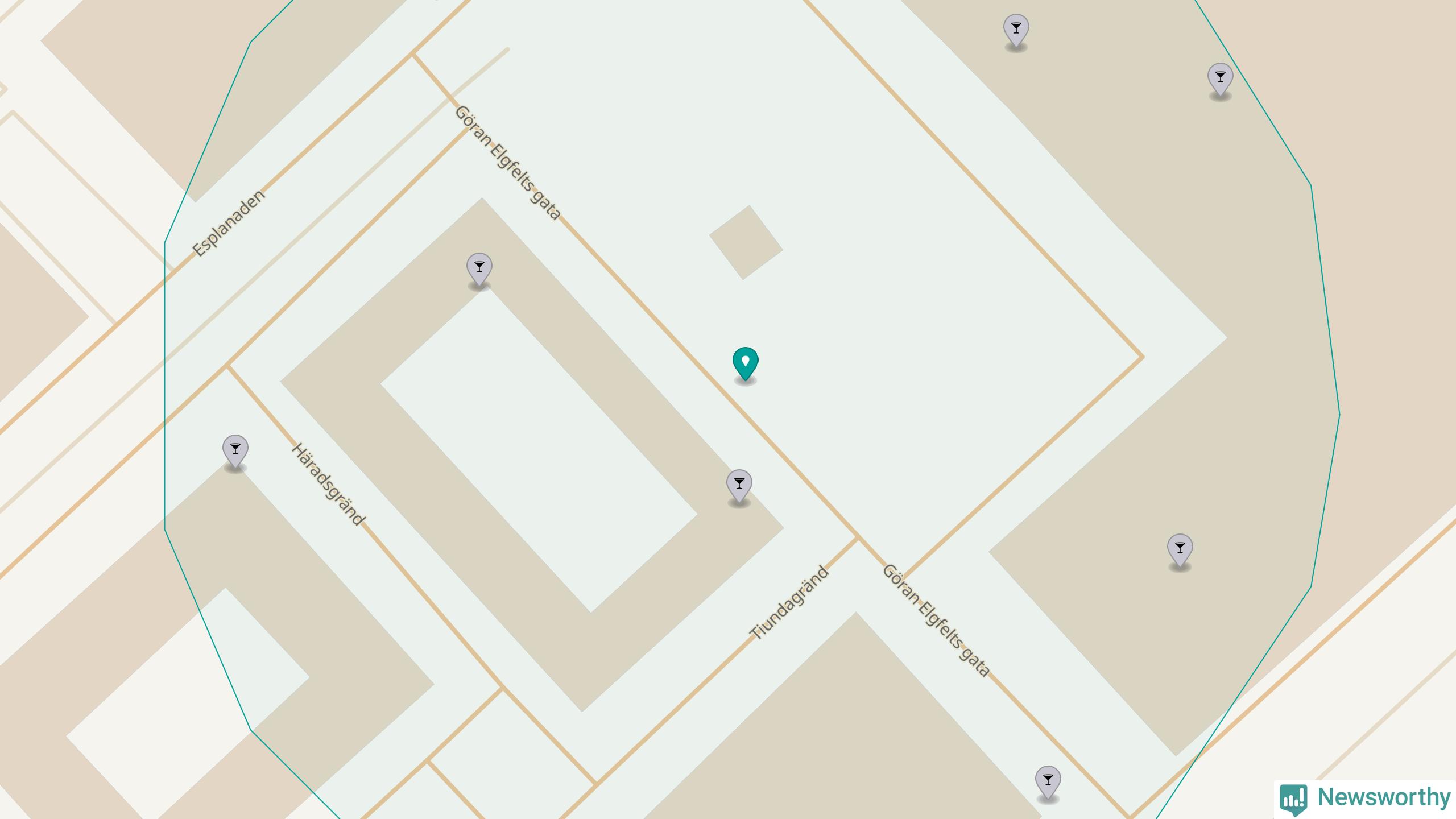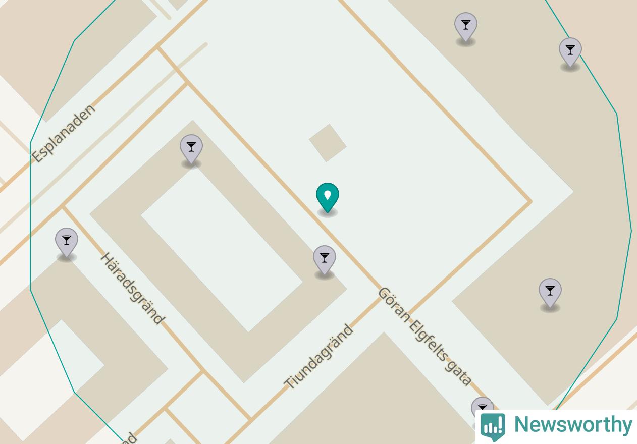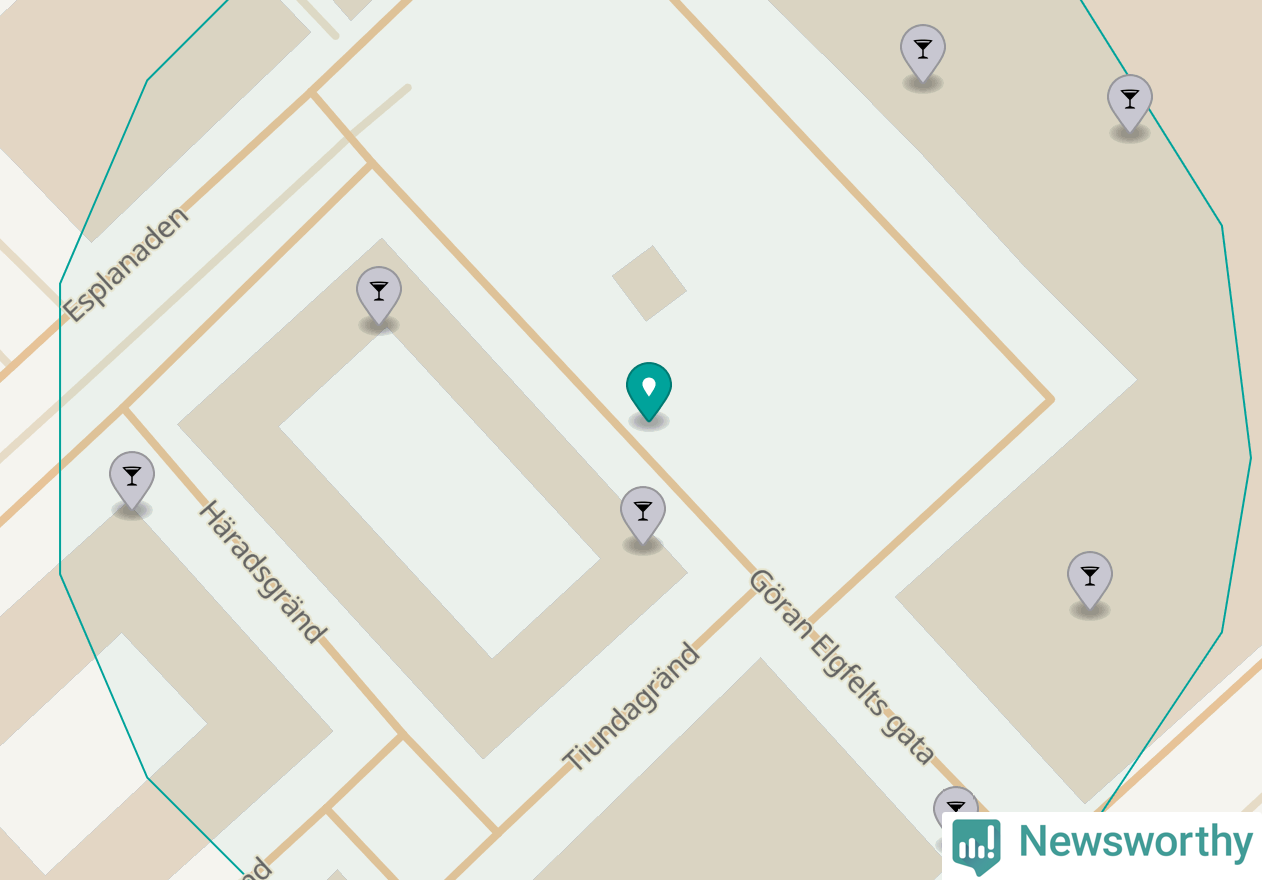 Om du står på Göran Elgfelts Gata har du sju krogar, restauranger eller hotell med serveringstillstånd inom en radie på 100 meter. Det är den krogtätaste platsen i Täby kommun.
