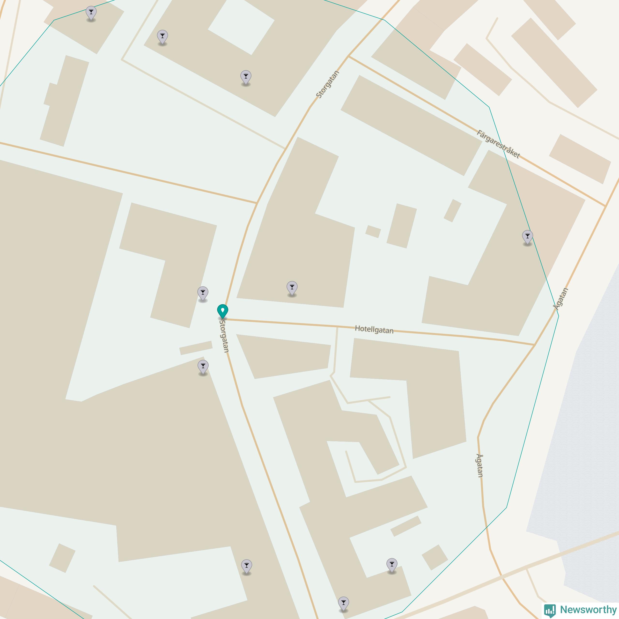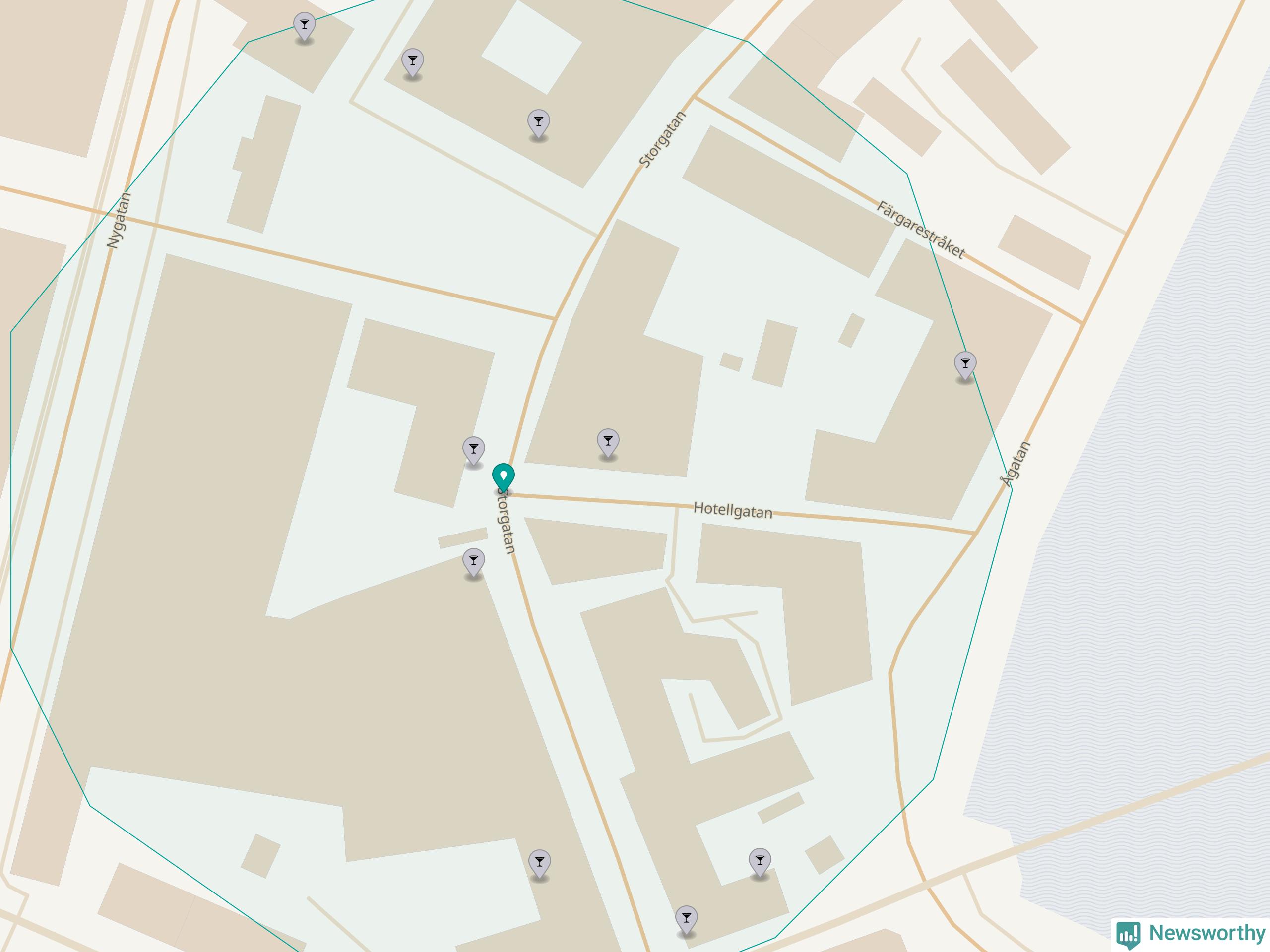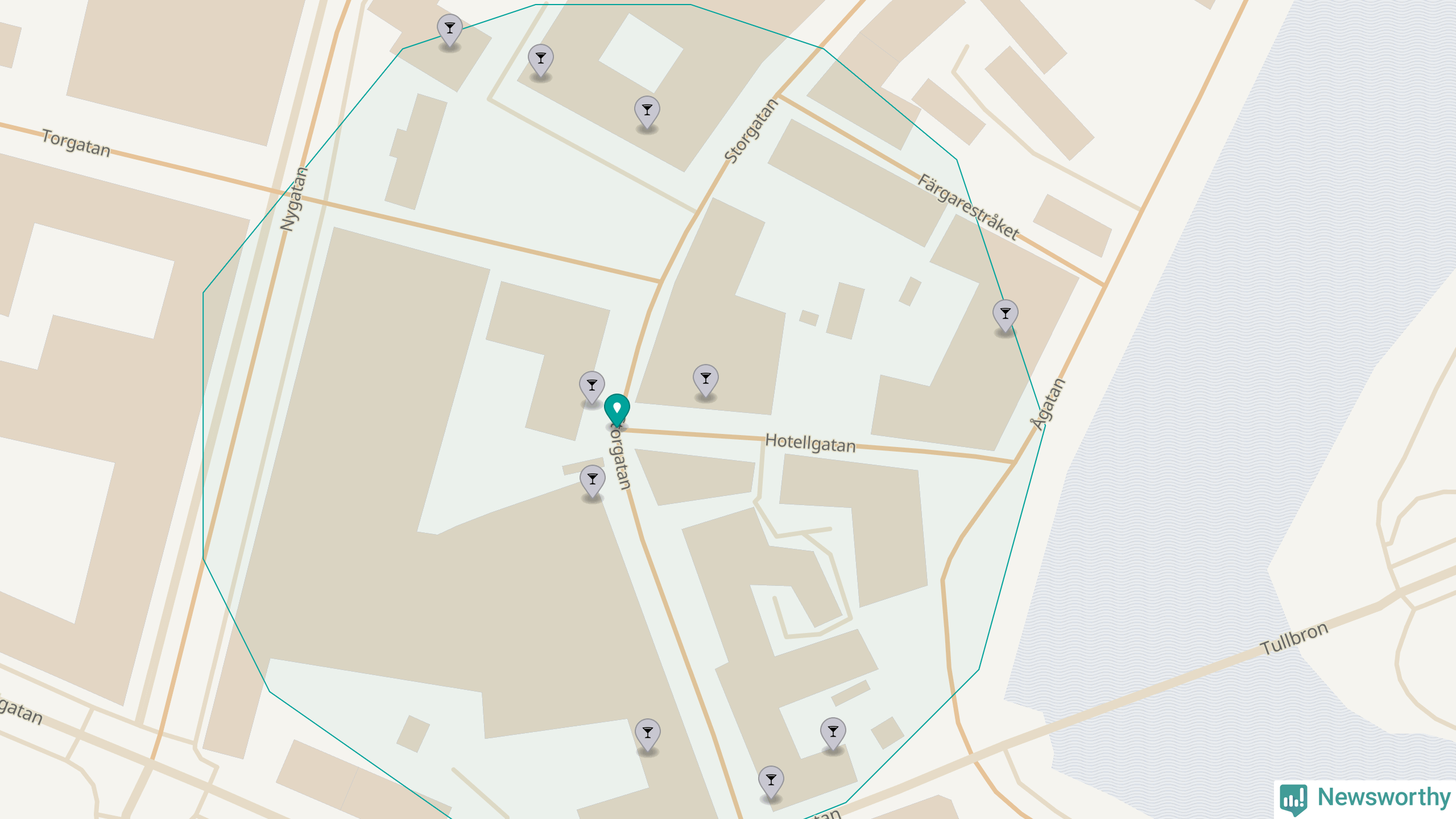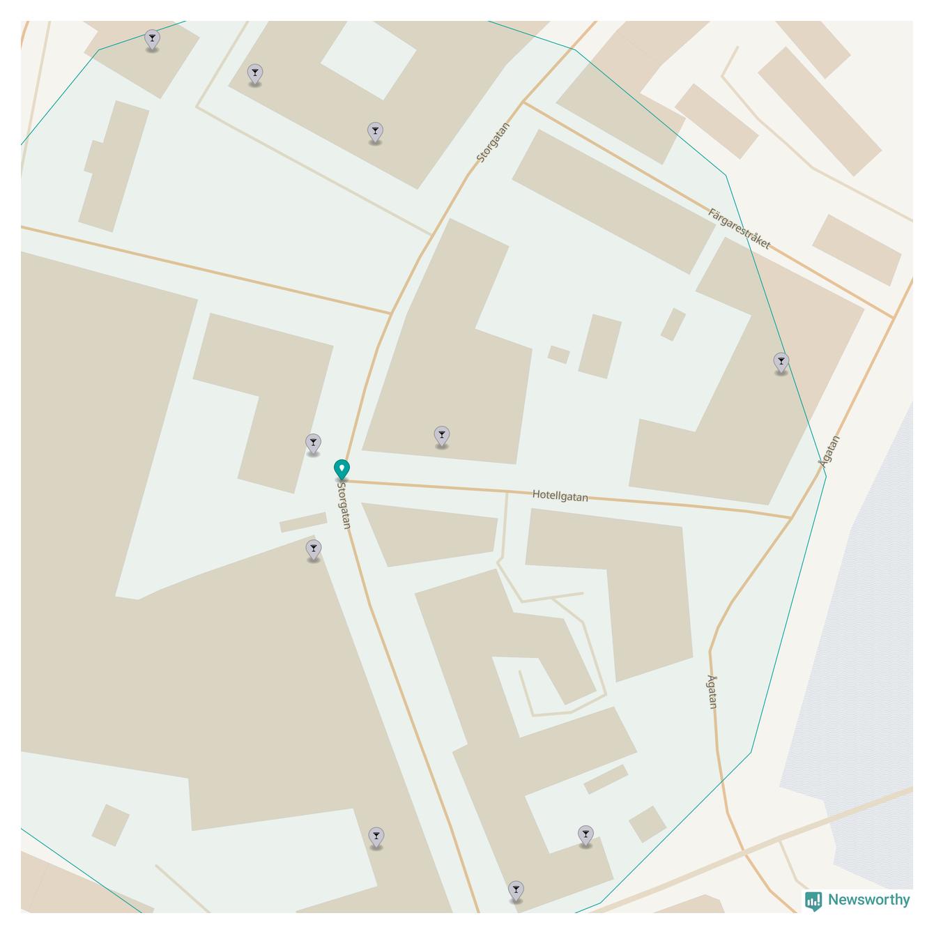 Om du står på Storgatan har du tio krogar, restauranger eller hotell med serveringstillstånd inom en radie på 100 meter. Det är den krogtätaste platsen i Falkenbergs kommun.