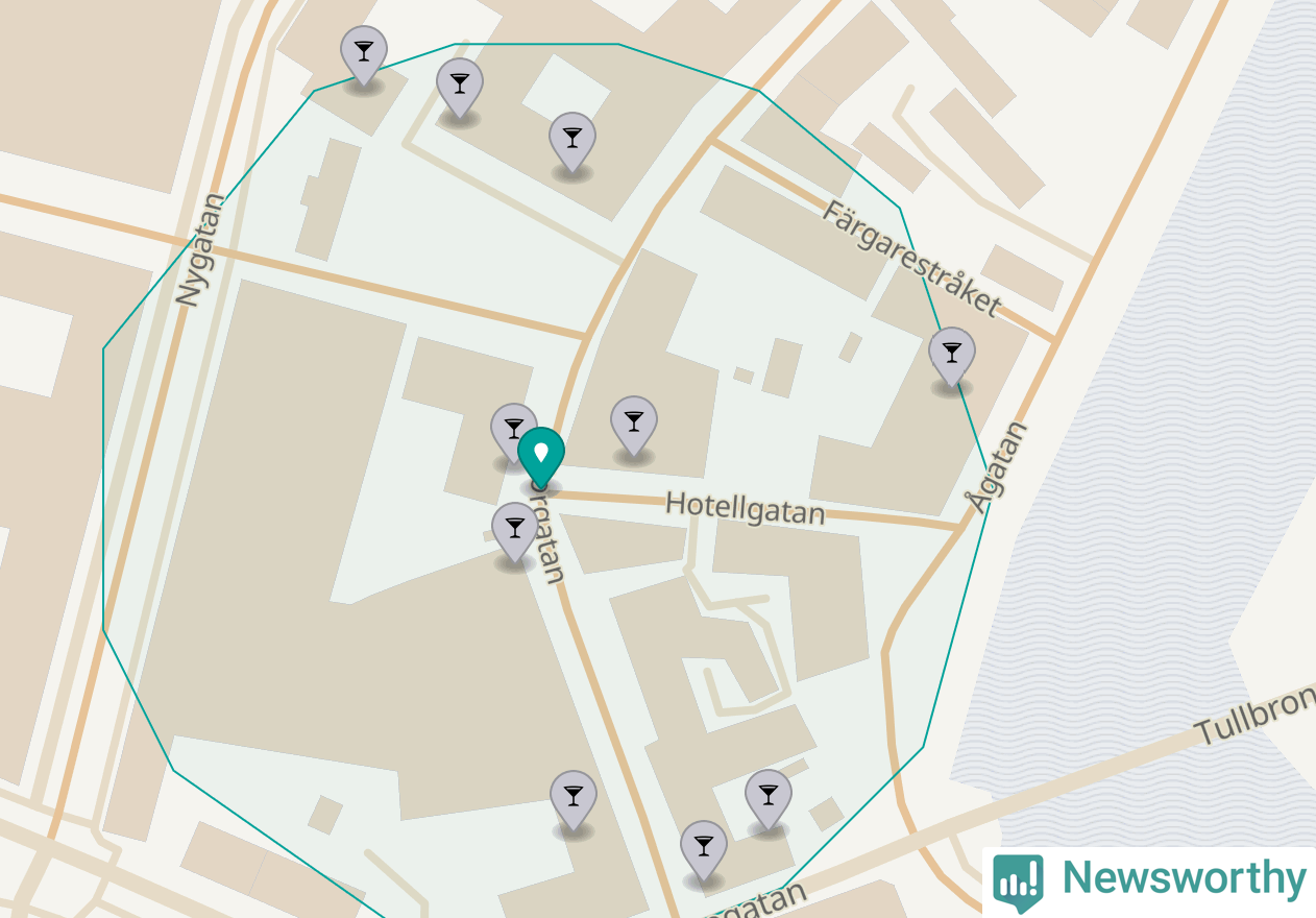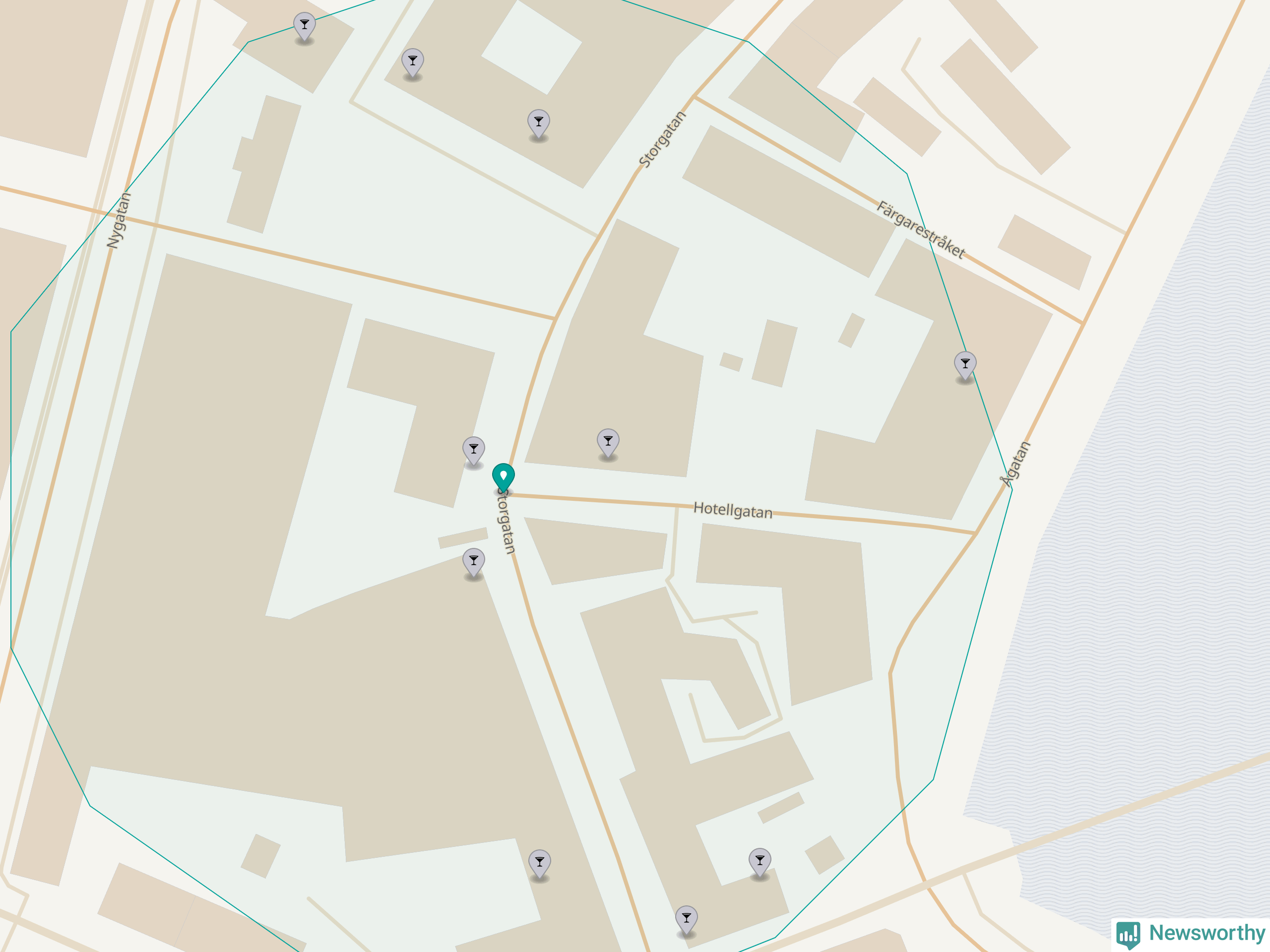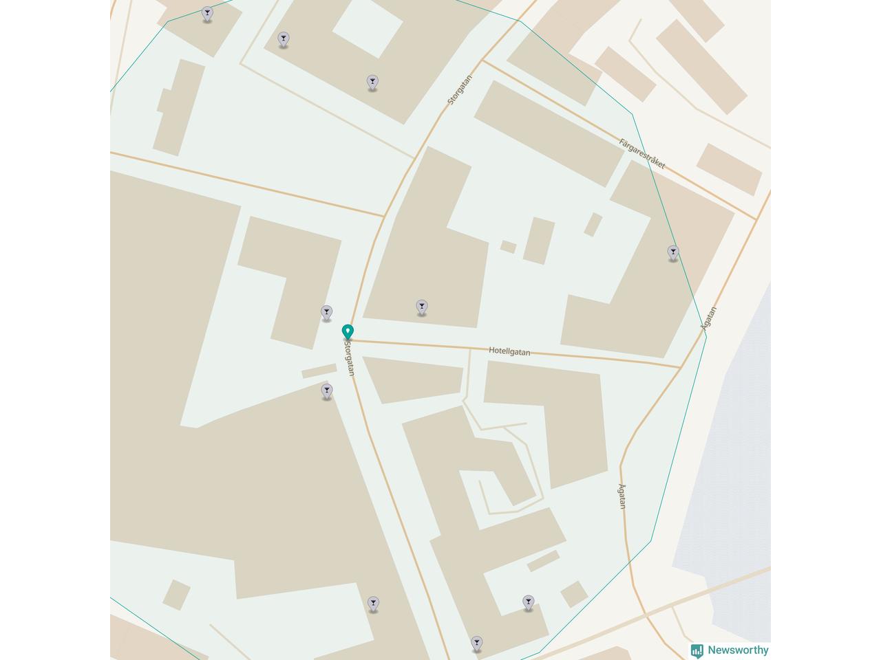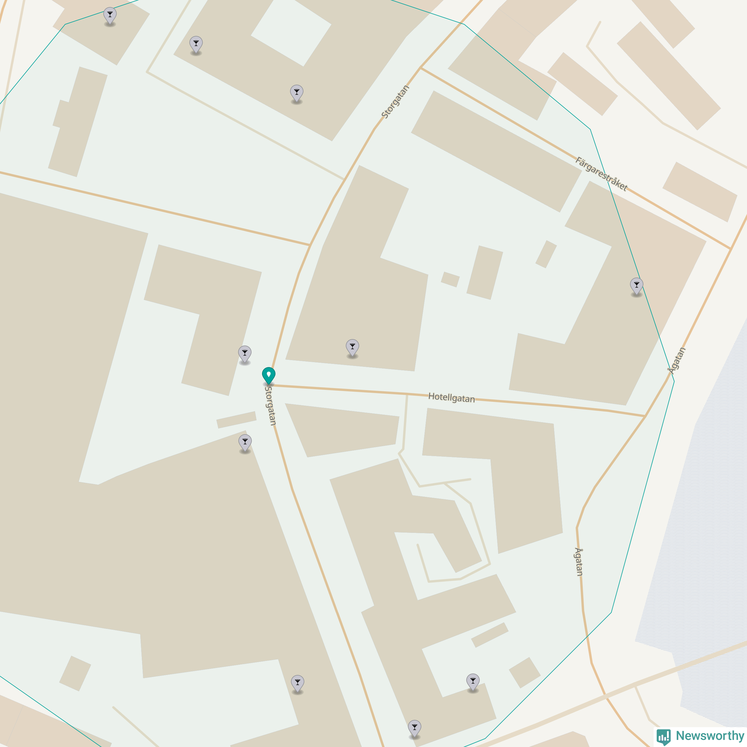 Om du står på Storgatan har du tio krogar, restauranger eller hotell med serveringstillstånd inom en radie på 100 meter. Det är den krogtätaste platsen i Falkenbergs kommun.
